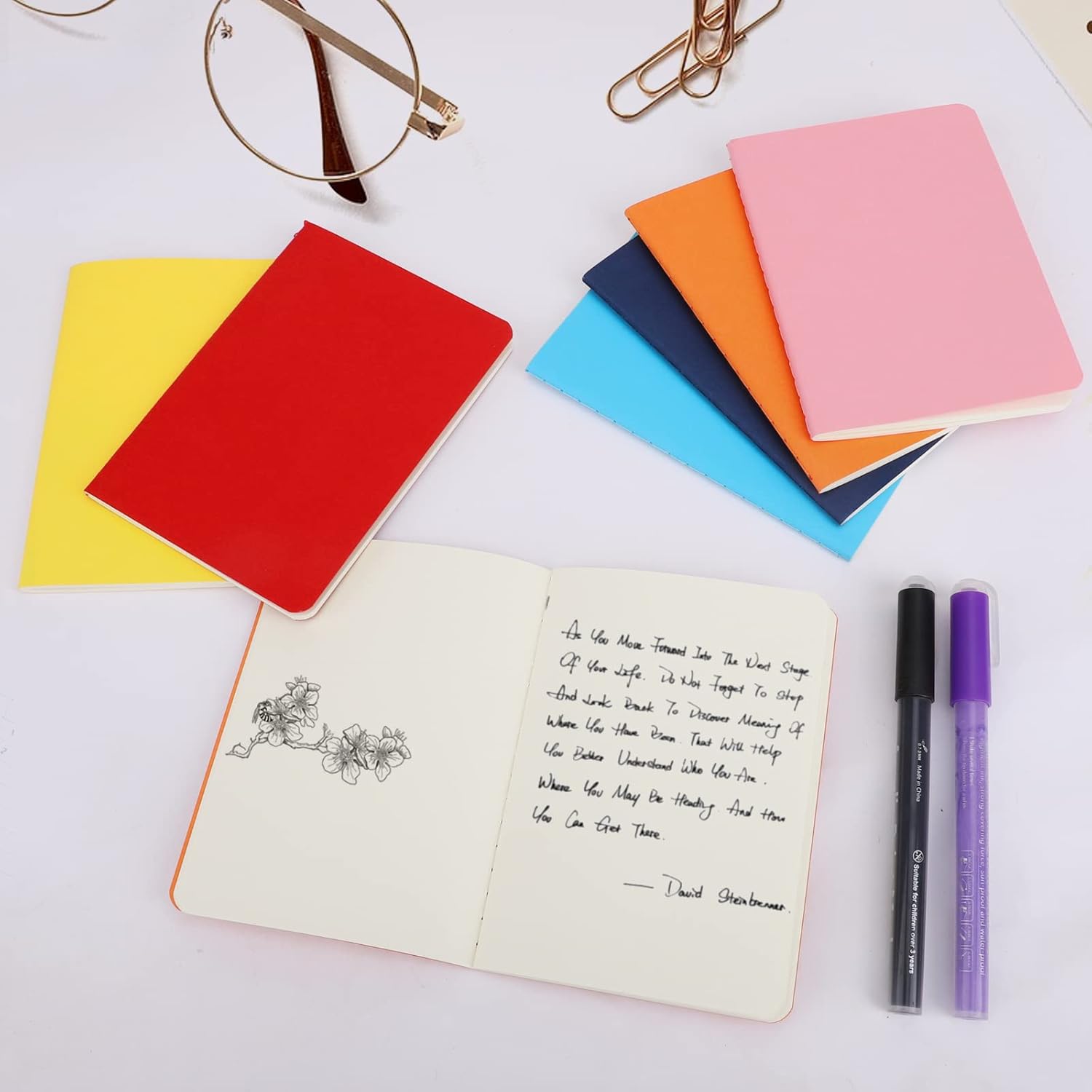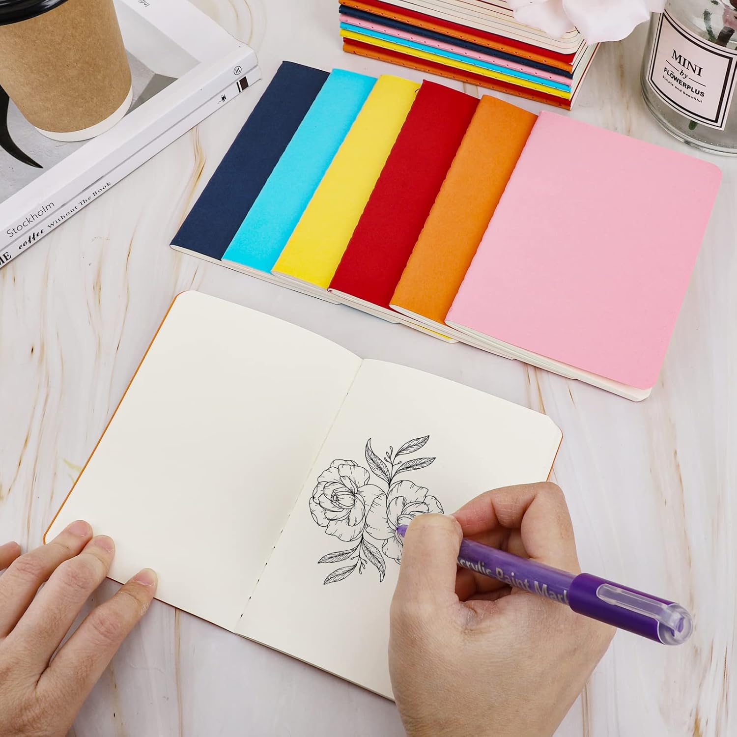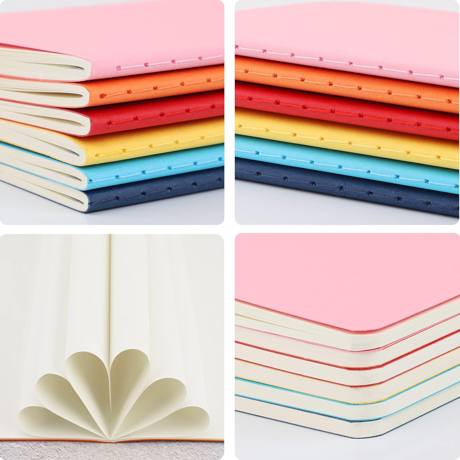 Notebook A6 --- Notebook da 48 pezzi con copertina kraft colorata A6, carta spessa 100 g/m², 10x14 cm. Un totale di 30 fogli/60 pagine, che lo rendono un pratico compagno di viaggio. Copertina morbida colorata --- La copertina morbida offre una comoda superficie di scrittura e una varietà di alternative per esprimere la tua creatività e organizzare i tuoi pensieri. Taccuino con pagine bianche --- Il diario con pagine bianche ha una superficie liscia su cui è possibile scrivere, il che offre una buona esperienza all'utente, che può disegnare ciò che vuole. Carta bianca cremosa da 100 g/m² --- Questi sono deliziosi quaderni con carta decente da 100 g/m², che è bianco crema e molto gradevole alla vista. Le pagine sono sufficientemente riflettenti da impedire all'inchiostro di fuoriuscire attraverso le pagine. Usi multipli --- Ideale per ufficio, uso personale, scuola, agende tascabili, liste di cose da fare, liste di cose da fare, prendere appunti, disegnare, ecc.