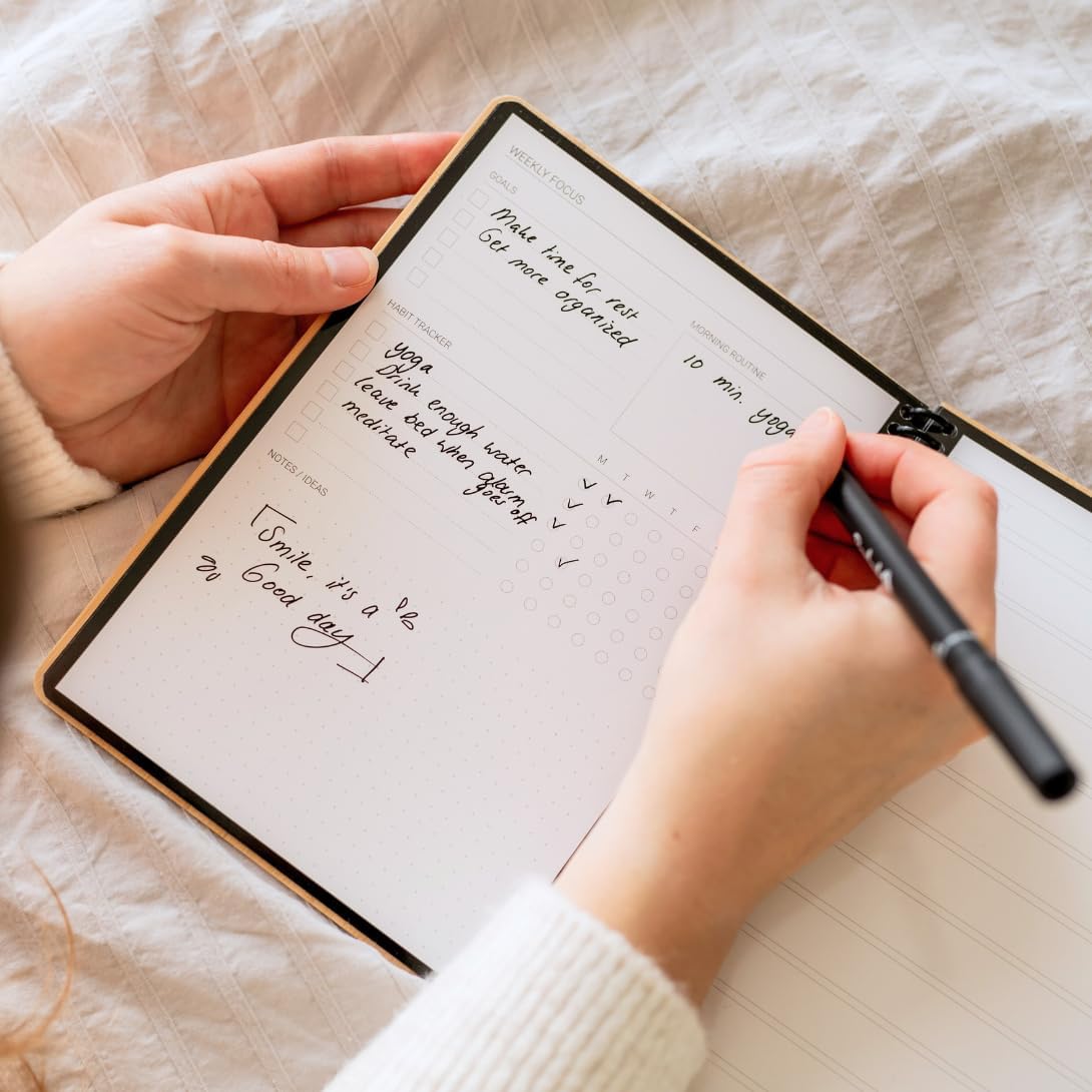 Ich habe das Bambook jetzt seit ein paar Wochen im Einsatz und ich halte es für eine gute Alternative zu den Papierblöcken. Laut Hersteller gibt es die Möglichkeit, ein eigenes Logo auf der Vorderseite zu bestellen. Das hat schon was. Falls ich mir noch eines besorge, probiere ich mal, ob das auch stimmt. Aber vorerst wird das nicht passieren. Schließlich ist es ja nicht wirklich ein Schnäppchenpreis, sondern eine Investition. Ich finde es super, das hier auf Bambus gesetzt wird. Das Grass kann mehrmals im Jahr geerntet werden und kein Baum muss dafür her halten. Natürlich ist eine Baummaserung vielen Kunden lieber, aber man kann doch hier auch mal einen Kompromiss eingehen, oder? Da ich Linkshänder bin, ist mir sehr wichtig das Geschriebene nicht zu verwischen. Das klappt ganz gut, wenn man aufpasst. Man verschmiert die Schrift auch im getrockneten Zustand, wenn man ein paar Mal mit der Hand darüber streicht. Aber sobald man die Seite umklappt, hält das Geschriebene auch noch Wochen später. Ich habe mir weitere non-permanente Folienschreiber gekauft, um nicht immer mit schwarz zu schreiben. Hier ist es nicht so einfach, wie mit dem Originalstift, die Farbe wieder abzuwischen. Sie braucht auch etwas länger, als der Originalstift zum Trocknen. Aber mit etwas Spülmittel geht das. Was mich etwas stört ist, das es keine karierten Seiten gibt. Die fehlen mir. Ansonsten ist das Bambook eine gute Idee, für Leute, die viele "Schmuddelzettel" benötigen, die hinterher im Müll landen. Die App dafür habe ich zwar, aber ich brauche sie nicht. Mir ist nicht ganz klar, wozu sie nutzen soll, aber vielleicht ist sie für andere Leute ja hilfreich. Mir fallen nur zwei Punkte ein, die den Ein oder Anderen vielleicht den Kauf bereuen lassen, deshalb erwähne ich sie nochmal extra, damit solche Leute garnicht erst meckern können ????: 1) Es mag für den Ein oder Anderen lästig sein, Seiten wieder abwischen zu müssen, wenn man sie wieder nutzen möchte. Aber hier sei erwähnt, das es so einige Seiten gibt, die man erst Mal voll schreiben kann. Ganz vorne gibt es eine Wochenübersicht, dann folgen sieben Seiten in Form von To Do Listen. Weiter geht es mit sieben blanco Seiten und sieben linierten Seiten - links blanco, rechts liniert - keine Ahnung warum. 2) Es kann auch sehr nervig für den Ein oder Anderen sein, darauf aufpassen zu müssen Geschriebenes nicht mit der Hand wieder zu berühren, grade am Anfang. Aber Linkshänder kennen das ???? Mein Fazit: Das Bambook ist nicht günstig aber ich würde es wieder kaufen! Ich brauche keinen Notizblock mehr und habe ein gutes Gefühl dabei. Außerdem ist es nicht so dick wie übliche DIN A5 Blöcke und deshalb handlich. Alles um was ich mich nun kümmern muss, sind abbaubare Folienschreiber ????