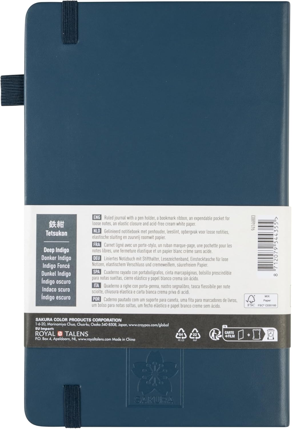 FINITURA DI ALTA QUALITÀ: il taccuino con copertina rigida foderata Sakura ha una copertina rigida robusta e di colore indaco intenso con angoli arrotondati, che fornisce una protezione durevole ed elegante per tutti i tuoi appunti. Carta certificata FSC: questo taccuino contiene 80 fogli di carta color crema chiaro senza acidi da 140 g/m², certificata FSC per il rispetto dell'ambiente e eccellenti prestazioni di scrittura. Scrittura comoda: con la classica spaziatura di 7 mm, questo taccuino offre ampio spazio per una scrittura fluida e leggibile, ideale per prendere appunti, fare schizzi e inserire nel diario. Adatto a penne diverse: la carta robusta impedisce all'inchiostro di fuoriuscire e consente di scrivere senza sforzo con diversi tipi di penne e pennarelli senza che l'inchiostro penetri. Marchio affidabile: Sakura è nota per i suoi prodotti artistici e di scrittura di alta qualità e questo taccuino offre la migliore qualità per l'uso quotidiano, ideale per professionisti e hobbisti.