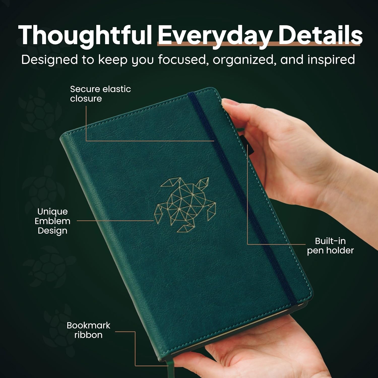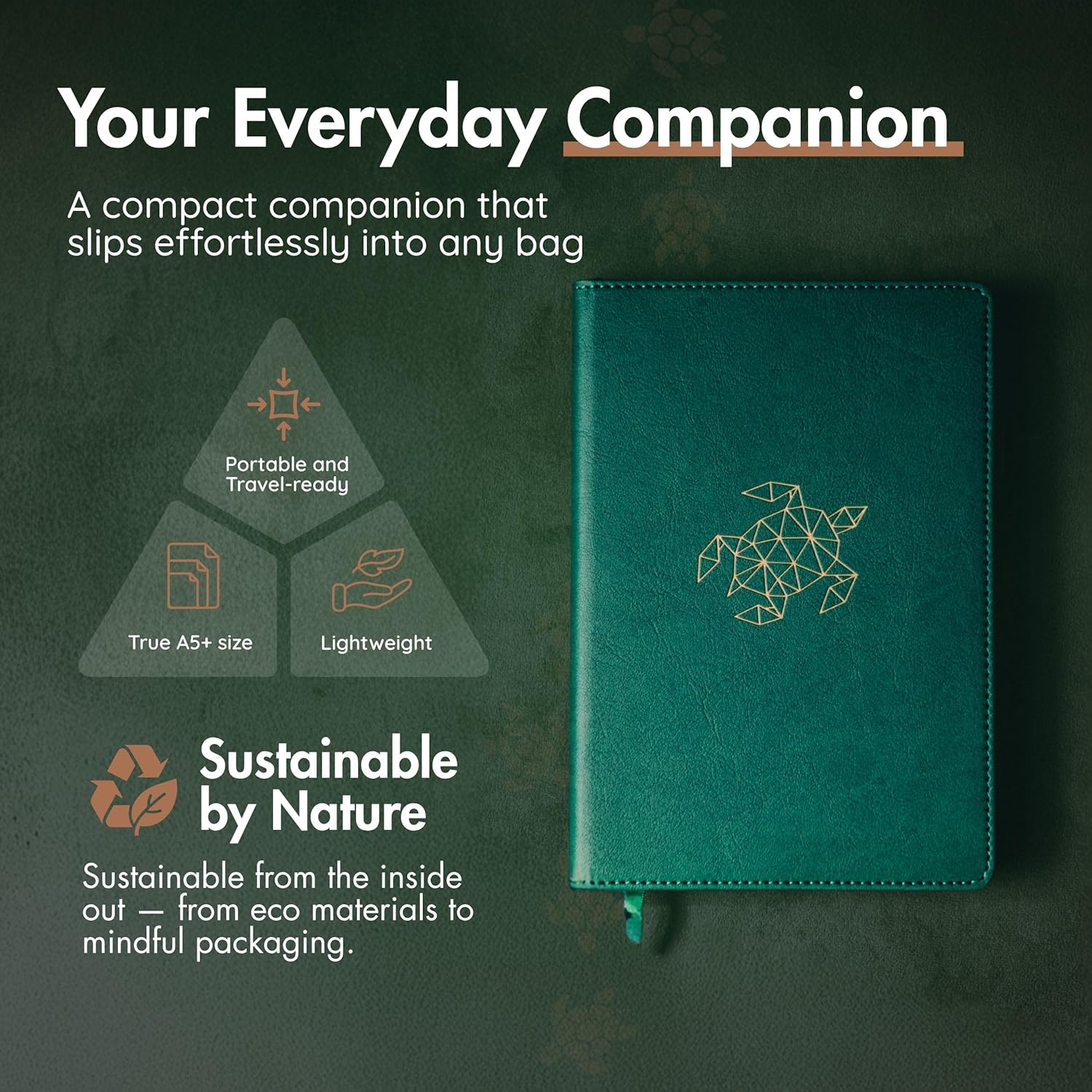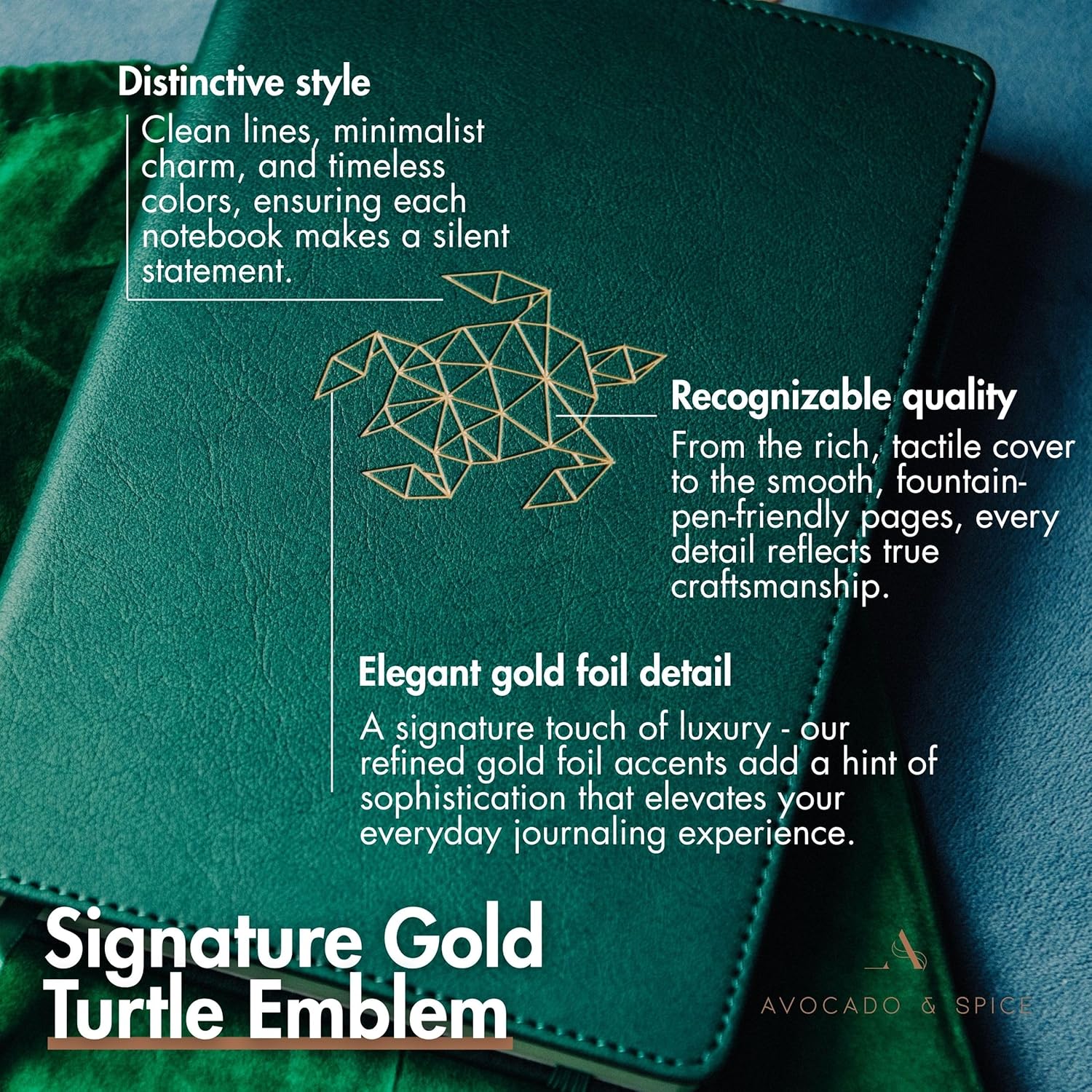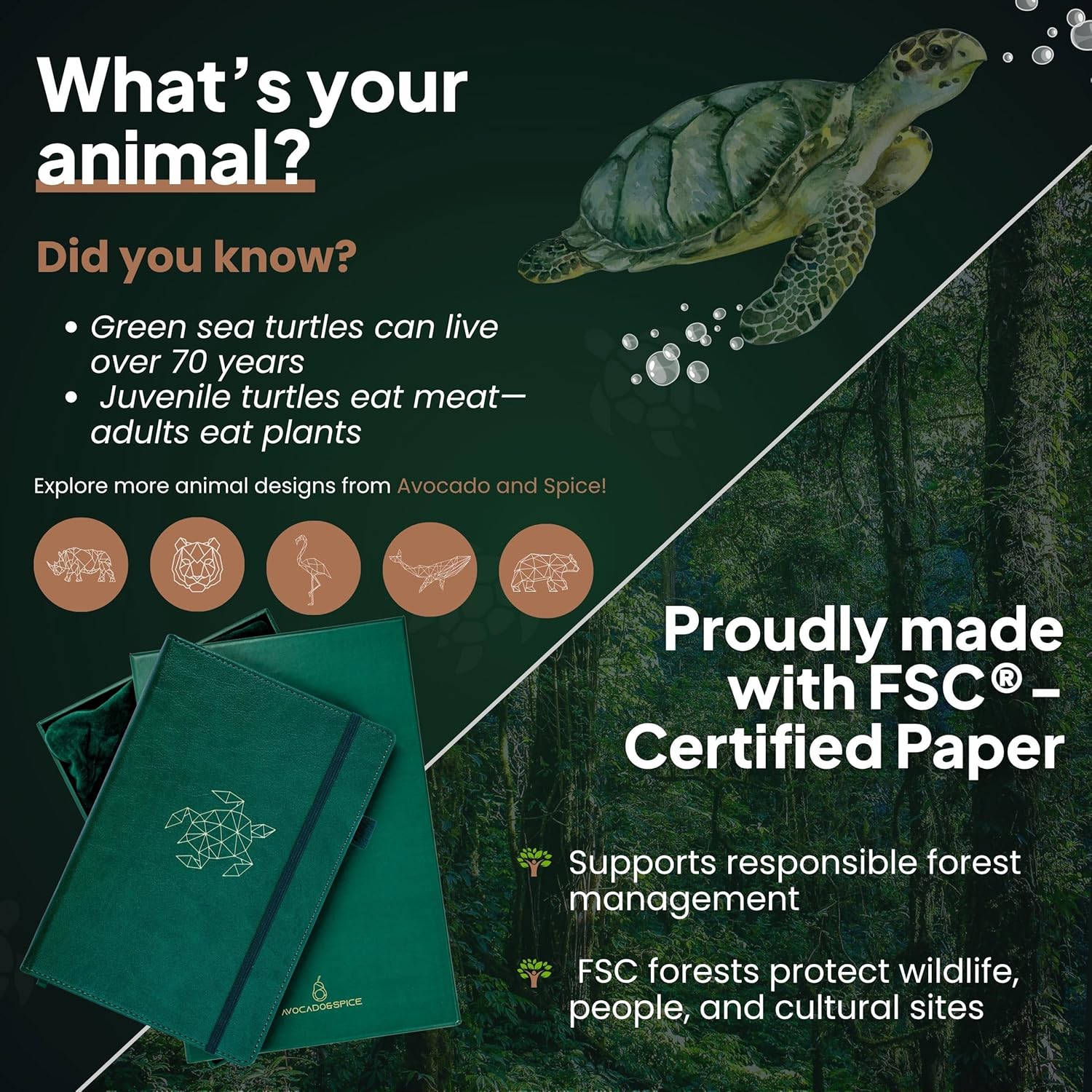 Organizza la tua vita: raccogli i tuoi pensieri e scrivili nel nostro quaderno a righe A5. Il nostro attraente taccuino rilegato in ecopelle ti aspetta per riempire le sue 200 pagine a righe da 120 g/m² con storie, attività quotidiane, obiettivi, elenchi, ecc. Tutti i taccuini A5 Avocado & Spice sono disponibili in 4 diversi tipi di carta: a righe, a punti, a tinta unita o a quadretti. Che tu stia cercando un quaderno in carta millimetrata o un album da disegno, abbiamo quello che fa per te. Pieno di bonus: il nostro diario in carta spessa viene fornito con tutti gli aggiornamenti di cui un giornalista ha bisogno. Il diario è dotato di segnalibro a nastro, portapenne integrato e elastico. Sono inclusi anche una confezione regalo premium e un sacchetto di velluto, che lo rendono un regalo meraviglioso per amici o familiari. Il diario a righe ha 7 mm di spazio tra le righe, offrendo a te o al destinatario del regalo uno spazio più che sufficiente per scrivere i tuoi pensieri. Dimensioni: formato medio A5+ (142 x 210 mm). Scatena la tua creatività: è stato scoperto che il journaling riduce lo stress, allenta la tensione e mette le cose in prospettiva. Usa il nostro taccuino A5 come diario, diario di viaggio o diario di consapevolezza. 100% Cruelty-Free: Realizzata in pelle sintetica, la copertina dei quaderni Avocado & Spice A5 è morbida e liscia come la pelle. Ogni copertina rigida in ecopelle è stampata con l'emblema di una tartaruga in lamina d'oro. Bella idea regalo: questi quaderni A5 sono un regalo premuroso per gli scrittori, i poeti o i viaggiatori della tua vita. Il taccuino A5 con copertina rigida è perfetto sia per le donne che per gli uomini. Regala il nostro bellissimo quaderno come regalo di laurea, regalo per insegnanti, regalo di compleanno, regalo di ringraziamento.