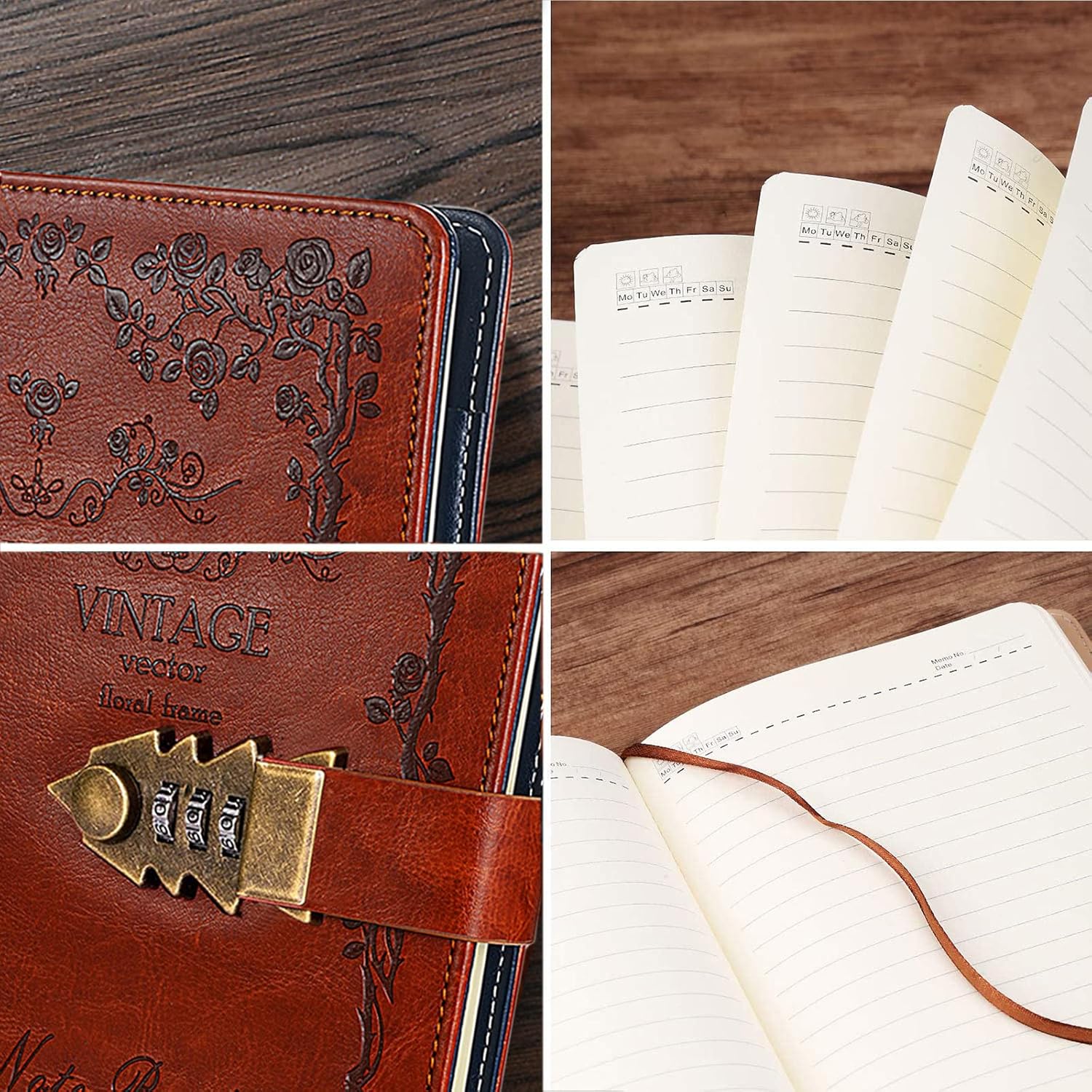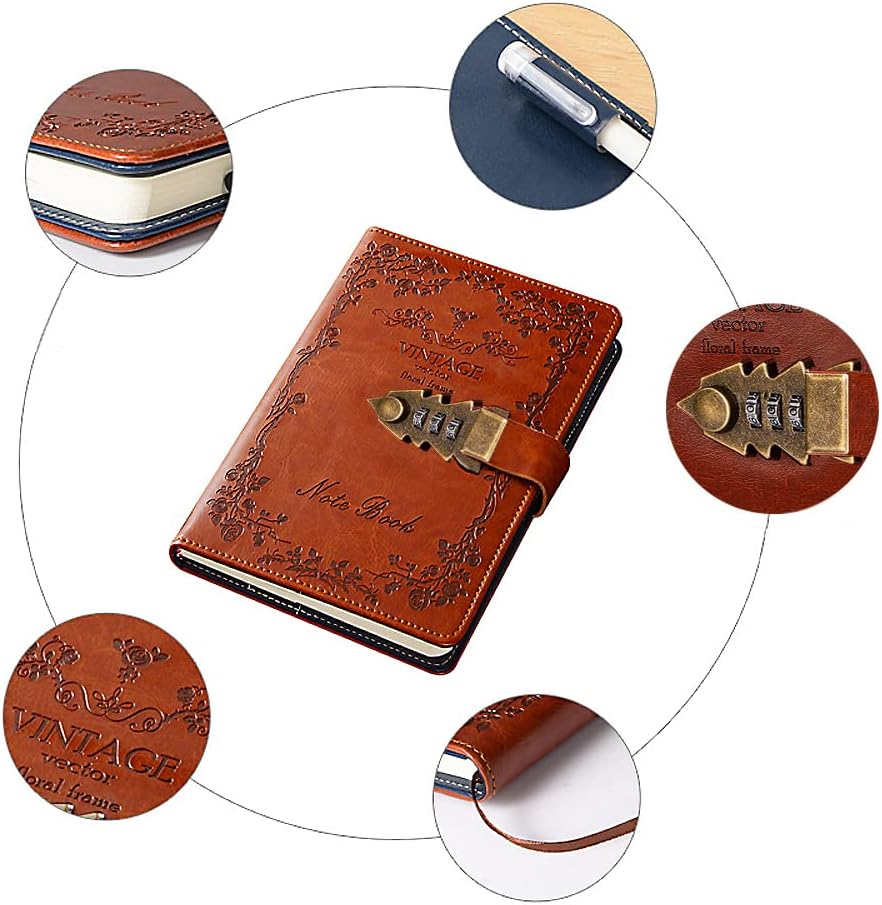 ❤Diario in pelle PU: aumenta la qualità, il tocco gradevole, è un regalo perfetto come diario o quaderno. 110 fogli (220 pagine) di carta a righe. Carta ecologica da 100 g/m², consistenza chiara, scrittura fluida, inchiostro impermeabile, danni antirughe, bella e durevole. Ti dà una buona scrittura. ❤Design unico e bellissimo: lucchetto a combinazione facile da usare che mantiene i tuoi segreti al sicuro. Notebook con serratura in metallo antico, aggiunge un tocco di moda retrò: 0-9 tre cifre, funzionamento semplice, buona riservatezza. ❤Diario con codice: perfetto per chi è alla ricerca di un diario con lucchetto, un diario con password o un elegante taccuino ricaricabile. Diario personale con codice: leggere attentamente il manuale utente in inglese. Se hai dimenticato la tua nuova password, contattaci. ❤Design SENZA DATA - non è datato, quindi puoi iniziare a usarlo in qualsiasi momento dell'anno, senza perdere una pagina. Sta a te inserire i mesi e le date. La carta interna può essere rimossa man mano che si riempie e vengono aggiunte delle sostituzioni. Quindi la copertura in pelle può essere utilizzata a lungo. Cerca B0B1ZV9GNY se hai bisogno delle ricariche della pagina interna. ❤Ottimo regalo: qualità lussuosa e premium, ideale per donne e uomini. Questo squisito diario sarà un regalo meraviglioso per i tuoi amici, familiari e persone care. È un fantastico regalo di compleanno o anniversario. Ideale per impiegati, imprenditori, studenti, insegnanti, creativi.