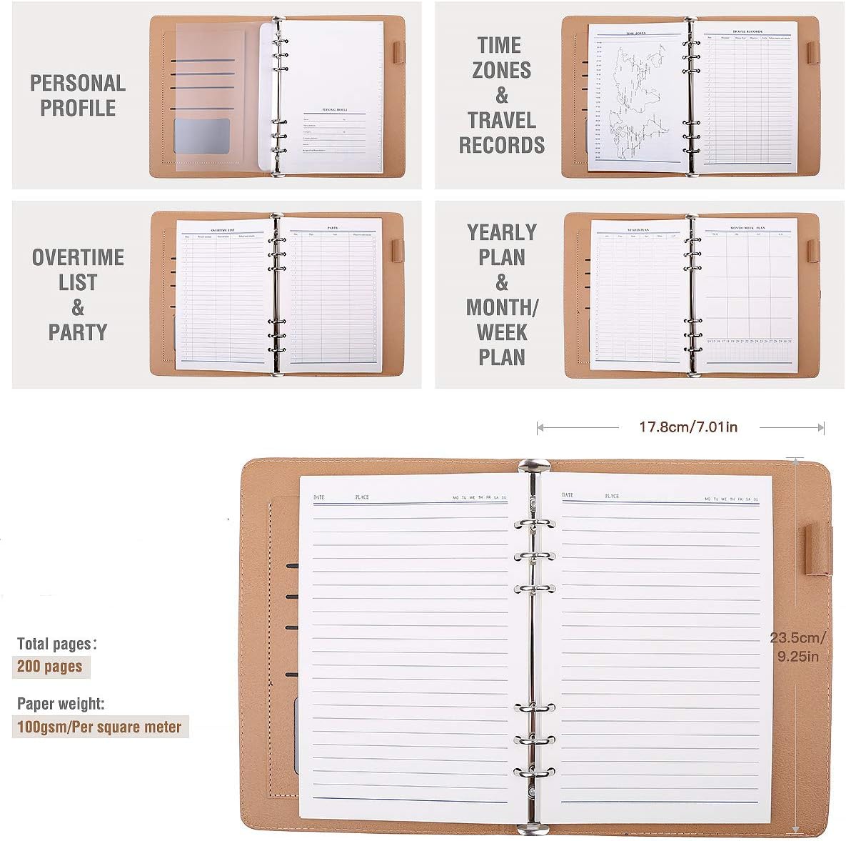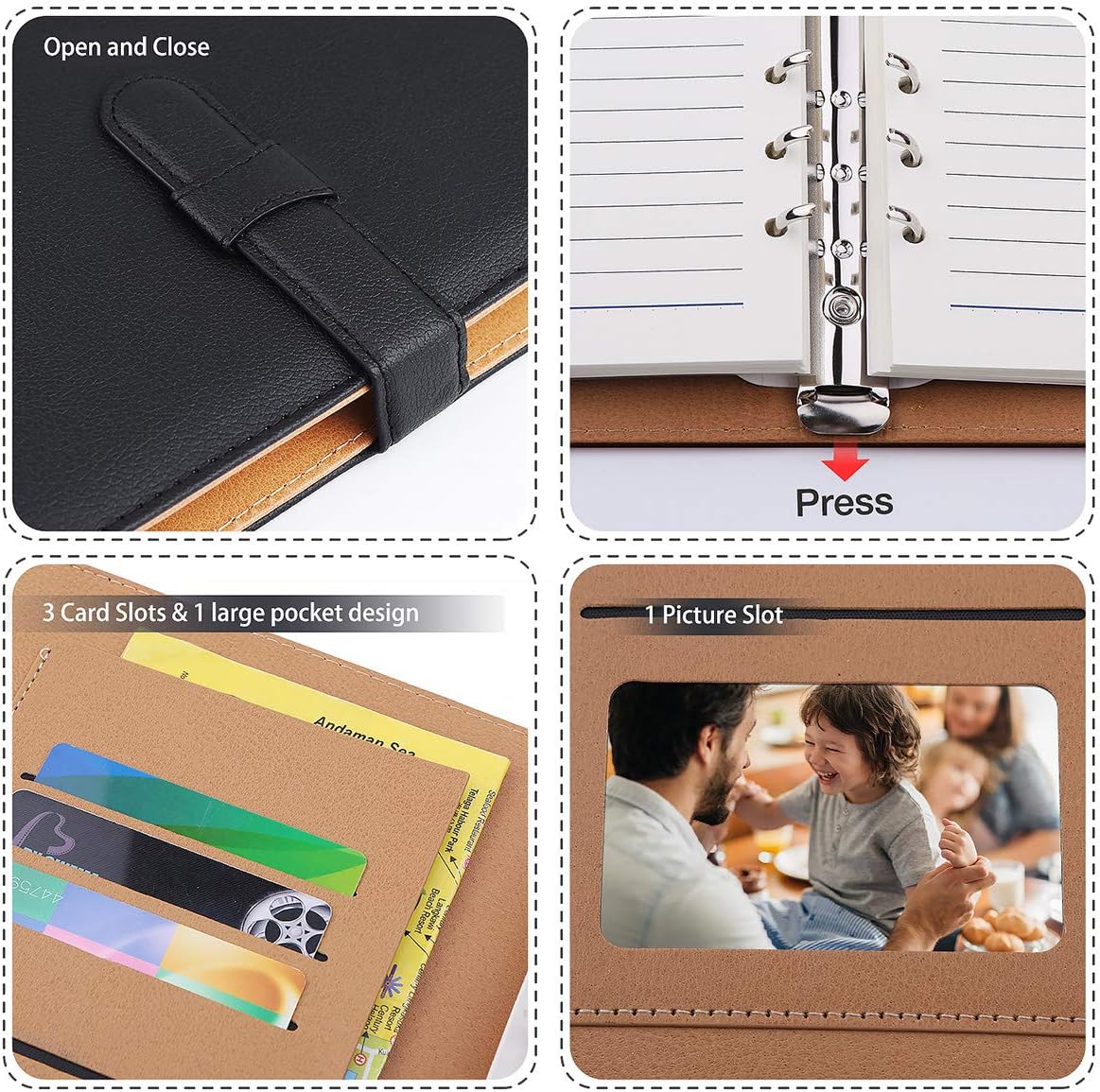 Dimensioni e capacità: la copertina del notebook A5 è realizzata in pelle PU morbida, resistente e di alta qualità, lussuosa, liscia e morbida al tatto, dimensioni copertina: 23,5 x 17,8 x 3,2 cm, dimensioni carta interna: 21,1 x 14,2 cm, 100 fogli di carta ecologica, 200 pagine in totale Design multifunzione: la fibbia magnetica è bella e facile da usare, 6 raccoglitori ad anelli flessibili per rimuovere o aggiungere facilmente pagine. Notebook con molteplici tasche interne per biglietti da visita, carte d'identità, fascicoli, ricevute. Comodo portapenne per non perdere mai la penna, molto pratico, ti offrirà molta comodità Versatile: il taccuino è ideale come diario di lavoro, taccuino per conferenze, taccuino per riunioni, taccuino di viaggio, taccuino per studenti, diario di viaggio, diario di viaggio, diario della gratitudine, taccuino per firme, ecc. Idea regalo: l'aspetto elegante e l'eccellente fattura rendono questo taccuino un regalo di compleanno speciale per fratello e papà, regalo di ringraziamento per insegnante, regalo di compleanno per moglie, marito, regalo di pensionamento per uomini e moglie, regalo di festa per colleghi, regalo di ritorno a scuola, regalo di Natale, regalo di compleanno Più spesso Pagine: il taccuino a righe si apre a 180° in piano con carta a righe da 100 g/m², spessa e tagliata uniformemente, può efficacemente evitare la fuoriuscita di inchiostro, permettendoti di goderti il momento della scrittura