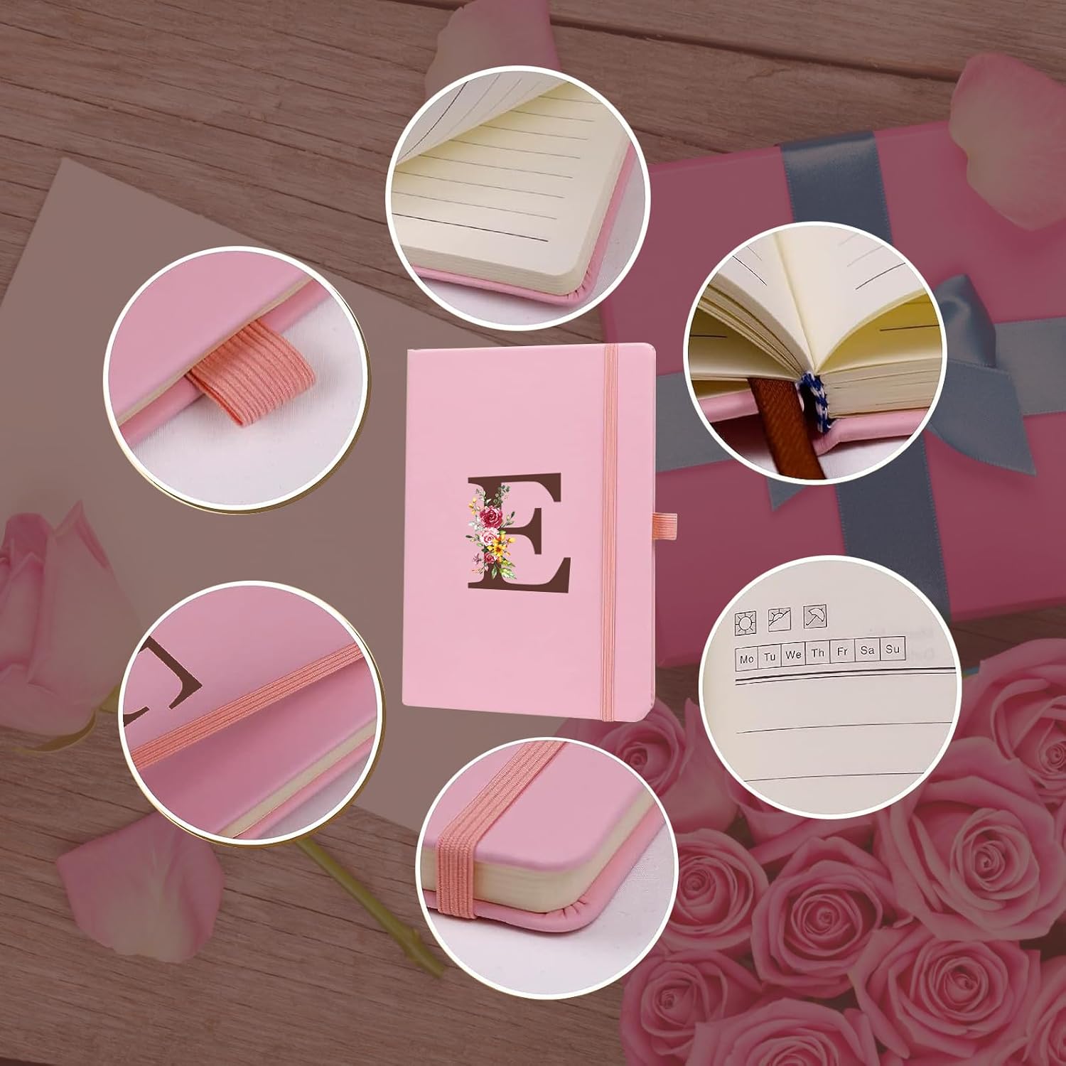 【Dimensioni funzionali】 Con dimensioni di 21,5 cm x 14,5 cm (5,7 "X8,3"), dimensioni portatili per diverse tasche che puoi portare ovunque. (Include: Quaderno x 1, Penna diamante a forma di cuore* 1) 【Unico e Pratico】 Portalo ovunque, occupa poco spazio e sarà sempre pronto all'uso. Una fascetta elastica ti permetterà di tenerla chiusa mentre un nastrino ospiterà la tua penna più bella. Questo taccuino è piatto a 180 gradi, rendendo più facile prendere appunti in modo fluido e comodo, senza che le pagine si chiudano. 【Materiale Premium】 Questo diario con copertina rigida è realizzato in pelle amichevole, morbida al tatto; vera carta di legno priva di acidi. Carta spessa e resistente da 100 g/m², per un totale di 200 pagine/100 fogli. Scrive senza intoppi, senza sbavature di inchiostro dalle pagine. 【Scelta eccellente】 Questo taccuino A5 è perfettamente adatto per essere utilizzato come taccuino da viaggio o taccuino da lavoro. Che si tratti di appunti professionali, appunti di studio o diario personale, puoi gestirli facilmente. 【Regalo perfetto】 Questo è il regalo ideale da fare alla tua famiglia, ai tuoi amici o ai tuoi colleghi per il ritorno a scuola, compleanno o Natale, festa della mamma, matrimonio, pensione, festa.