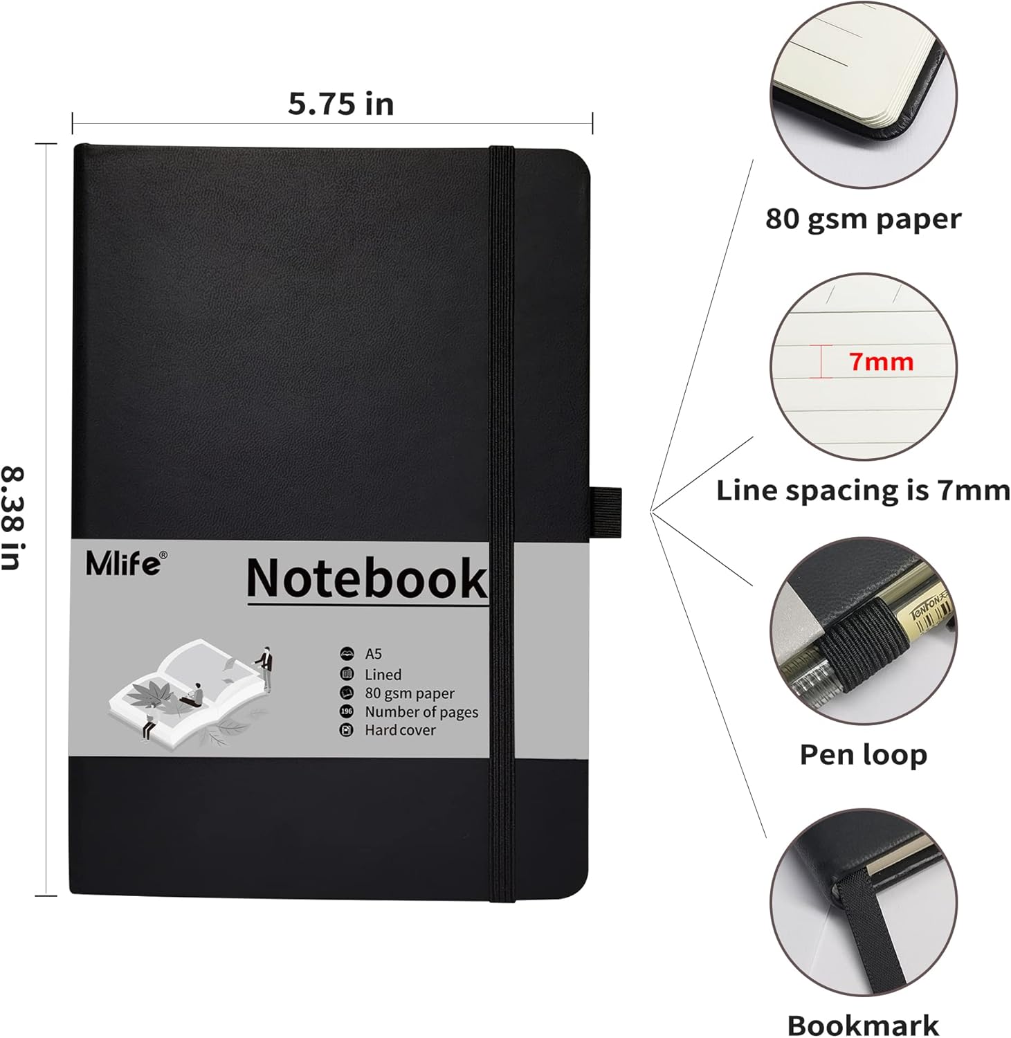 Diario con copertina rigida A5: il taccuino a righe Mlife Journal contiene 96 fogli/192 pagine per taccuino, 1 portapenna, 1 cinturino segnalibro, 3 tasche interne e una fascia elastica di chiusura. Carta di alta qualità: questo taccuino utilizza carta priva di acidi e ad alta resistenza all'inchiostro per evitare sbavature. Può essere facilmente appoggiato in piano a 182° per scrivere e leggere comodamente. Portapenne e tasca interna: questo taccuino è rifinito a mano per renderlo più resistente, il passante del portapenne si adatta alla maggior parte delle penne. C'è anche una tasca interna espandibile per biglietti da visita, appunti, ricevute, foto di famiglia motivazionali e altro ancora. Facile da trasportare: quaderni A5, diario per uomini e donne, dimensioni 5,75 x 8,38 pollici/ 14,6 cm *21,5 cm rendono questo quaderno il tuo miglior partner. È portatile e adatto per prendere appunti, organizzare residenze, giornalismo, insegnamento. Puoi utilizzare Mlife Notebook in ufficio, a scuola e nella vita. Miglior regalo: i nostri diari sono progettati in una varietà di colori belli e divertenti. È il miglior regalo per il rientro a scuola, Natale, Ringraziamento, Compleanno, Festa della mamma, Festa del papà, Laurea/Campo estivo/Giorno del volo/Giorno lavorativo/Giornata nazionale, ecc. I quaderni Mlife sono perfetti per persone di tutte le età.