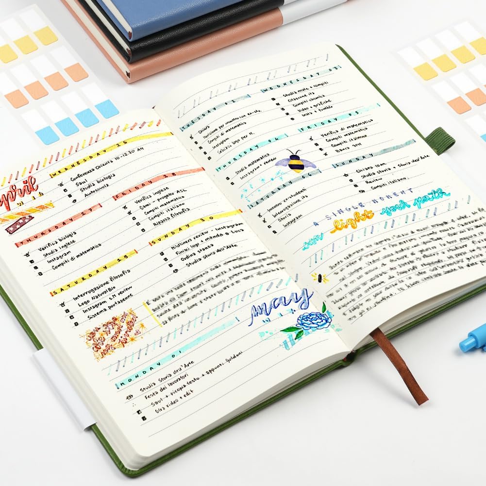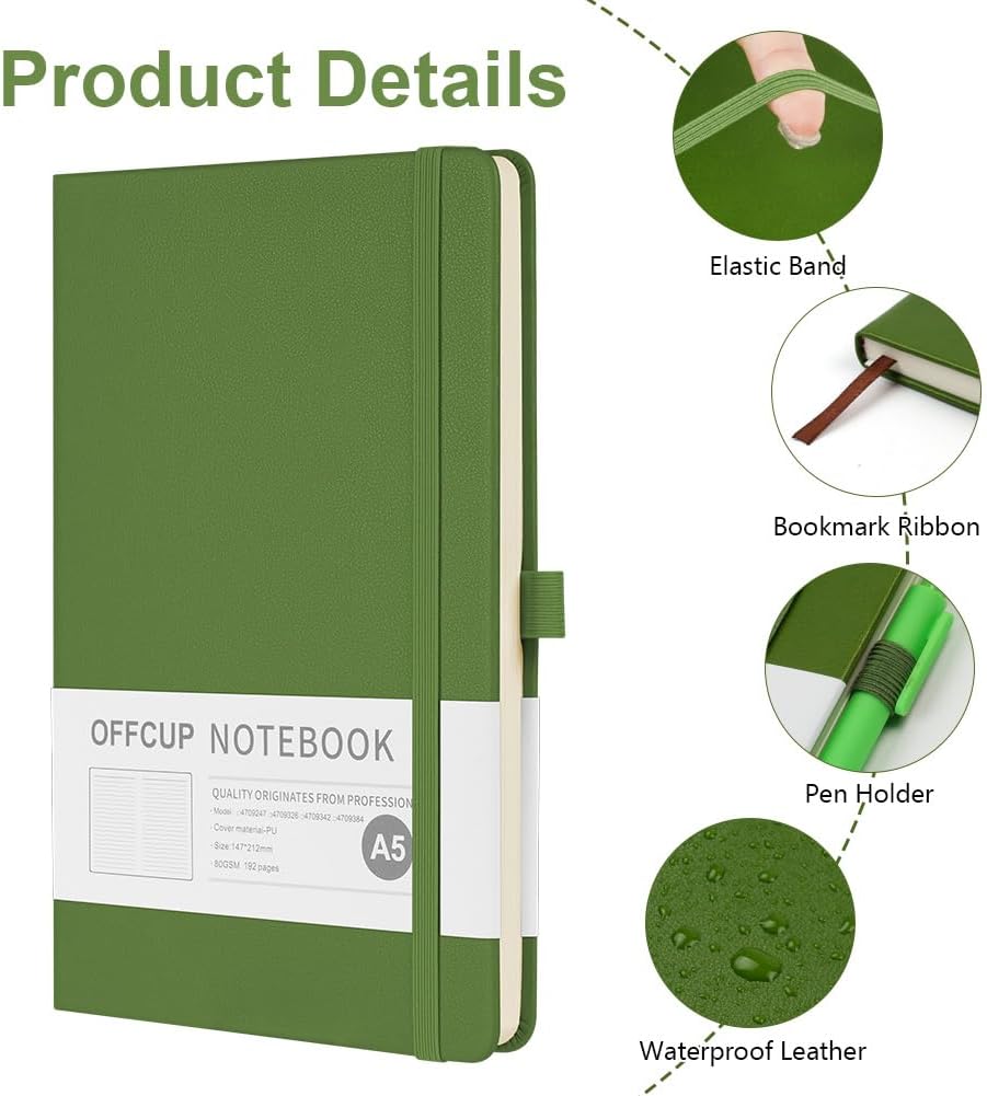 Copertina in pelle vegana: la nostra copertina per diario a righe per quaderno A5 è realizzata in pelle vegana di alta qualità, comoda. La copertina rigida può impedire efficacemente l'ingresso di polvere all'interno del notebook. Dotato di stabilità e non trema durante la scrittura, offrendo un'esperienza di scrittura confortevole. La copertina è unica, elegante e attraente, adorerai questo taccuino a righe. Taccuino classico: questo taccuino/diario A5 ha molto spazio. Dimensioni perfette (21 x 15 cm). Questo diario a righe si adatta alla maggior parte dei tipi di penne, come penne a sfera, penne stilografiche e penne ad acquerello, ecc. Un'ottima scelta per l'uso quotidiano a scuola, in ufficio o a casa Carta a righe: il diario A5 utilizza carta avorio priva di acidi da 80 g/m² di alta qualità, con un totale di 192 pagine di carta a righe. La carta biancastra, priva di acidi, previene i danni causati dalla luce e dall'aria. Non irrita gli occhi, protegge meglio la vista e rende la presa di appunti più chiara e ordinata. Design piatto a 180°: la nostra robusta rilegatura consente al diario di restare piatto a 180 gradi, con un elastico, comodo per destrimani e mancini. Scrivere, disegnare e prendere appunti non è mai stato così facile Taccuino creativo versatile: questo taccuino può essere utilizzato come taccuino per riunioni, diario di viaggio, taccuino di diario, taccuino di viaggio e taccuino aziendale