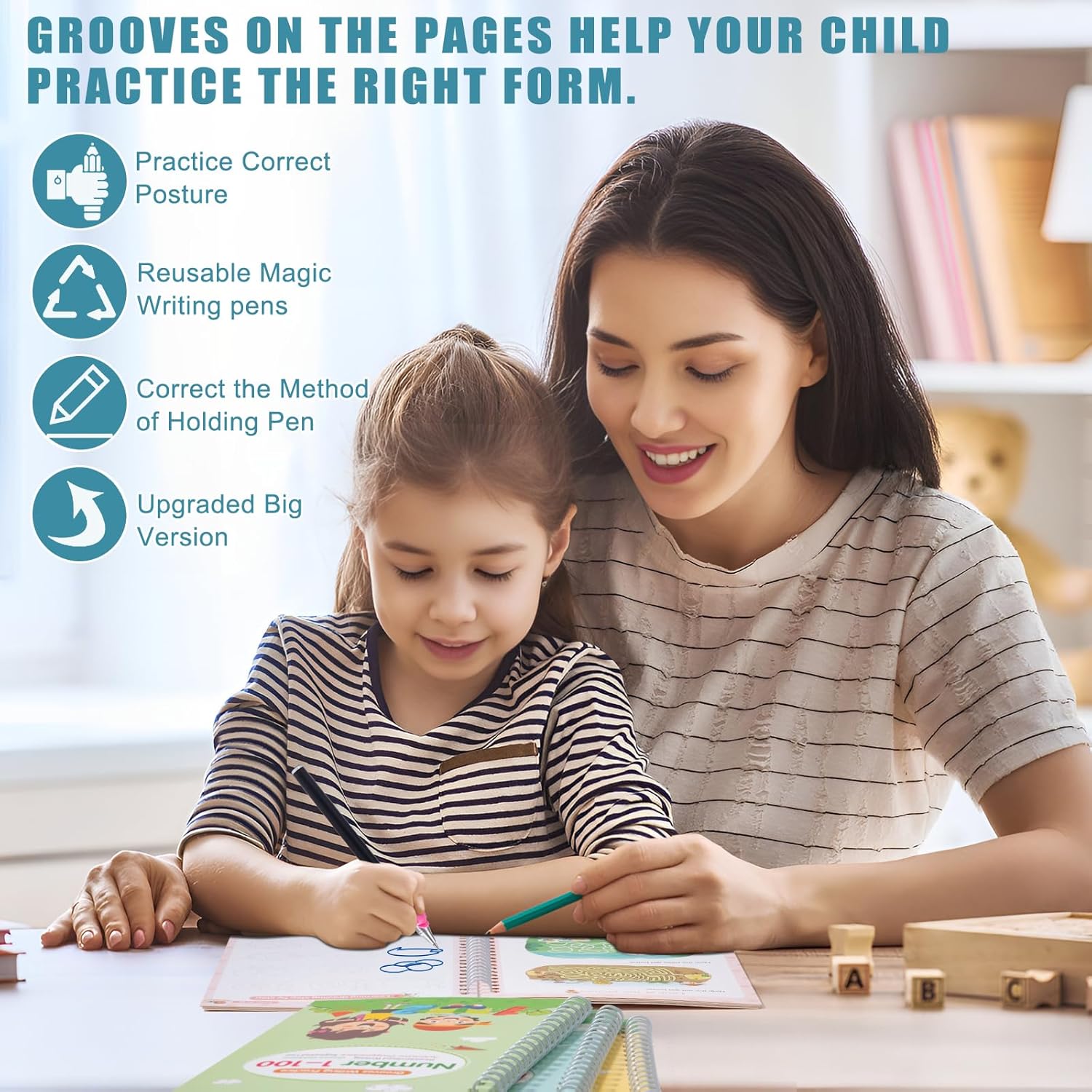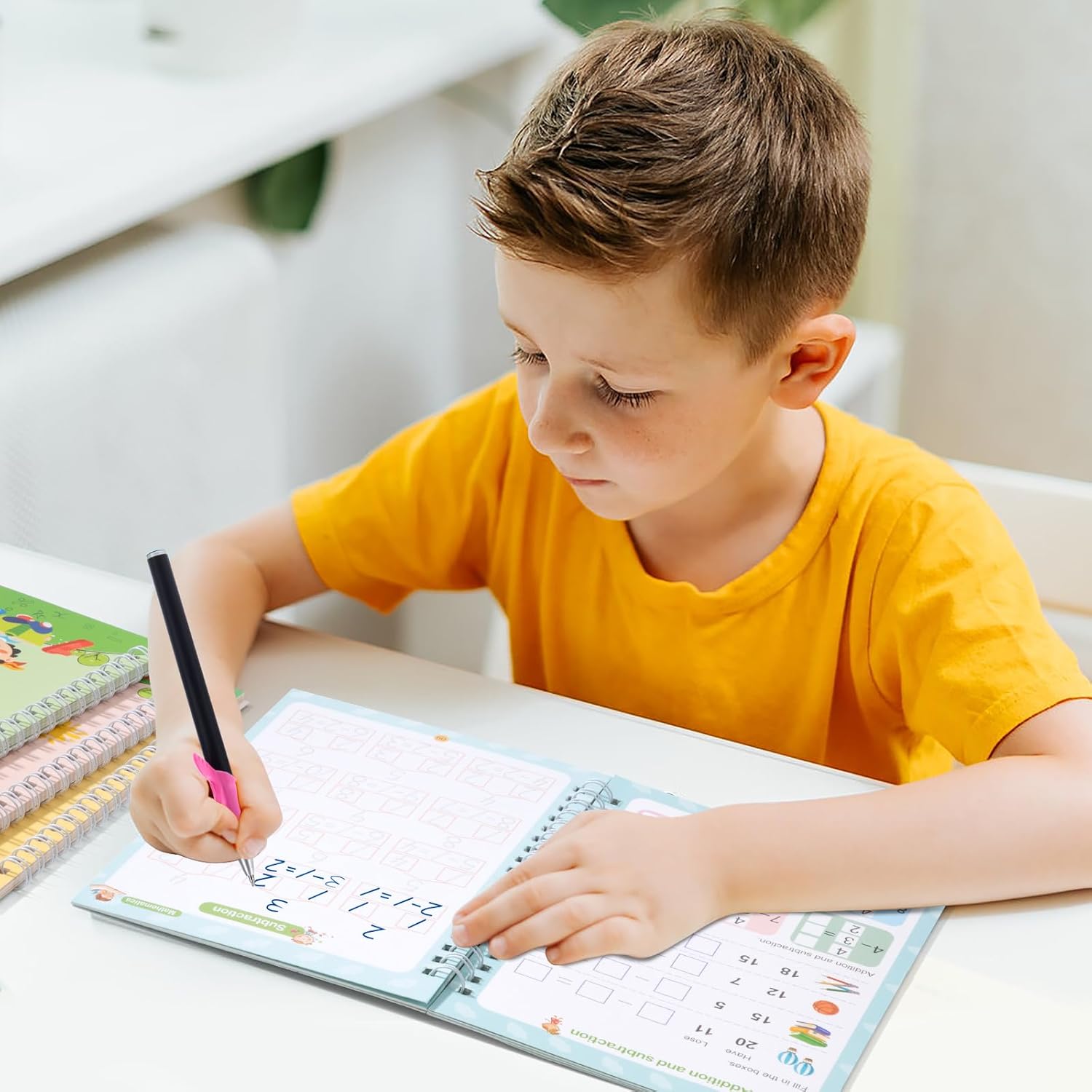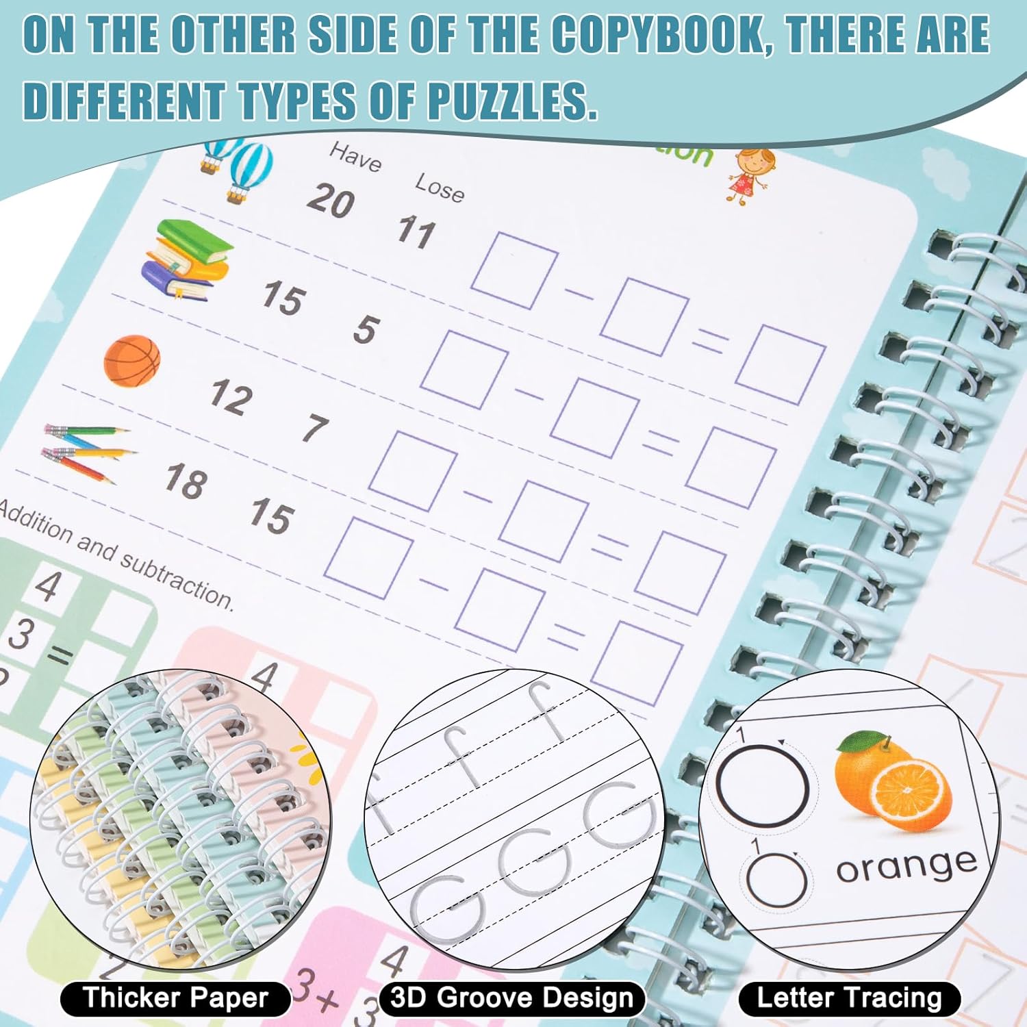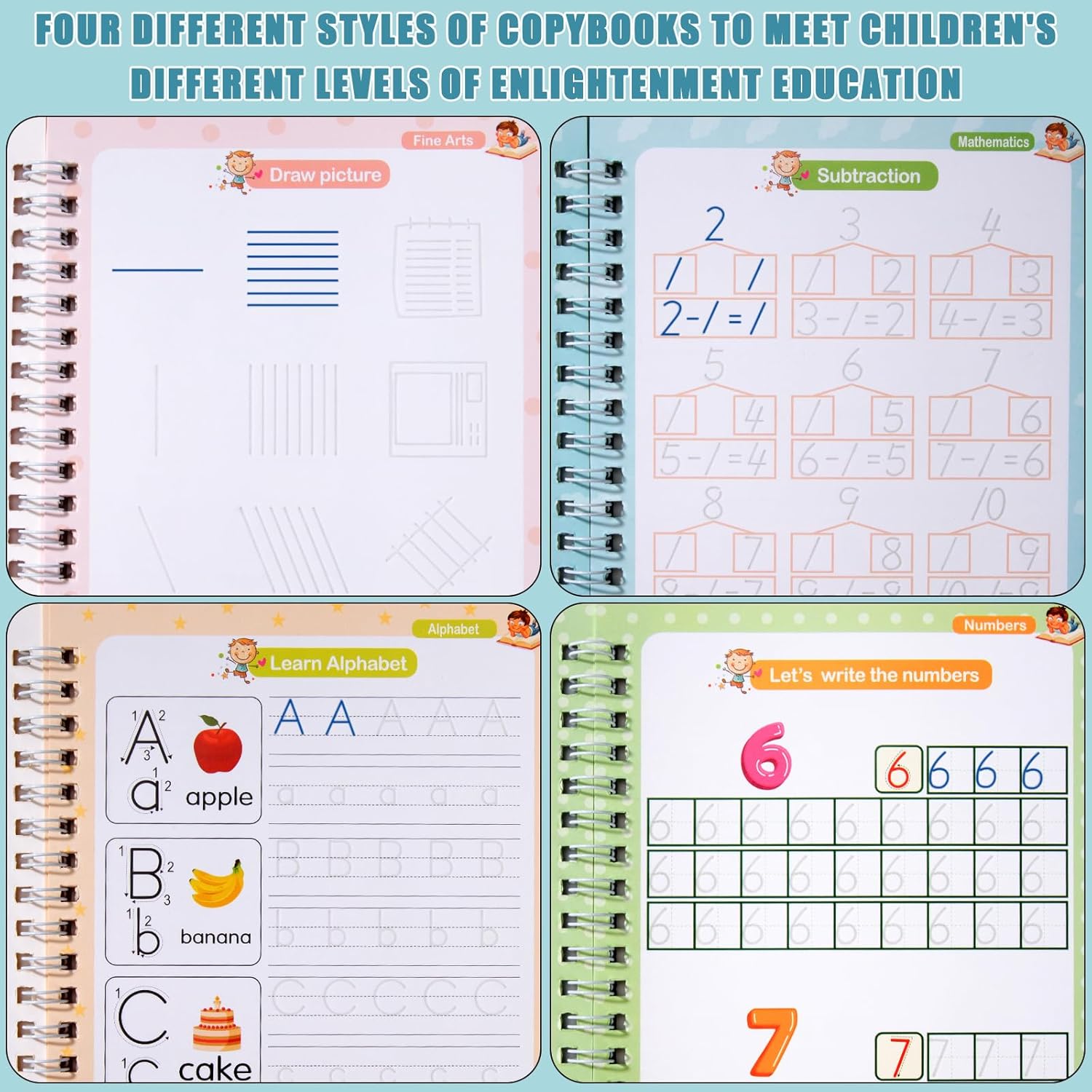 La scelta migliore per la prima educazione: i nostri quaderni di scrittura prescolare coprono più contenuti curriculari per aiutare i bambini a rimanere concentrati e sviluppare capacità motorie e capacità di coordinazione manuale. Non solo aiuta i bambini a migliorare le loro capacità di scrittura, ma porta i bambini a padroneggiare la corretta postura di mantenimento. Regalo perfetto per bambini di 3-8 anni in occasione di compleanni, Natale, Pasqua, Ringraziamento, ecc. Quaderno riutilizzabile per la scrittura a mano dell'asilo: le ricariche corrispondenti dei libri per la scrittura riutilizzabili utilizzano inchiostro magico, la scrittura svanirà e scomparirà automaticamente entro 30 minuti dalla scrittura, ideale per esercitazioni ripetute. Risparmiandoti un sacco di problemi legati all'acquisto di pile di quaderni. Tracciatura con scanalature 3D per l'apprendimento guidato: il quaderno con scanalature riutilizzabile per bambini ha un design con scanalature tridimensionali, che aiuta i bambini a sviluppare una corretta memoria muscolare e una bella calligrafia senza sforzo. Quaderno di esercizi di scrittura: include 4 libri di esercizi di scrittura che coprono le abilità prescolari essenziali: alfabeto, numeri da 1 a 100, addizione e sottrazione e disegno. Fornisce una risorsa unica per i bambini dai 3 agli 8 anni per aiutarli a padroneggiare le basi della scrittura e della matematica. Sviluppo completo delle competenze: la pratica della scrittura a mano per i bambini insegna loro l'alfabeto, i numeri, il disegno e la matematica. Il nostro libro di ricalco introduce i primi scrittori al corretto controllo della penna, al tracciamento di linee e altro ancora con dozzine di esercizi di scrittura che coinvolgono la loro mente e migliorano la comprensione della lettura e della scrittura.