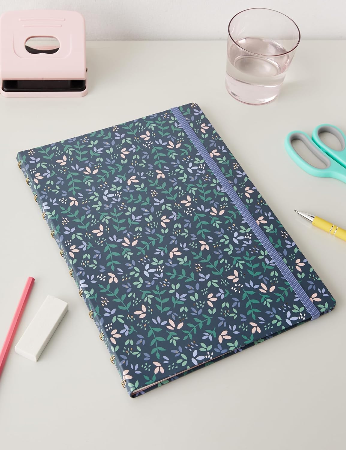Copertina fantasia con accenti dorati Chiusura con elastico Le pagine possono essere aggiunte, rimosse o riposizionate Si piega completamente in piano e si ripiega schiena contro schiena 56 fogli di carta adatta per penne stilografiche da 100 g/m²