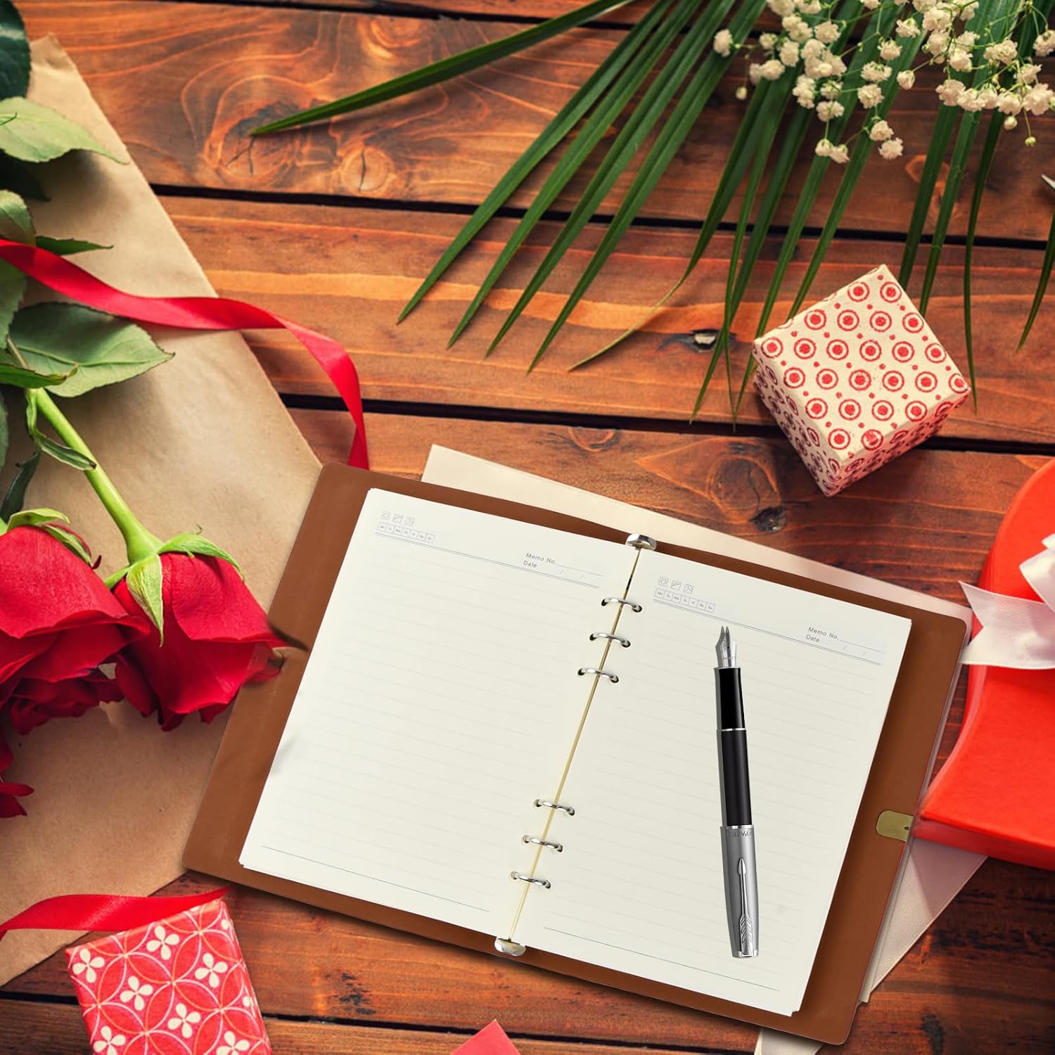 【Pelle ecologica】 Il notebook in pelle PU è realizzato in ecopelle di alta qualità, morbida e resistente all'usura, comoda al tatto. Aspetto raffinato, copertura resistente non è facile da danneggiare. 【Carta di alta qualità】 L'interno del taccuino è realizzato con carta spessa di alta qualità, carta da 80 g di alta qualità, scrittura fluida, senza effetto crespo. Può prevenire la fuoriuscita dell'inchiostro e può scrivere su entrambi i lati. 【Design ricaricabile】 All'interno del diario vintage è presente una cartellina in metallo a fogli mobili che può facilmente sostituire le pagine usate mantenendo intatte la copertina e le pagine importanti. 【Taccuino vintage】80 fogli all'interno del taccuino, 160 pagine, con lacci elastici all'esterno, non facili da rompere. Il cordino ha un colore metallico vintage abbinato, bello e alla moda. 【Ampio utilizzo】 Il taccuino A5 può essere utilizzato in una varietà di luoghi, è un must per lo studio, l'ufficio, i registri di viaggio, le trattative commerciali, le riunioni e altri scenari.