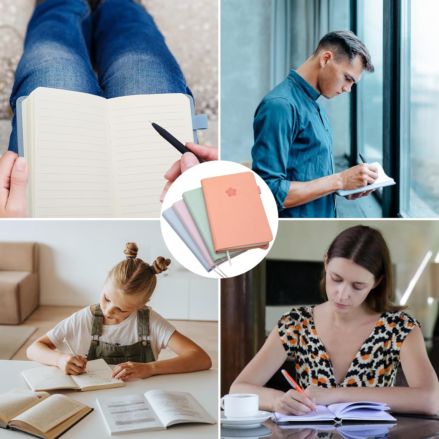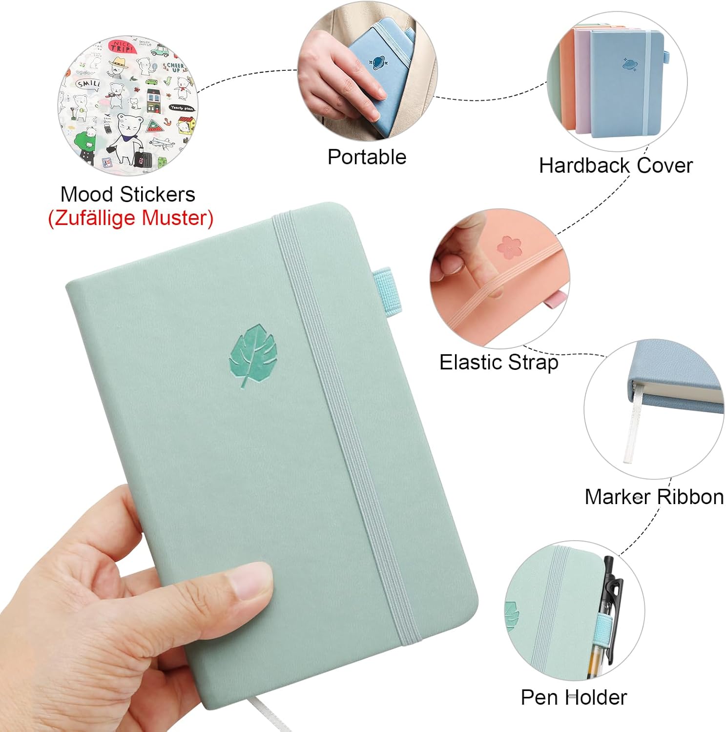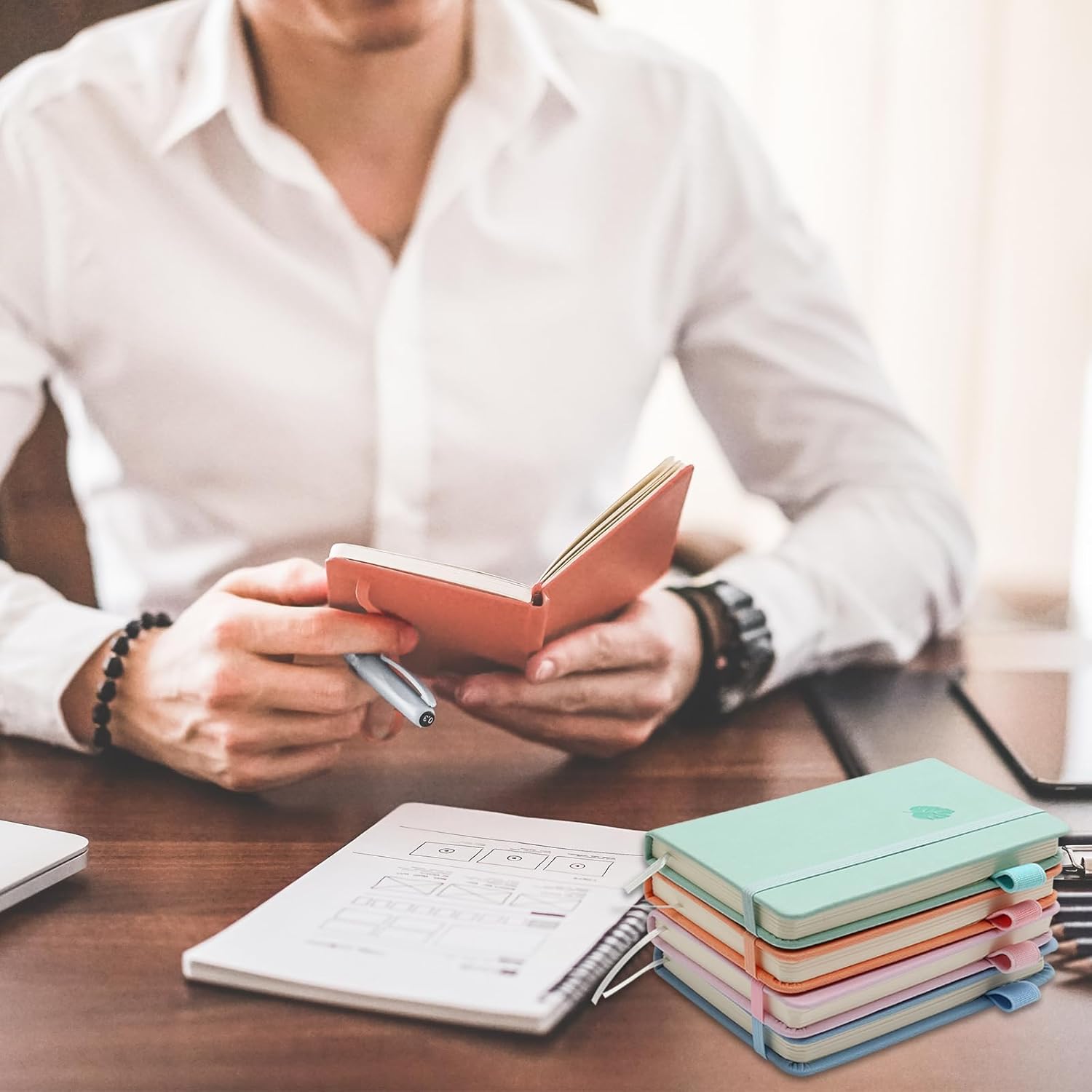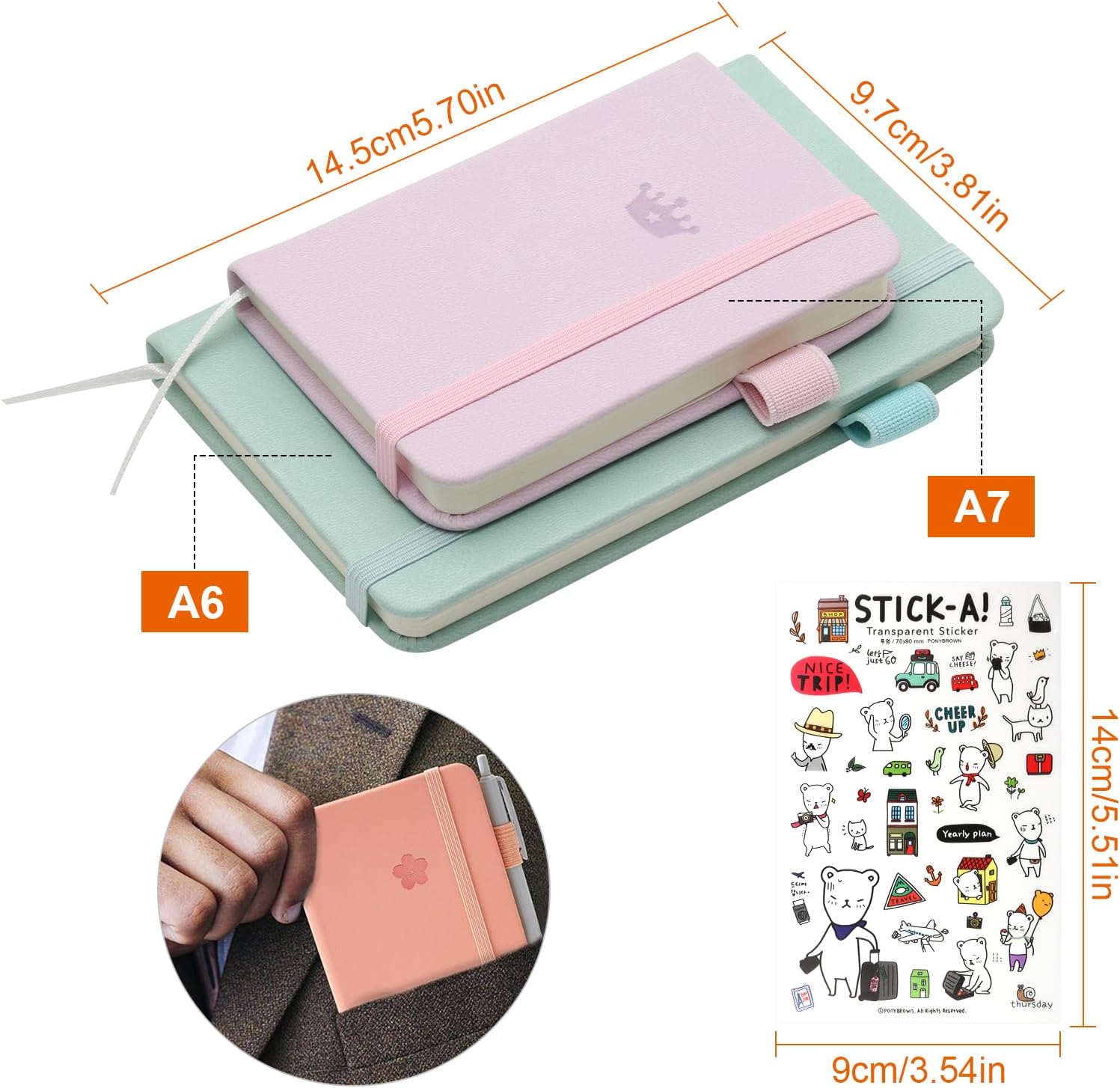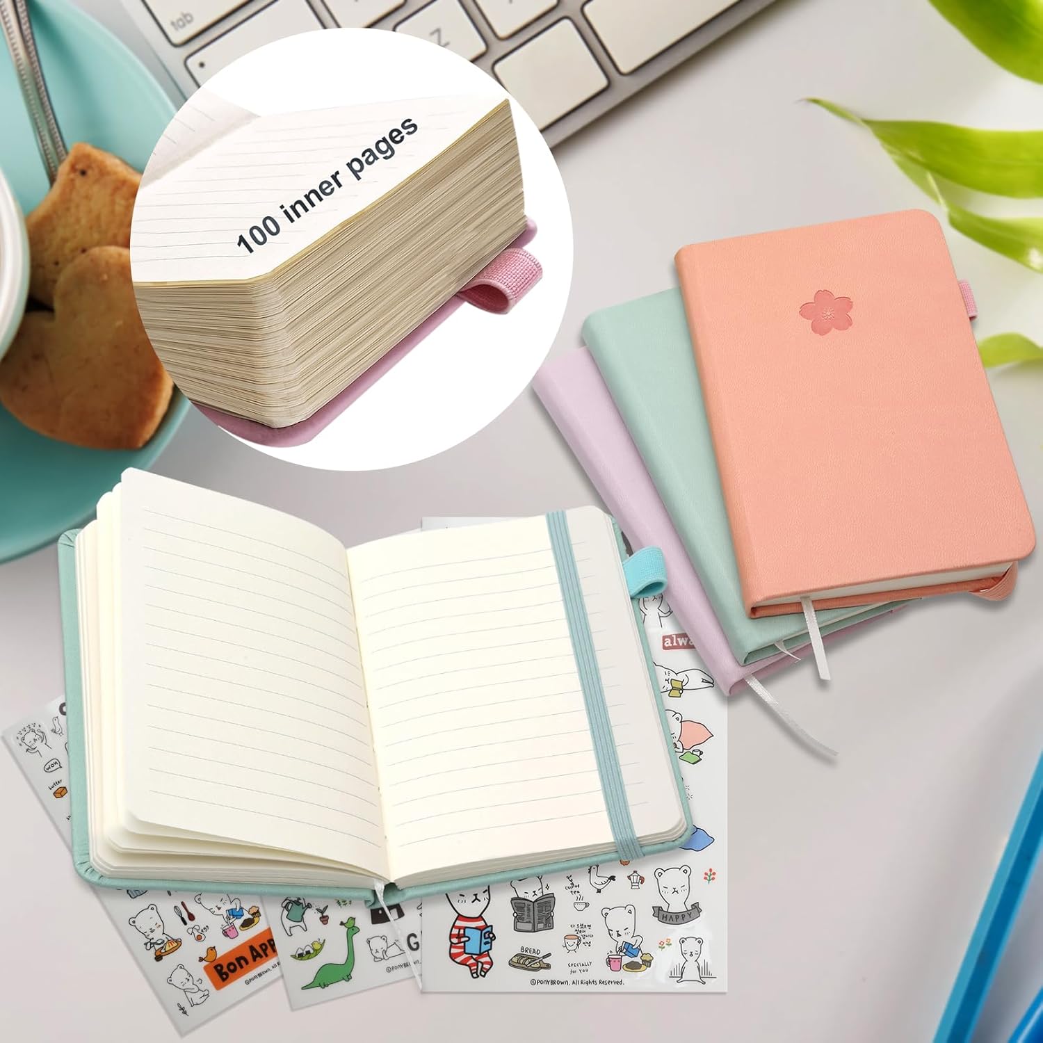 Portatile: il piccolo taccuino tascabile A6 (9,7 x 14,5 cm) si mette direttamente in tasca. Il set di blocchi note A6 ti consente di tenere traccia della tua vita mentre sei in movimento o come promemoria per ricordartelo. Regalo squisito: include 4 quaderni in finta pelle e 6 divertenti adesivi (motivi casuali) all'interno. Il colorato set di mini blocchi note tascabili è un regalo molto sincero e una prima scelta per regali delicati. Design accurato: le pagine del taccuino con copertina rigida A6 hanno angoli arrotondati e la copertina è progettata con un elastico e una striscia di marcatura in modo da poter chiudere perfettamente il taccuino ogni volta e anche per mantenere la penna in posizione. Blocco note di memoria: quando scrivi una nota, puoi anche utilizzare adesivi a fumetti per rappresentare il tuo umore attuale. Quando sarai vecchio e rivedrai i quaderni, tornerai subito alle gioie o alle preoccupazioni di una certa giornata! Versatilità: il piccolo set di taccuini è un taccuino per studenti, un taccuino per dipendenti, un taccuino di ispirazione per i creatori in movimento, un'agenda personale per adulti e un diario segreto per bambini!