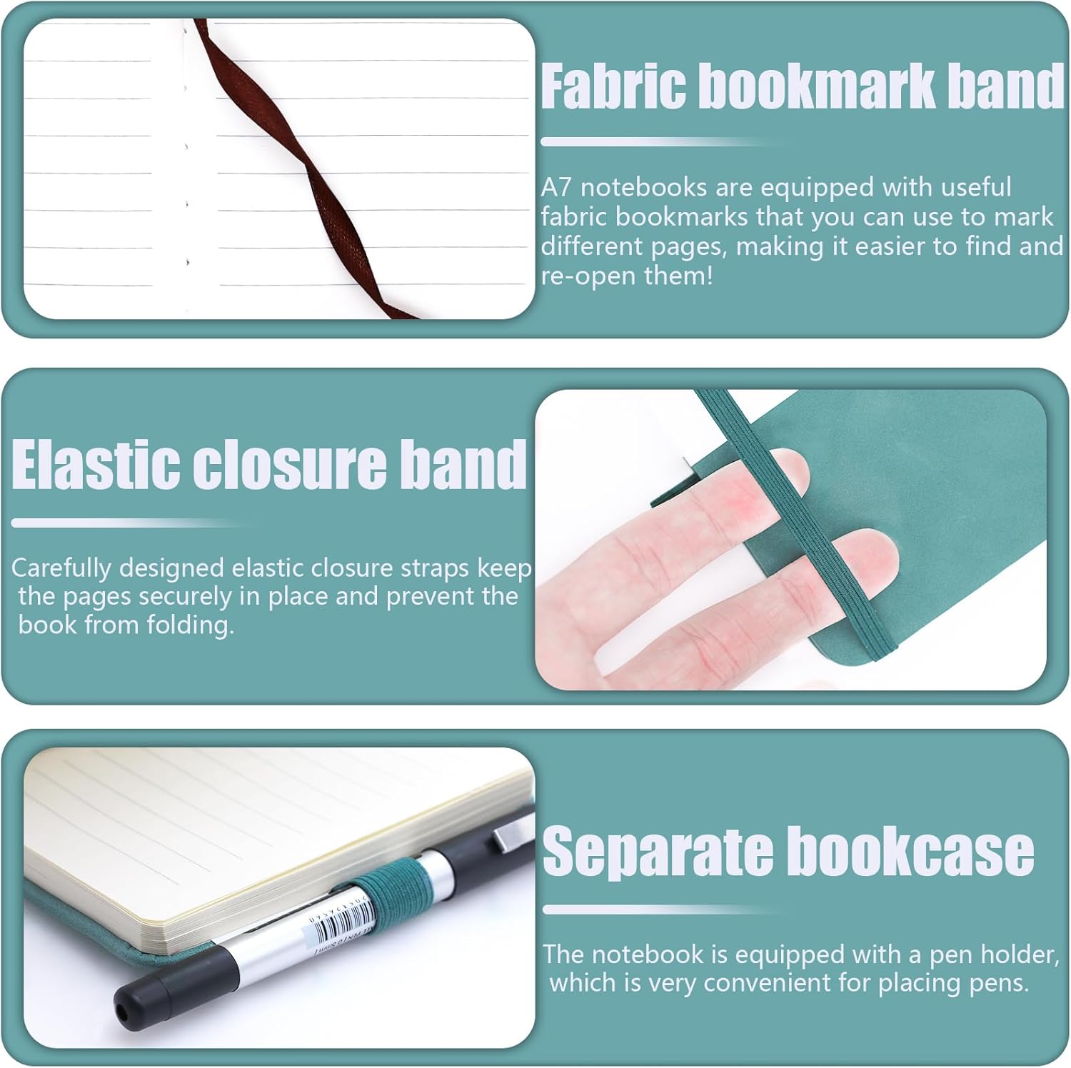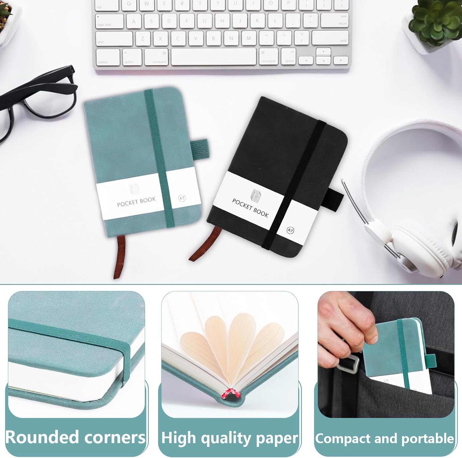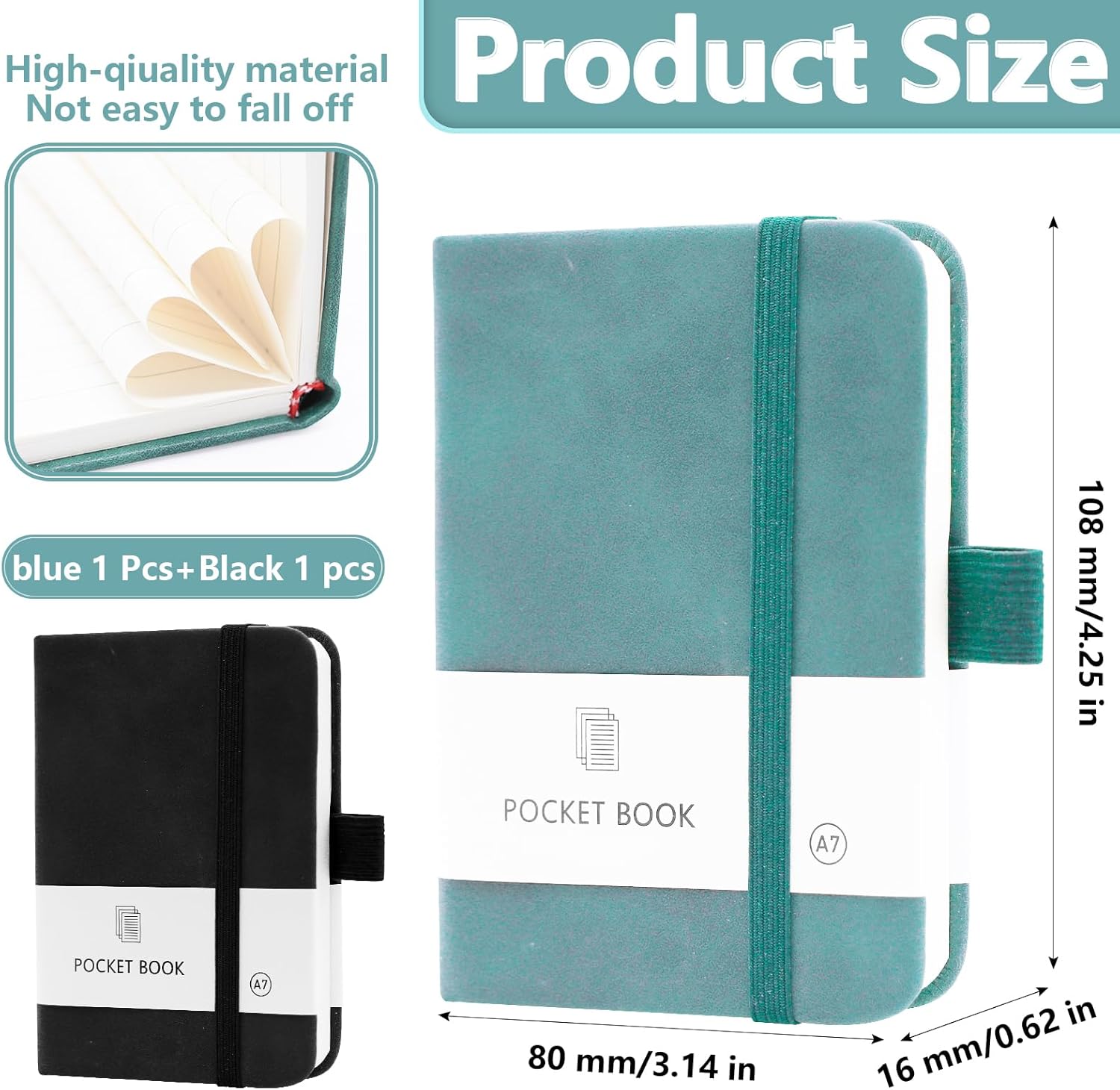 PICCOLO E PORTATILE: Le dimensioni del piccolo taccuino portatile sono 10,8 x 8 x 1,6 cm, è piccolo e carino e può essere facilmente infilato in tasca o in borsa, il che è comodo per te, senza occupare troppo spazio e peso, ed è adatto per l'uso quotidiano continuo DESIGN PRATICO: Il passante portapenne ben progettato si adatta alla maggior parte delle penne, permettendoti di riporre la penna o la matita in modo sicuro senza preoccuparti di perderla. E la sua fascia di chiusura elastica tiene insieme le pagine in modo affidabile ed efficace proteggendo il libro dalla piegatura. I pennarelli a nastro ti permettono di segnare le diverse pagine per trovarle e riaprirle più facilmente ISTRUZIONI DI ALTA QUALITÀ: Il nostro mini taccuino personalizzato è realizzato in similpelle e promette una sensazione e un aspetto piacevoli. Il taccuino tascabile è disponibile in due colori classici (azzurro, nero), sobri ed eleganti, adatti a persone di tutte le età. È molto adatto come regalo squisito per la famiglia, gli amici, i compagni di classe e i colleghi a scuola, ai festival e al lavoro. LISTA DELLA CONFEZIONE: Contiene due mini quaderni da 100 fogli ciascuno, 200 pagine in totale, la carta è abbastanza spessa, resistente agli urti e alle perdite di inchiostro, adatta alla maggior parte delle penne AMPIA UTILIZZO: I nostri piccoli quaderni sono adatti a principianti, uomini d'affari, scrittori professionisti o persone che lavorano e studiano in altri campi. Versatile, può essere utilizzato come diario, quaderno. Con il taccuino AIMEKE-A7 puoi annotare rapidamente i tuoi pensieri o le cose importanti in qualsiasi momento