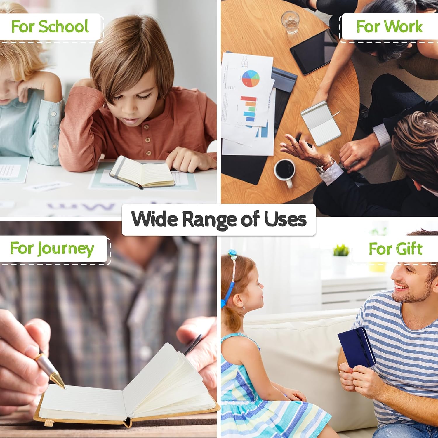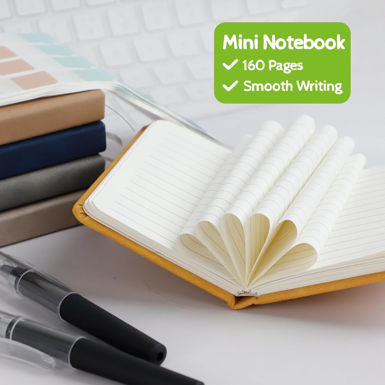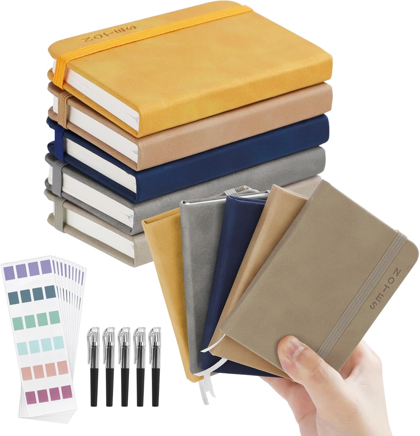 🌟Contenuto della confezione: riceverai 5 piccoli quaderni tascabili in diversi colori, 5 penne tascabili e 240 strisce adesive. La dimensione di questo taccuino è 10,5 cm*7,5 cm, dimensione media, perfetta da portare con te o da mettere in tasca, così puoi registrare ciò che vedi e senti sempre e ovunque. 🌟Carta di qualità: questo quaderno A7 contiene 160 pagine/800 fogli e ti offre molto spazio per scrivere, permettendoti di scrivere liberamente con penna e inchiostro e di dare libero sfogo alla tua creatività. E la carta del mini taccuino è una carta protettiva per gli occhi ultra-liscia ispessita, la scrittura non è facile da far sanguinare l'inchiostro primaverile, così puoi sentire la comprensione silenziosa di carta e penna. 🌟Matita tascabile e striscia adesiva gratuite: il nostro mini blocco note viene fornito con cinque penne tascabili da 0,5 mm e 240 strisce adesive. Le penne tascabili rilasciano inchiostro in modo uniforme, la scrittura è fluida e non scorre e le linguette indice sono disponibili in diversi colori per consentirti di contrassegnare meglio le tue priorità e classificare i diversi contenuti di scrittura. La combinazione perfetta ti offre un'esperienza di scrittura migliore. 🌟Ottimo design: il nostro set di mini quaderni adotta una copertina in pelle ispessita, un guscio robusto può proteggere meglio le pagine interne e può renderle resistenti all'usura e alle macchie; I nostri quaderni sono inoltre dotati di elastici e segnalibri a nastro che conferiscono loro un'esperienza più umana. I nostri piccoli taccuini sono dotati di elastici e nastri di lettura, offrendo loro un'esperienza più personale. I nostri quaderni sono disponibili in un'ampia gamma di colori e hanno un design compatto e bello, perfetto per infermieri, insegnanti, studenti e impiegati. 🌟Ampio utilizzo: questo quaderno piccolo, portatile e colorato è perfetto per l'ufficio, la casa, la scuola e altre aree. Può essere utilizzato come diario, blocco note, manuale di viaggio, agenda ecc. Questo delizioso piccolo taccuino può essere portato ovunque in modo da poter scrivere parole sulla tua vita in qualsiasi momento, ed è anche un bel regalo per i tuoi amici e familiari. E con il suo design compatto e i colori vivaci, puoi anche infilarlo nel sacchetto delle feste per sorprendere i tuoi bambini!