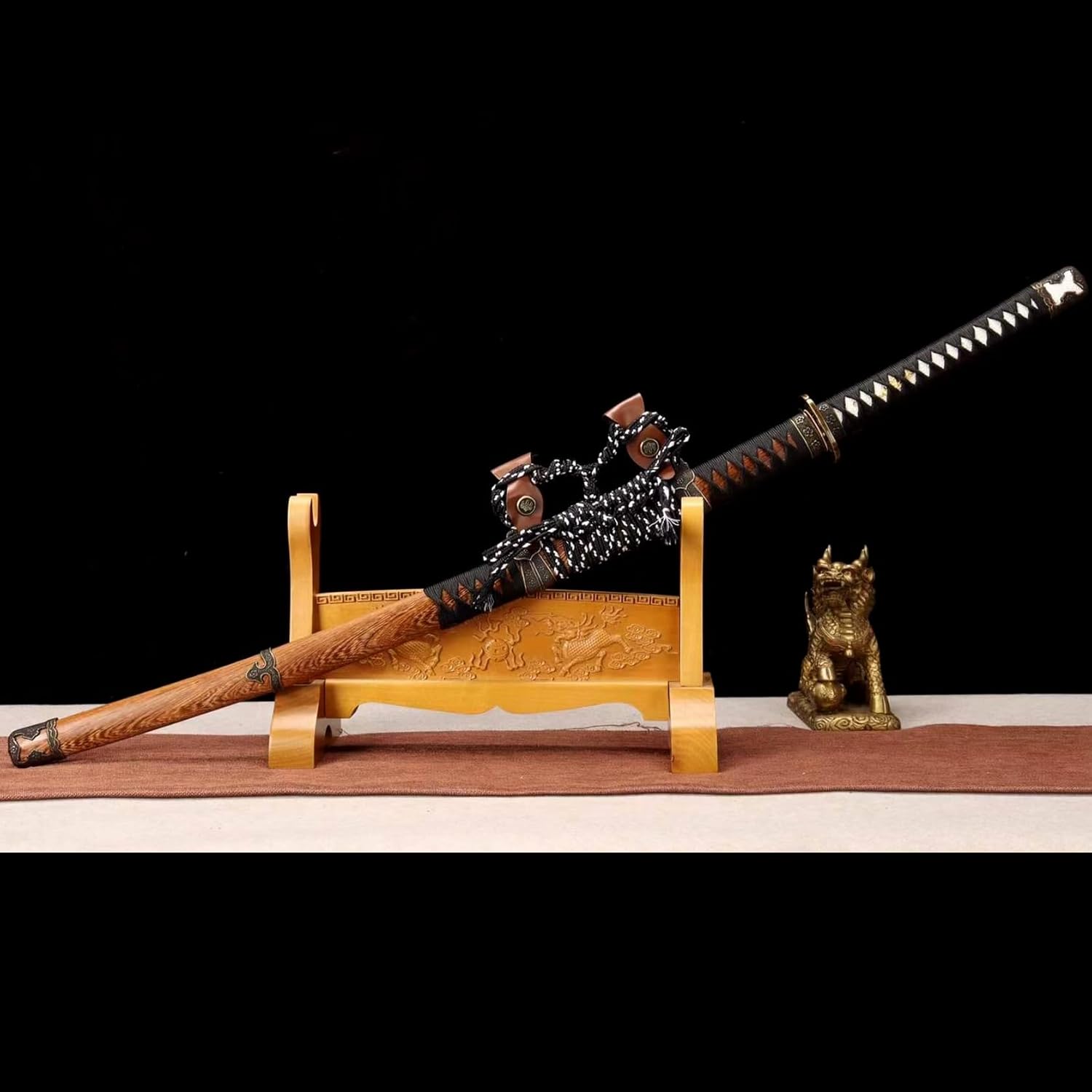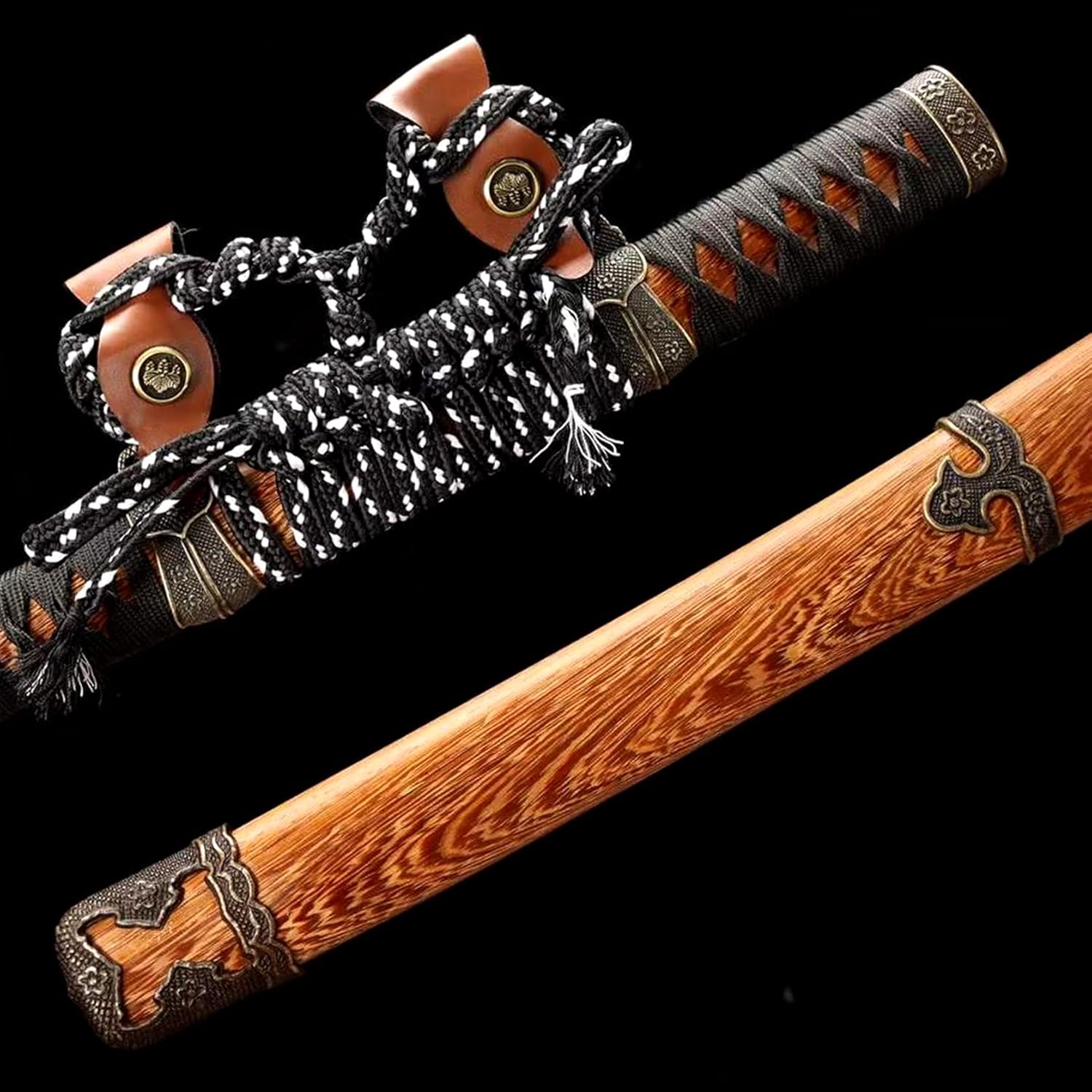 ▶ 【Materiali selezionati】 Le nostre lame katana sono realizzate in acciaio T10 con tecnologia Fire Edge ricoperta di terra, che le rende resistenti e durevoli. Il paramano è realizzato in metallo di alta qualità, semplice ed elegante; il fodero è in palissandro naturale. Il legno è duro e le venature del legno sono chiare, il che non solo mostra la bellezza della spada ma protegge anche la sicurezza del corpo della spada. ▶ 【Artigianato tradizionale】: le spade dei samurai sono tutte forgiate a mano per garantire che ogni coltello sia accuratamente lucidato e indurito per mostrare durezza e tenacità. Abili artigiani hanno dato il meglio di sé e hanno attraversato molteplici processi come taglio, forgiatura a caldo, pala, limatura, molatura, estinzione del fuoco e indurimento per completare questa spada da samurai. ▶ 【Sezione aurea】: la lunghezza totale della katana è di 103 cm, la lunghezza della lama è di 71 cm, la lunghezza del manico è di 27 cm, la larghezza della lama è di 3,2 cm, lo spessore della lama è di 0,7 cm e il peso è di circa 1,3 kg. Perfettamente proporzionata e del giusto peso per il gioco di ruolo, può essere utilizzata anche come spada per la pratica del kendo. ▶ 【Impugnatura comoda】: l'impugnatura della katana è avvolta da una corda di cotone, che non solo assorbe il sudore e antiscivolo, ma è anche comoda da tenere. Mentre agiti lo shuriken, ti sentirai come se fossi nel periodo degli Stati Combattenti del Giappone e sperimenterai coraggio e gloria. ▶ 【Ottimo regalo】: questa spada katana è senza dubbio la migliore scelta regalo per collezionisti, cosplayer e amanti dei samurai. Che si tratti di Comic-Con, feste in costume, eventi cosplay, Halloween o decorazioni per la casa, può diventare un compagno indispensabile al tuo fianco.