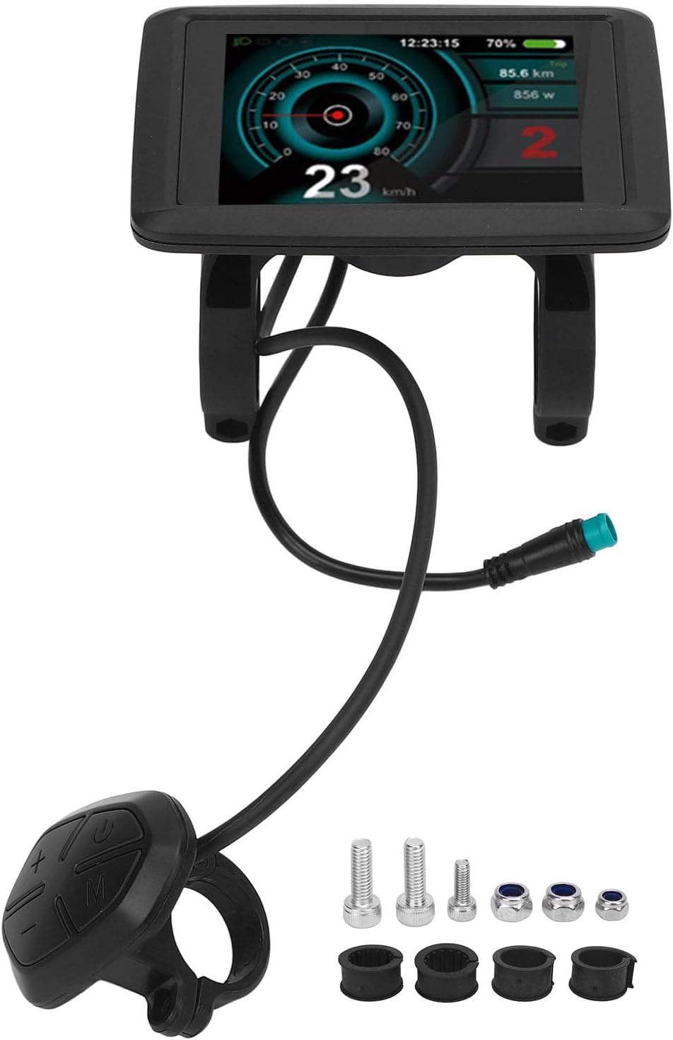 Display multifunzione chiaro: il tachimetro è dotato di un pannello ad alta risoluzione che fornisce letture precise del livello della batteria, della velocità e del chilometraggio per un'esperienza di guida fluida e confortevole. Porta di ricarica USB: il tachimetro è dotato di una presa di ricarica USB, uscita 5 V 500 mA. Questo display LCD per scooter elettrico ti consente di caricare il tuo telefono o altri dispositivi mentre sei in movimento e di rimanere alimentato durante la guida. Schermo LCD impermeabile: il tachimetro è dotato di un display LCD impermeabile. Questo computer da bicicletta elettrico può affrontare facilmente le condizioni di pioggia, ma si consiglia di non esporlo a forti piogge per lungo tempo. Interfaccia intuitiva: il tachimetro integra un chip intelligente per cambi di marcia fluidi e dati di guida in tempo reale. Il design della retroilluminazione garantisce una chiara visibilità giorno e notte e aumenta il comfort di guida. Costruzione ABS: il tachimetro è realizzato in materiale ABS leggero ma robusto. Questo contachilometri tachimetro per bicicletta elettrica offre un'eccellente protezione per i circuiti interni, garantendo lunga durata e affidabilità.