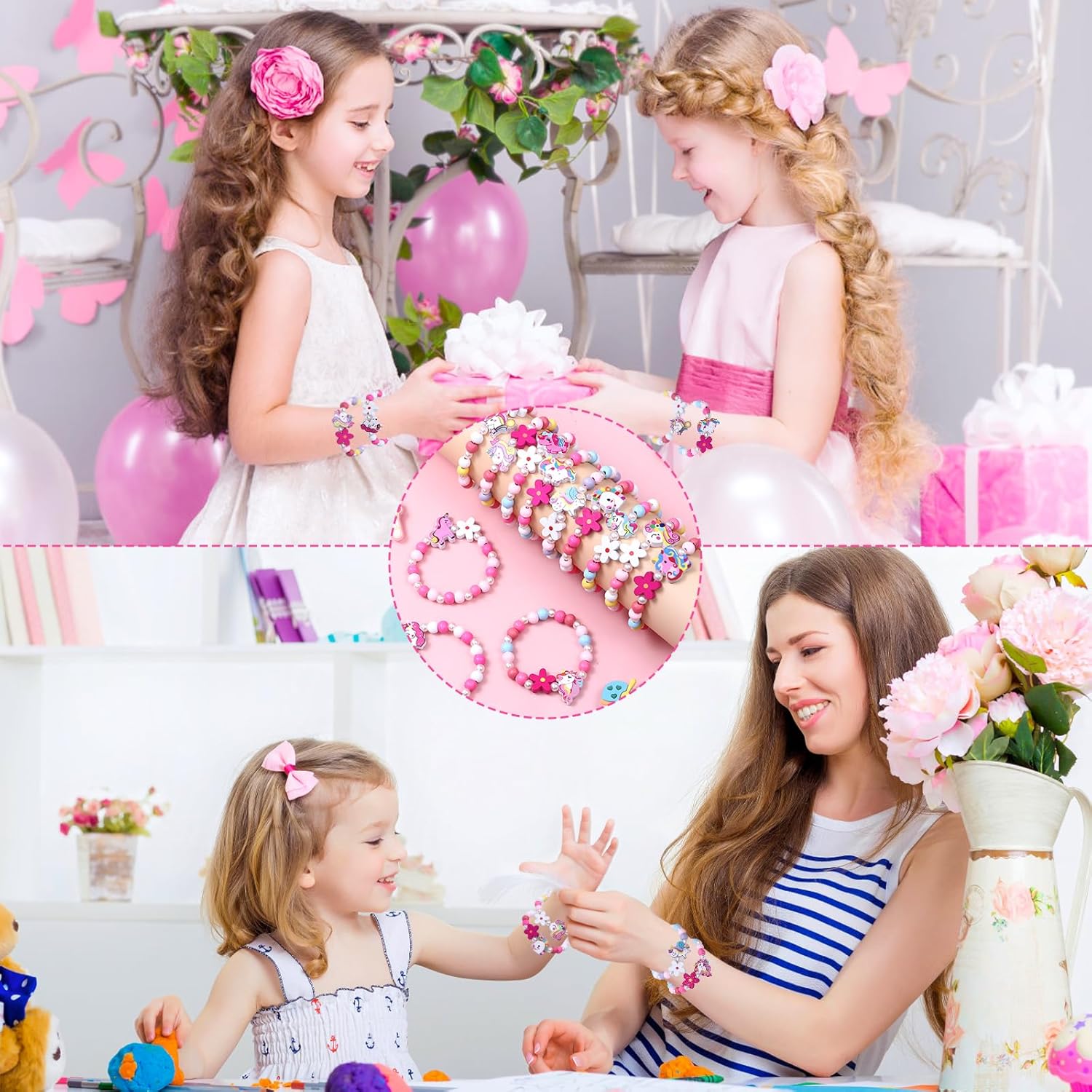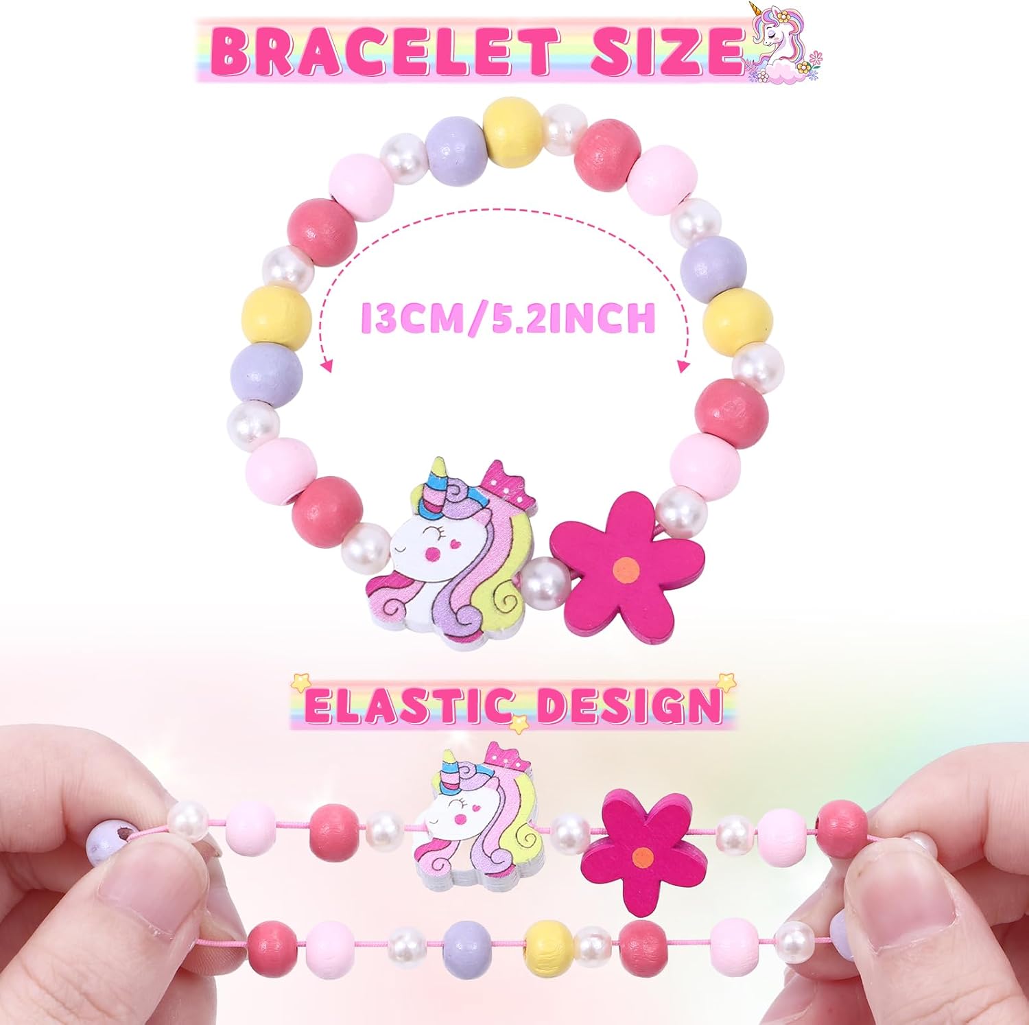 STILI DI DESIGN ORIGINALI CARINI: un totale di 12 braccialetti colorati con unicorno in stili diversi. Questo è sufficiente per far giocare i tuoi bambini e offrire loro una scelta diversa di indossamento ogni giorno, puoi anche condividere questi braccialetti con perline di legno con gli amici. È un regalo perfetto per le bambine dai 3 agli 8 anni ed è un simbolo di amicizia tra amiche. Bomboniere per ragazze: questi adorabili braccialetti sono perfetti per forniture per feste di unicorno, bomboniere per feste di compleanno, riempitivi per sacchetti regalo, riempitivi per sacchetti per ragazze, riempitivi per pinata, collezioni di unicorni e regali per principesse. Inoltre, è anche una buona scelta per riempire le calze di Natale, riempire le uova di Pasqua, scambiare regali di classe, premi di classe, premi di giochi e altro ancora. MATERIALE SICURO E MISURA ELASTICA: Tutti i braccialetti sono realizzati a mano con perline di legno sicure e non tossiche. Il design leggero e arrotondato è più amichevole e comodo per i bambini nella vita quotidiana. Ogni braccialetto misura circa 15,5 cm ed è elastico per indossarlo e toglierlo facilmente. Colori vivaci e graziosi unicorni sono progettati appositamente per le tue piccole principesse e i fan degli unicorni. Ottima aggiunta ai compleanni dei bambini e alle feste con unicorni. REGALI CARINI PER LE RAGAZZE: regali ideali per le tue bambine in occasione di compleanni, Natale, Pasqua, Carnevale, San Valentino, Capodanno o qualsiasi altro giorno speciale. I nostri braccialetti multicolori sono adatti alle ragazze da indossare in diverse occasioni, abbinandoli ai loro diversi outfit alla moda o come meravigliosi gioielli di moda quotidiana, permettendo loro di vestirsi allegramente e divertirsi senza fine. SERVIZIO CLIENTI: La nostra massima priorità è fornire a ogni acquirente un'esperienza di soddisfazione al 100%. Supporta il rimborso o invia nuovamente se c'è un problema di qualità o un articolo danneggiato. Non esitate a contattarci se il prodotto non soddisfa le vostre aspettative. Ti risponderemo entro 24 ore. Grazie per il vostro supporto e comprensione.