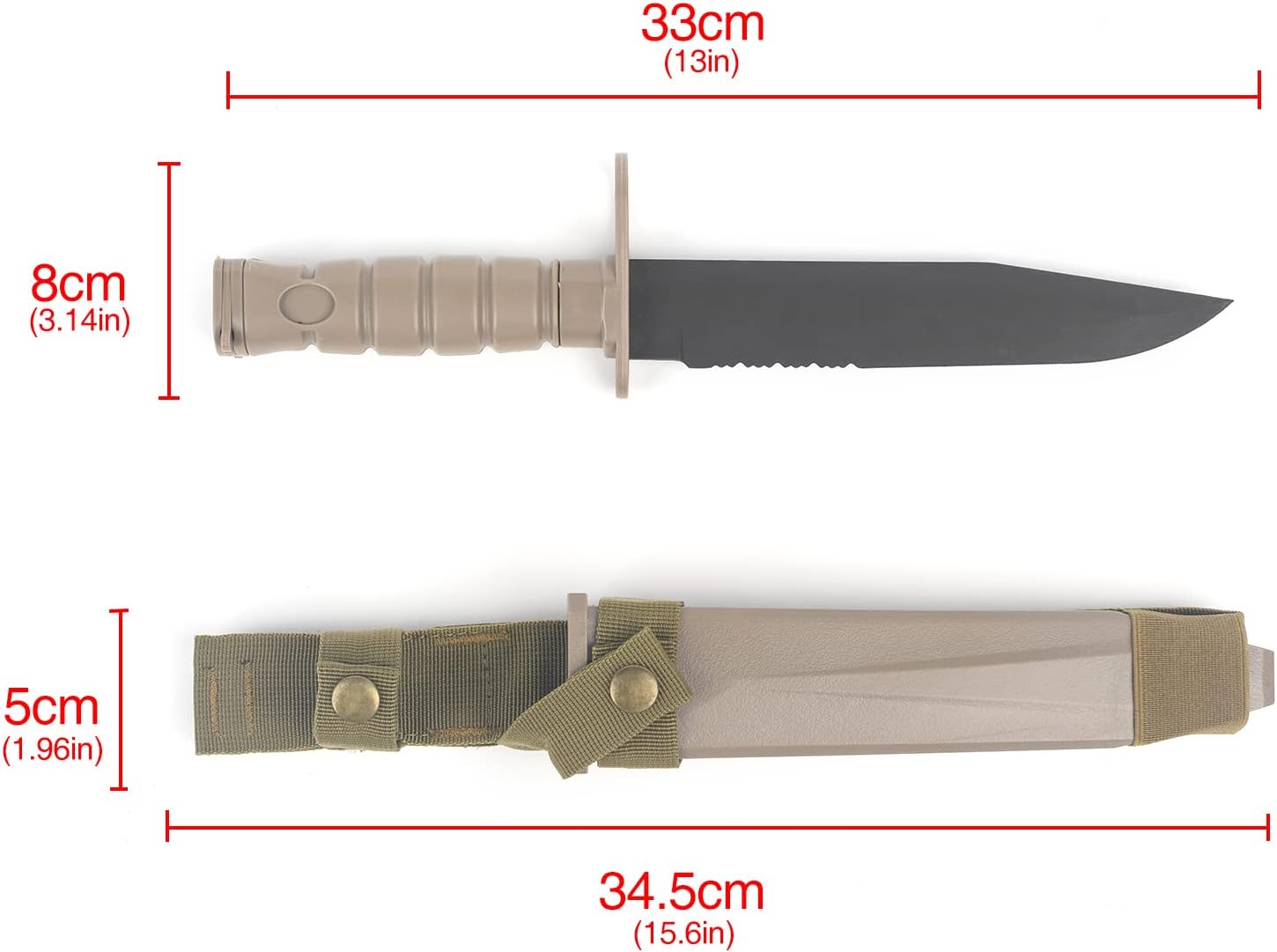 Materiale: lame di gomma morbida e maniglie di nylon e custodia. Struttura durevole e grande valore. La forma reale è priva di metallo e sicura per le attività di allenamento. Le lame di gomma TPR sono morbide e possono piegare più di 90 gradi. Le forme sono sofisticate e realistiche, ma senza l'estremo pericolo e il rischio di un coltello reale. Fai attenzione a non ferirti gli occhi. Adatto per giochi di ruolo, giochi di guerra, caccia tattica. Accessori di abbigliamento di festa di antiquariato, amanti dell'addestramento militare CS Cosplay giocattolo spada, modello del primo pugnale di sangue. È dotato di un dispositivo di protezione per lame che può essere attaccato alla cintura o allo zaino con una cintura Velcro. Soluzioni di alta qualità per l'attrezzatura di artiglieria per l'addestramento all'aperto della caccia tattica. Si noti che si tratta di un falso coltello modello non affilato, non un vero pugnale di metallo. Si prega di considerare attentamente prima dell'acquisto.