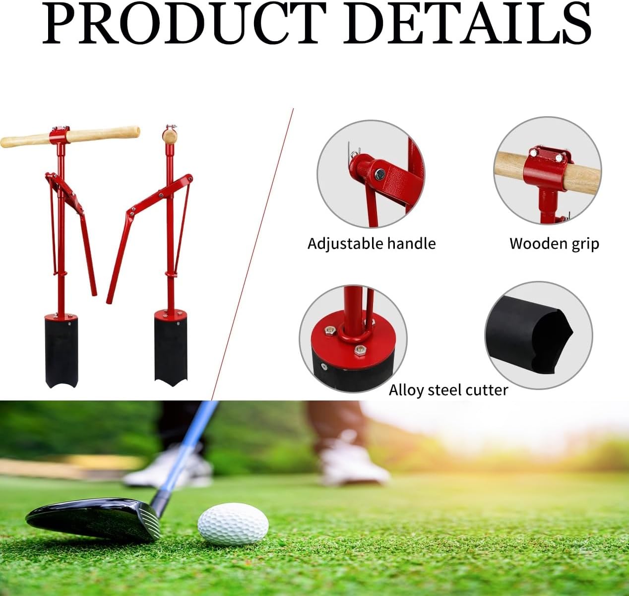 Compatto e portatile: il suo design pieghevole garantisce una comoda conservazione e trasporto, rendendolo perfetto per allenarsi al parco o in qualsiasi luogo all'aperto. Basta premere verso il basso per praticare un foro senza sforzo, consentendoti di giocare a golf ovunque e in qualsiasi momento, senza complicazioni. Design robusto e stabile: dotato di un meccanismo di giunzione a vite che si blocca saldamente in posizione, garantendo la massima stabilità per scavi accurati. Comoda impugnatura in legno: progettata con un'impugnatura in legno massello per un'esperienza d'uso comoda e affidabile, che consente di scavare con facilità e senza affaticare la mano. Costruzione: realizzato con viti di alta qualità per prestazioni durature, rendendo questo strumento una scelta affidabile per tutte le tue esigenze di allenamento del golf.