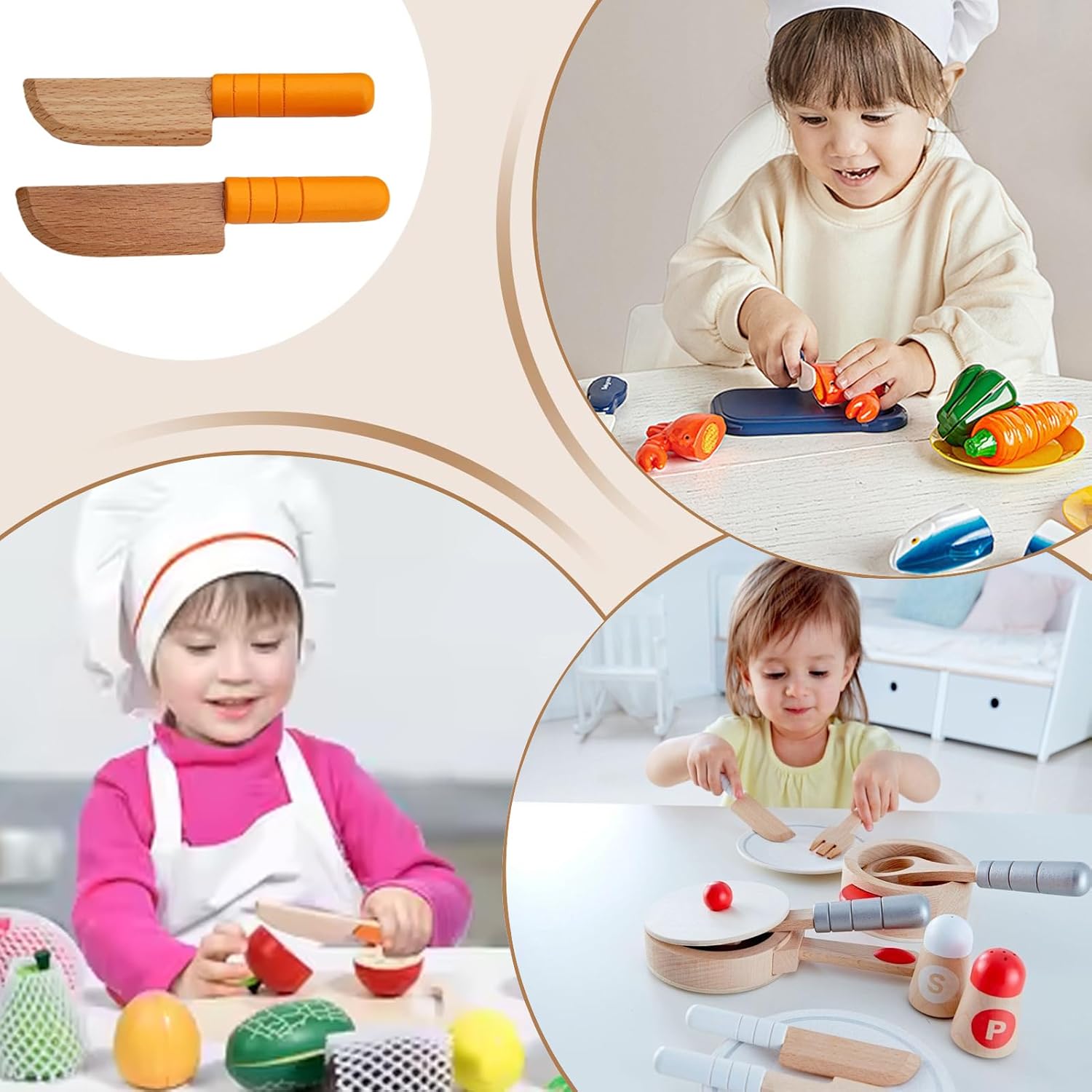 Presa Facile e Comoda: Strumento leggero che aiuta la crescita delle capacità motorie. Design ergonomico con curvatura palmare e impugnatura facile per migliorare comfort e usabilità. Dimensioni compatte, perfette per le manine dei bambini. Gioco Simbolico Creativo:Offre esperienza coinvolgente di gioco simbolico attraverso dettagliata simulazione di taglio, rendendo piacevoli le attività di ruolo mentre ispira creatività nei bambini Mani Sicure e Morbide: Realizzato in legno di faggio naturale con finitura levigata, questo tagliaverdure per bambini offre una presa confortevole e delicata sulla pelle, garantendo sicurezza costante durante l'utilizzo da parte dei più piccoli. Strumento Affidabile: Metodi anti-deformazione e tratti anti-nel faggio compatto forniscono una struttura stabile, supportando l'esplorazione creativa dei bambini con performance affidabile. Sviluppo Abilità: Promuove il design di gioco educativo per bambini piccoli, rafforzando la coordinazione occhio-mano e il pensiero logico tramite attività ludiche coinvolgenti e stimolanti