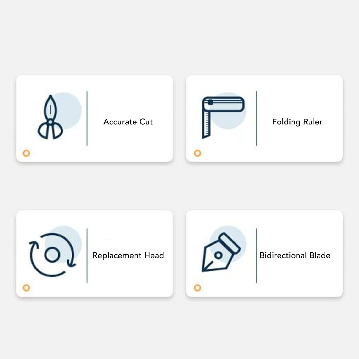 [Design sicuro e conveniente] Con una lama nascosta che taglia quando viene premuta, questa taglierina garantisce sicurezza per gli utenti, in particolare i bambini, pur essendo leggera e compatta per riporla facilmente [Taglio facile e preciso] Il tagliacarte ufficio è dotato di un righello trasparente per tagli dritti e puliti senza resistenza, facilitando la sostituzione delle lame smussate [Piastra di misurazione multifunzionale] Tagliacarte A4 con piastra di misurazione 'angolo di 45-90 gradi e scala in pollici per un taglio preciso di angoli e lunghezze [Strumento taglio ideale per l'artigianato] per progetti di artigianato, inviti di nozze e biglietti di auguri, questo tagliacarte è adatto per l'uso a casa, in ufficio e a scuola [Funzionalità di taglio versatili] Progettato per tagliare vari materiali come carta, foto, cartoline, cartone, etichette e altro, con la possibilità di tagliare fino a 10 fogli di carta A4 contemporaneamente