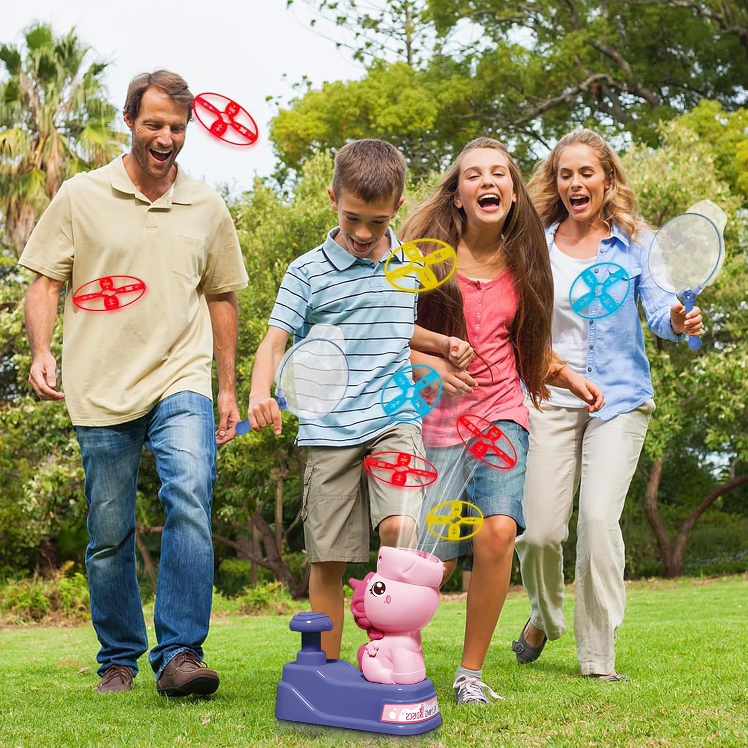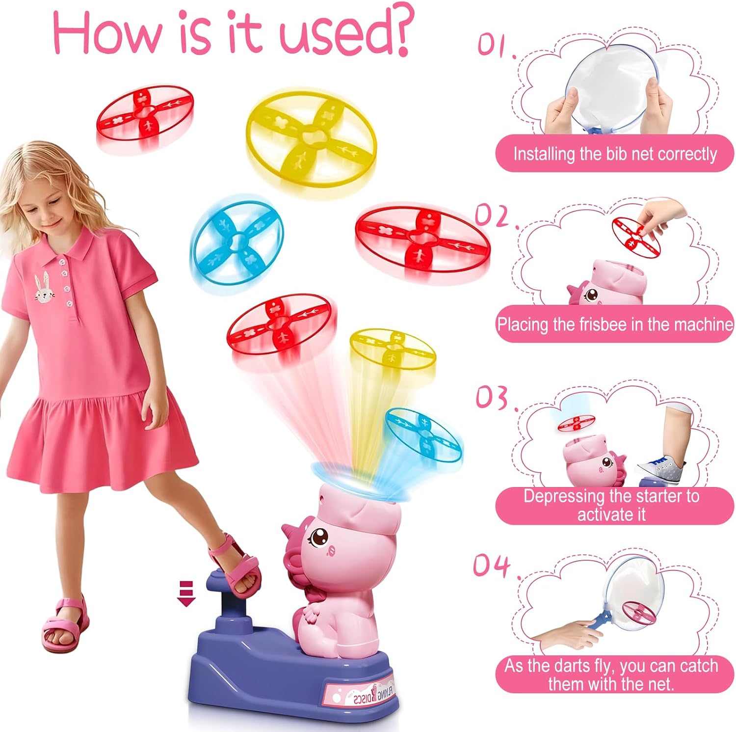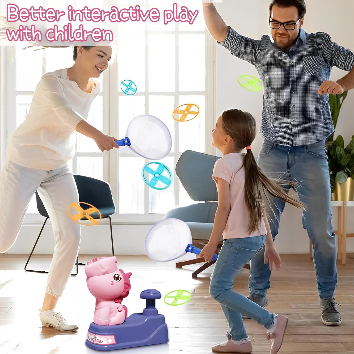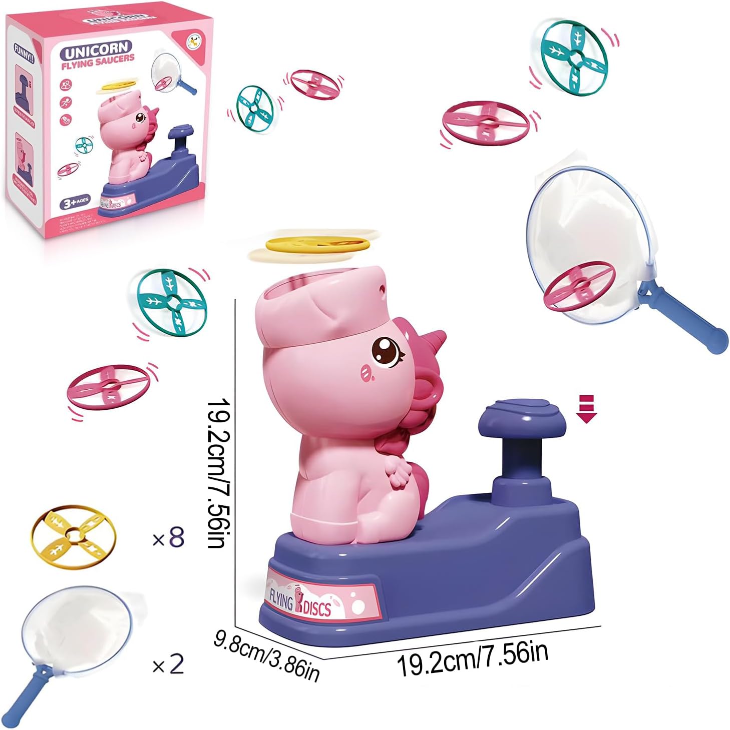 【Materiale sicuro】Progettato specificamente per i bambini di 3 anni +, realizzato con materiali sicuri e rispettosi dell'ambiente, senza odori, senza spigoli e angoli taglienti, il bambino può stare tranquillo a giocare, i genitori si sentono più a loro agio, per creare un ambiente di gioco sano per i bambini. 【Gioco diversificato】 Dotato di 8 dischi volanti e 2 reti di cattura, è possibile sperimentare la gioia di lanciare i dischi volanti e catturarli in modo divertente. I bambini possono essere lanciati da soli per giocare, ma anche con piccoli partner per catturare la gara, esercitare la reazione e la coordinazione occhio-mano, giocare ricco monotono. 【Forma carina】Giocattoli a disco volante unicorno carino, design di lancio a pressione è super divertente! Non c'è bisogno di operazioni complesse, premere delicatamente il piattino può essere ruotato in aria, aprire il viaggio di volo di fantasia, è una buona scelta per i bambini a giocare, l'interazione genitore-figlio. 【Conservazione portatile】 La dimensione complessiva è compatta, non occupa spazio, può essere facilmente conservata dopo il gioco. Sia a casa, che nel prato all'aperto o in viaggio, è possibile avviare il divertente gioco del disco volante in qualsiasi momento. 【Interazione genitore-figlio】Può efficacemente avvicinare genitori e figli, genitori e figli insieme per lanciare, catturare i dischi volanti, nelle risate per migliorare gli scambi emotivi, ma anche stimolare l'immaginazione dei bambini, in modo che il tempo con più significativo.