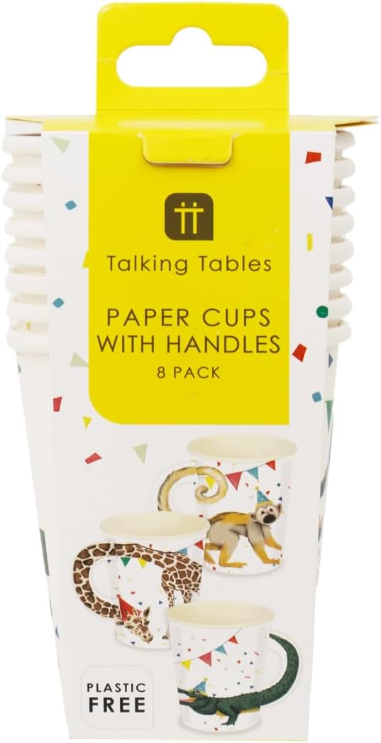 Talking Tables Bicchieri di carta usa e getta ecologici, 250 ml, celebrazioni, feste per bambini, feste nella giungla, compleanno, safari con animali, Madagascar, confezione da 8 Dimensioni: ogni tazza contiene 250 ml. 8 tazze in ogni confezione, con 3 diversi disegni; 3 giraffe, 3 coccodrilli e 2 scimmie, quindi non c'è bisogno di preoccuparsi di esaurirsi - la festa continua a ruggire! Queste tazze hanno anche un comodo spazio per scrivere i nomi delle persone, in modo che nessuno perderà di nuovo la bevanda. Adatto solo per bevande fredde. Occasione: scatena il lato selvaggio del tuo evento, che tu stia organizzando una festa di compleanno per bambini, un baby shower o una festa a tema animale, i disegni vivaci e colorati affascineranno i partecipanti alle feste di tutte le età. Esplora la savana con affascinanti illustrazioni di giraffe, scimmie e coccodrilli. Queste tazze per animali sono state abilmente progettate con le code di ogni adorabile animale safari che raddoppiano come manici, l'aggiunta perfetta al tuo tavolo da festa safari. Scelta ecologica: queste tazze sono realizzate in carta di provenienza sostenibile, fornendo un'alternativa ecologica alle tradizionali opzioni di plastica o schiuma. Non c'è bisogno di preoccuparsi della pulizia post-festa, basta smaltire questi bicchieri di carta nel riciclaggio della casa. Mescolare e abbinare con altri prodotti Party Safari per creare una festa selvaggiamente deliziosa. Dai piatti ai tovaglioli, completa la tua configurazione a tema safari senza sforzo. Qualità: i nostri prodotti sono realizzati secondo i più alti standard di qualità e sono venduti in molti negozi di alta qualità nel Regno Unito e a livello internazionale.