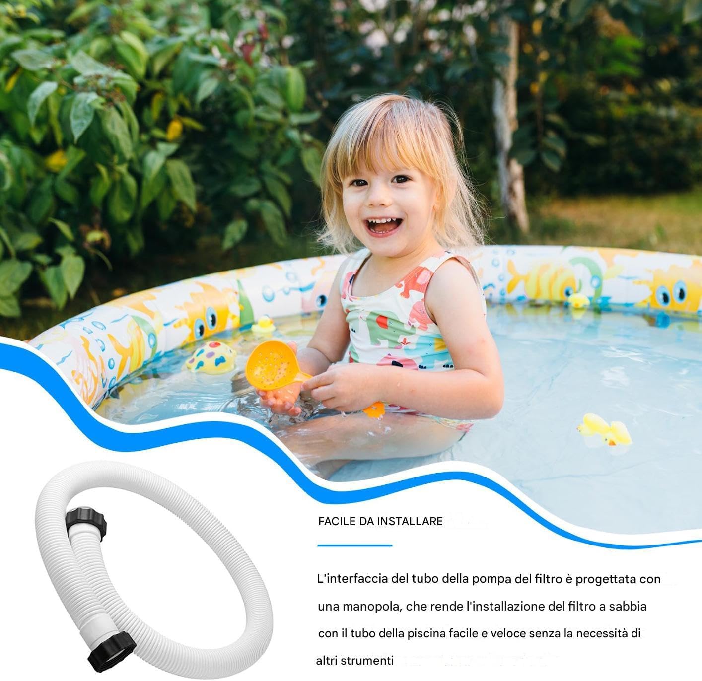 Lunghezza ottimale]: collegare saldamente il tubo della piscina bianca da 1,5 pollici alle piscine di terra con una lunghezza di 59 pollici. Impostare senza sforzo e mantenere lo sbocco d'acqua. Quantità adeguate e dimensioni adeguate per soddisfare le esigenze di uso quotidiano Materiale solido]: fabbricato con materiali PE ed EVA, garantendo la durata e la resistenza per resistere alla rottura o alla deformazione nel senza compromettere le proprietà leggere Adattamento adattabile:] progettato per pompe con una capacità di 1500 Gph e più, questo tubo di sostituzione di connessione da 1,5 pollici garantisce una circolazione 'acqua ottimale per pompe per filtri, sistemi di acqua salata e filtri di sabbia Facile da installare:] con un design a manopola intuitivo, regolare senza sforzo lo sbocco d'acqua mentre si collega il tubo alla pompa del filtro per prestazioni convenienti e durature Uso ampio]: conservare facilmente il tubo quando non in uso, grazie al suo design compatto, mantenendo in ordine lo spazio esterno e organizzato. Progettato per resistere all'uso a lungo termine