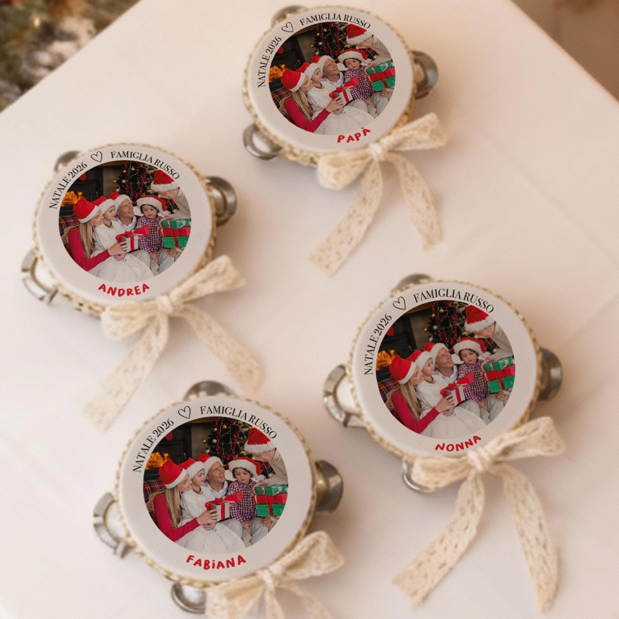 DESIGN ELEGANTE: Tamburello decorativo in legno con scritte personalizzate in stile calligrafico italiano Quantità: Set da 10 pezzi DETTAGLI COSTRUTTIVI: Realizzato con sonagli metallici di alta qualità e struttura in legno resistente di 10 cm di diametro FUNZIONALITÀ: Strumento musicale perfettamente funzionante che produce un suono festoso ideale per celebrazioni matrimoniali CONFEZIONE: Ogni tamburello viene consegnato pronto per l'uso con il nome personalizzato già applicato