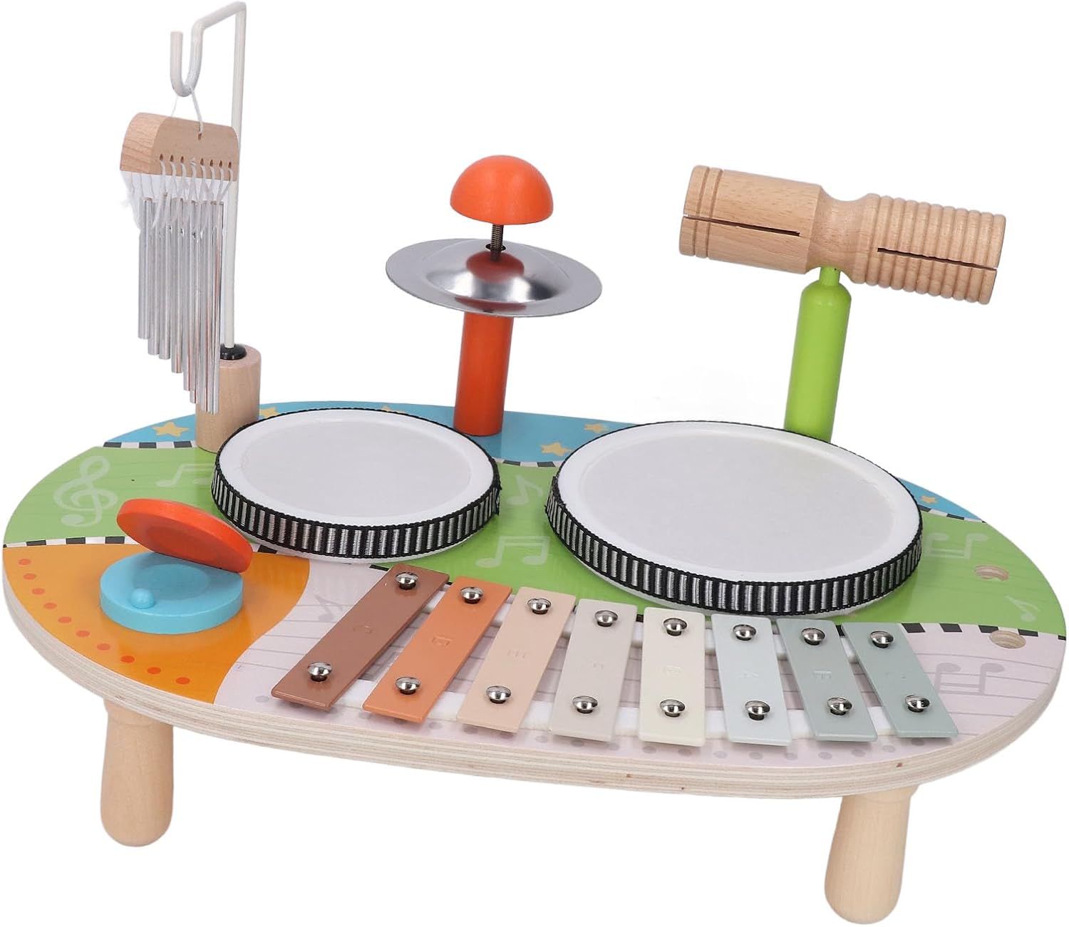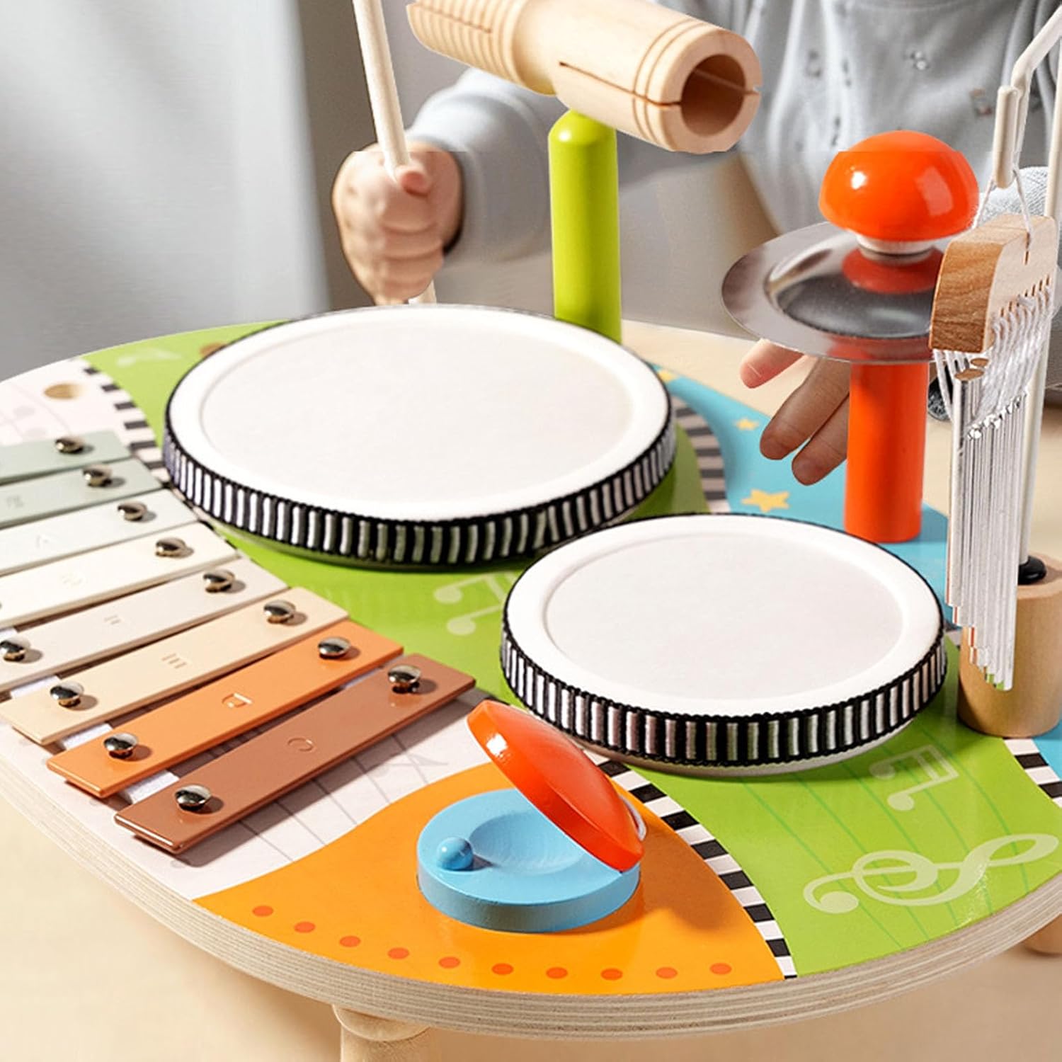 [APPRENDIMENTO OLISTICO] Scatena l'interesse per la musica e l'apprendimento con tamburi, campanelli eolici e una varietà di strumenti a percussione. [Sviluppa il senso musicale] Migliora la coordinazione, la percezione del ritmo e la funzione cognitiva generale attraverso l'esposizione precoce alla musica. [INTRATTENIMENTO EDUCATIVO] Aumenta le capacità cognitive, l'interesse e la pazienza quando impari la musica con puzzle coinvolgenti. [SUONO PERSONALIZZATO] Il suono chiaro e il volume regolabile soddisfano le esigenze di diverse fasce d'età e offrono ai bambini opzioni per personalizzare la loro esperienza musicale. [SICURO E AFFIDABILE] I materiali garantiscono sicurezza e durata e soddisfano gli standard di sicurezza dei giocattoli per un gioco senza problemi.