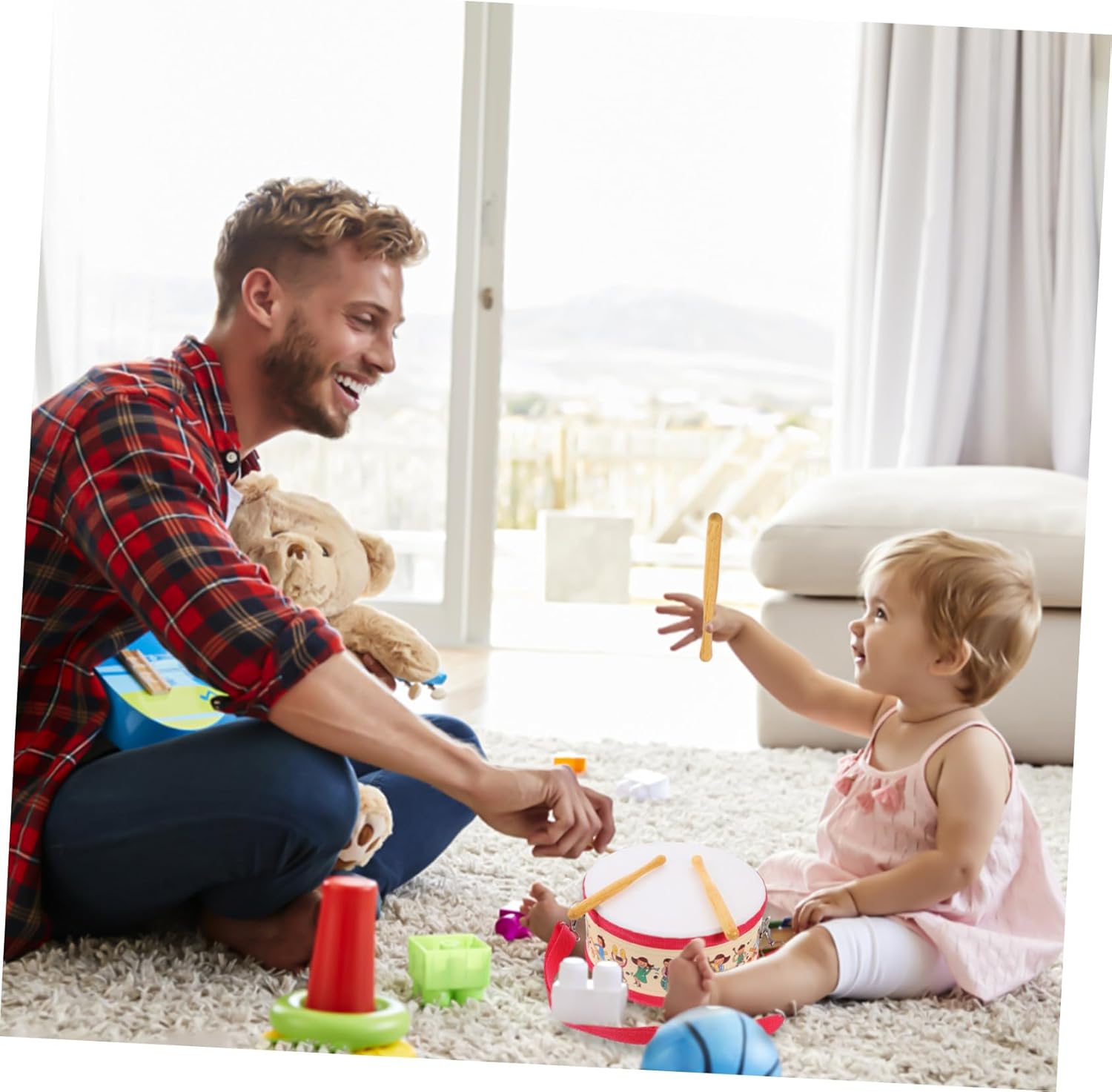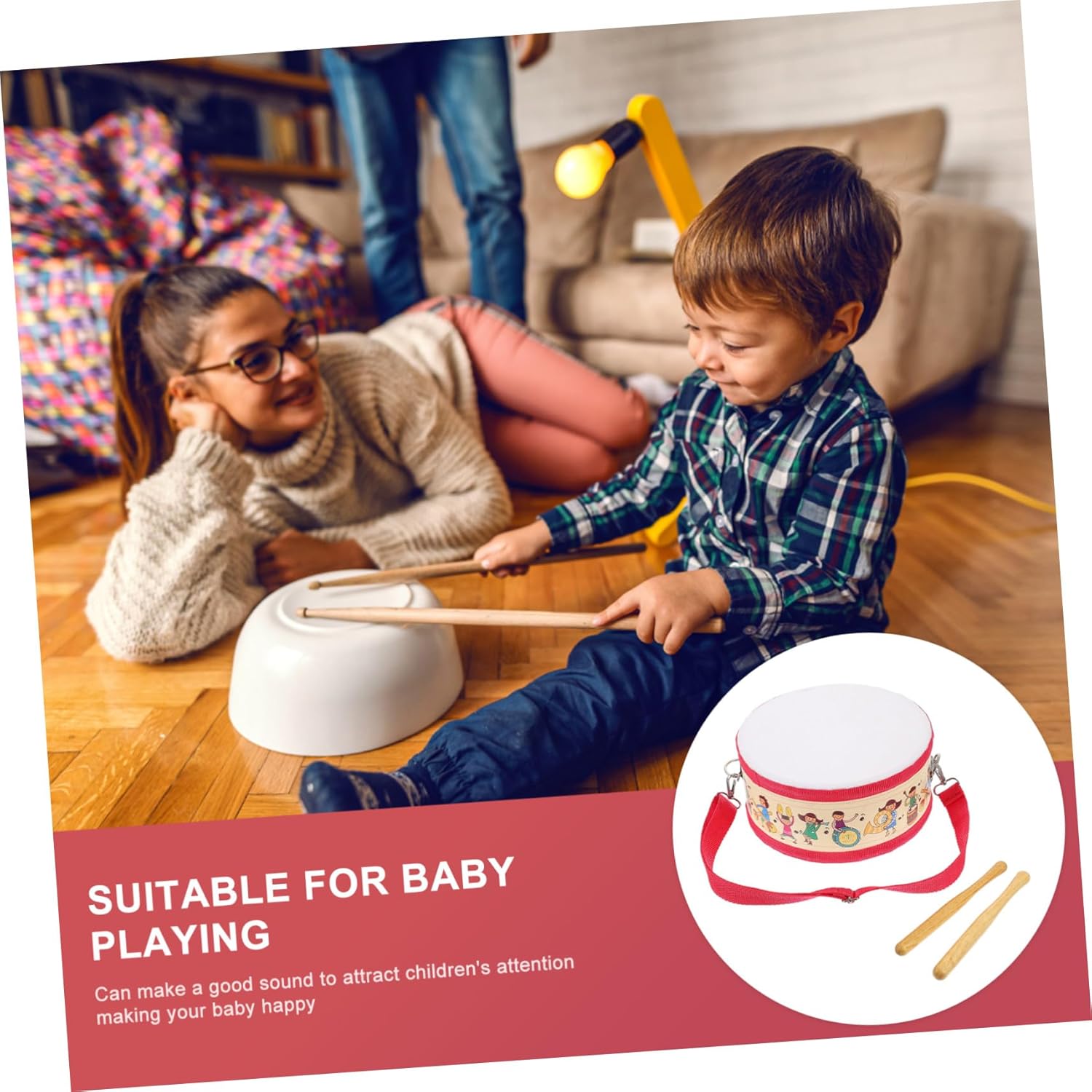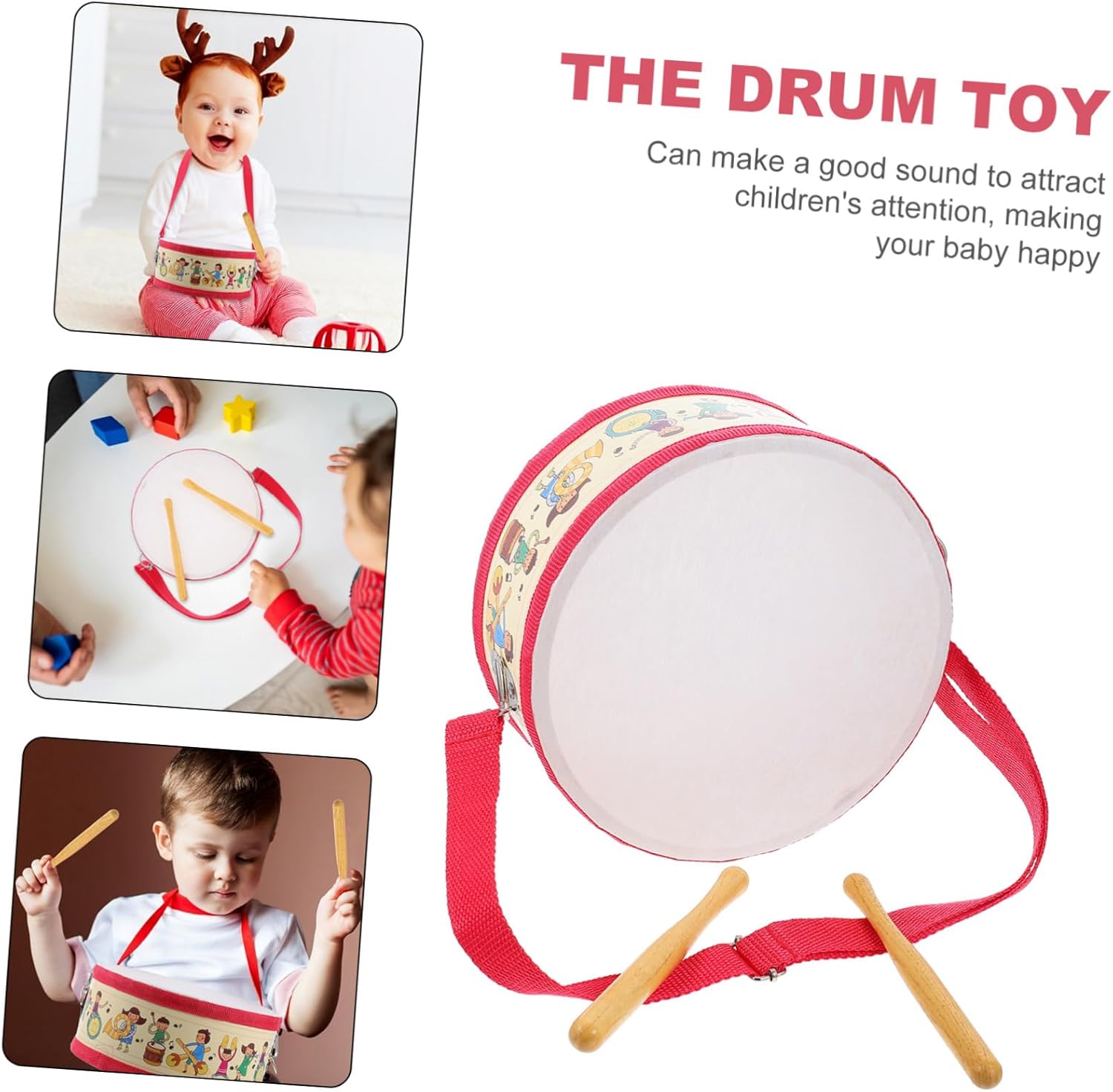 Giocattolo musicale con tamburo a mano: dopo un buon processo, la superficie è liscia e sicura, giocattolo musicale per strumenti per bambini: colore brillante e design semplice, molto bello e speciale, giocattolo a tamburo per strumento musicale giocattolo: è dimostrato che contribuisce notevolmente all'abilità pratica, alla concentrazione e all'intelligenza dei bambini, tamburo a percussione manuale tamburo a mano: colpire il tamburo a mano, produrre un suono puro ed esercitare la capacità di presa, strumenti per bambini Strumento musicale toccante: è costituito da piccoli strumenti musicali che possono essere utilizzati a lungo