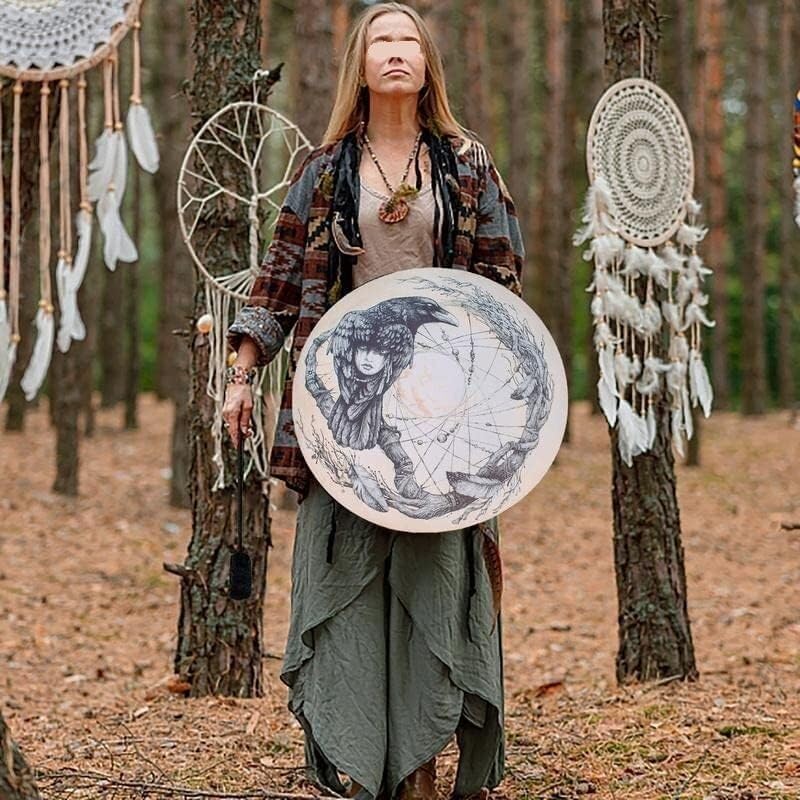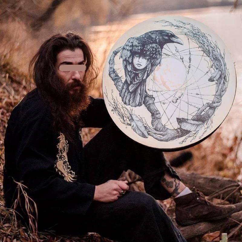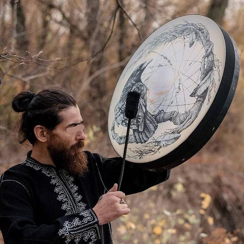 Leggero e portatile: il tamburo sciamano è compatto e facile da riporre, senza occupare molto spazio. Gli strumenti a percussione sono leggeri e portatili, quindi puoi portarli con te ovunque tu vada. Materiale affidabile: lo strumento a percussione è realizzato in legno e pelle di buona qualità, resistenti e resistenti al danneggiamento, e può essere utilizzato a lungo. Si consiglia l'uso di tamburi sciamanici. ECCELLENTE QUALITÀ DEL SUONO:: I tamburi Shaman hanno un'ottima proiezione e bassi potenti. Sono dotati di manici in corda e bacchette, quindi puoi suonarli praticamente in qualsiasi condizione atmosferica. FACILE DA SUONARE: Questo è lo strumento a percussione ideale for sviluppare il ritmo e le capacità musicali. La pelle del tamburo ha una consistenza delicata e può produrre un suono piacevole. Crea suoni profondi e risonanti che favoriscono il rilassamento e la consapevolezza durante le sessioni.