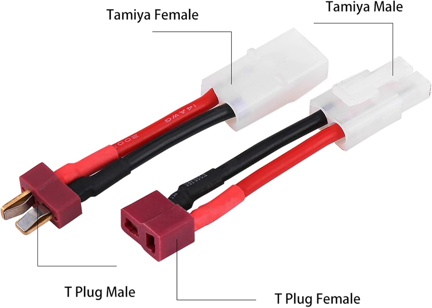 Isolamento eccezionale: presenta una guaina in silicone per un isolamento elettrico superiore e una maggiore durata. Massima comodità: viene fornito in un set da 2 pezzi con connettori femmina Tamiya di grandi dimensioni e connettori maschio Deans, pronti per una varietà di usi e la maggior parte delle configurazioni di ricarica. Materiali di prima qualità: progettati con cavi 14 AWG lunghi 100 mm, che garantiscono robustezza, resistenza agli agenti atmosferici e utilità di lunga durata. Nota per l'utente: include un connettore maschio e uno femmina per soddisfare le diverse esigenze. Ricorda di abbinare il rosso al rosso e il nero al nero, il positivo al positivo e il negativo al negativo. Ampio utilizzo: progettato specificamente per il collegamento delle batterie, questo set di cavi da femmina a maschio con connettore a T è estremamente versatile.