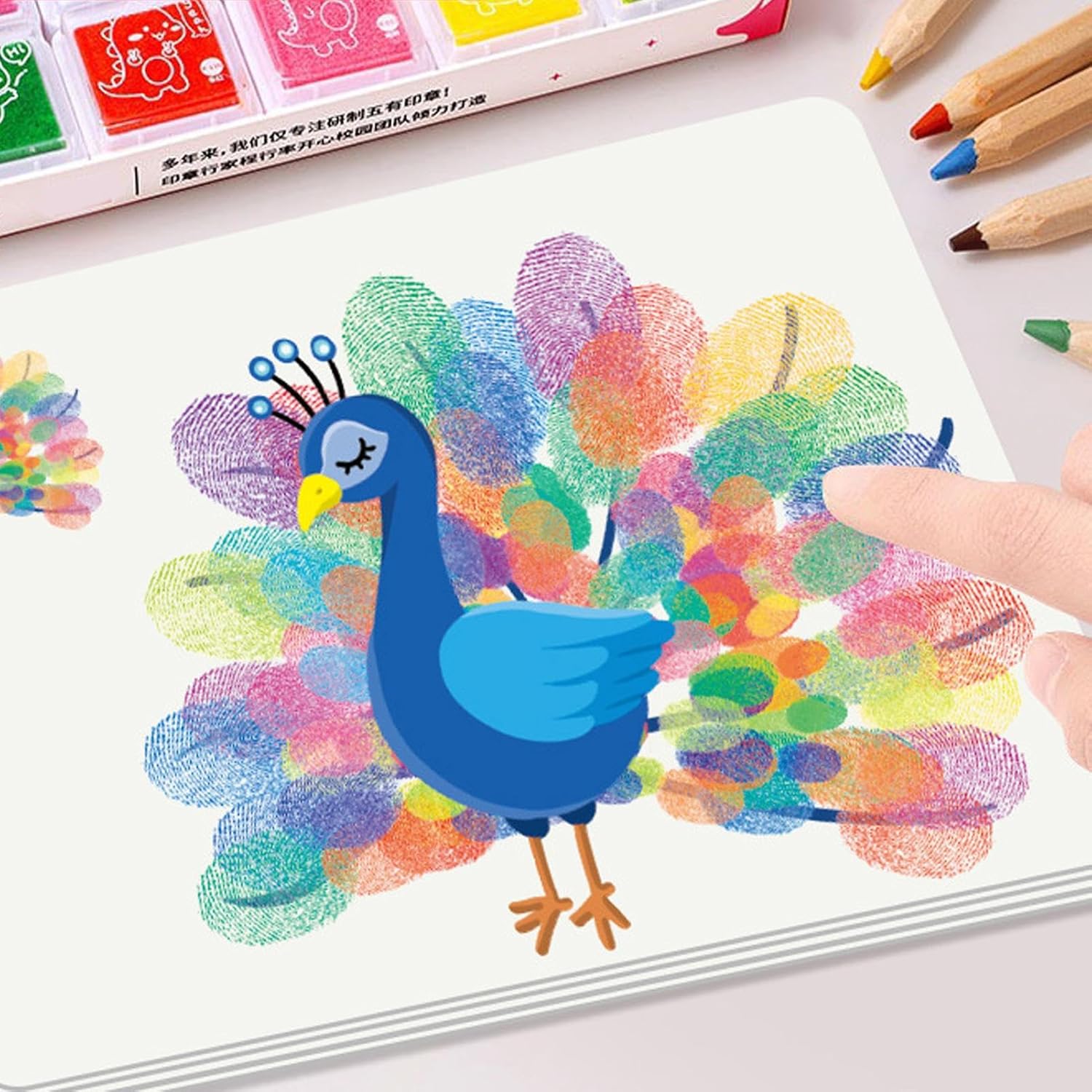 Divertente kit per pittura con le dita: progettato con carte da disegno per bambini e vivaci cuscinetti per timbri multicolore, promuove l'uso di forniture artistiche creative per supportare lo sviluppo dell'immaginazione durante coinvolgenti allenamenti di pittura con le dita dei bambini a casa o a scuola Formula delicata per la pelle: realizzato con materiali sicuri per i bambini, questo kit garantisce una pittura sicura con le dita con vernici approvate dai genitori, delicate sulla pelle e realizzate come forniture artistiche ecologiche Divertimento artistico senza assistenza: con un'attenzione alla creazione artistica singola, questo set per principianti offre un'attività di pittura semplice ma coinvolgente progettata per costruire fiducia e incoraggiare il gioco fantasioso senza richiedere supporto o guida esterni Attrazione diffusa: un must per forniture artigianali in classe e attività per feste, questo kit artistico multiuso supporta progetti artistici a casa e fornisce materiali per progetti fatti a mano per diversi sforzi artistici Solida durata: questo kit include un vivace set di vernici con colori resistenti allo sbiadimento, carta artistica resistente e carte da disegno riutilizzabili progettate per preservare la vivacità dell'opera d'arte e prolungarne la durata attraverso innumerevoli usi