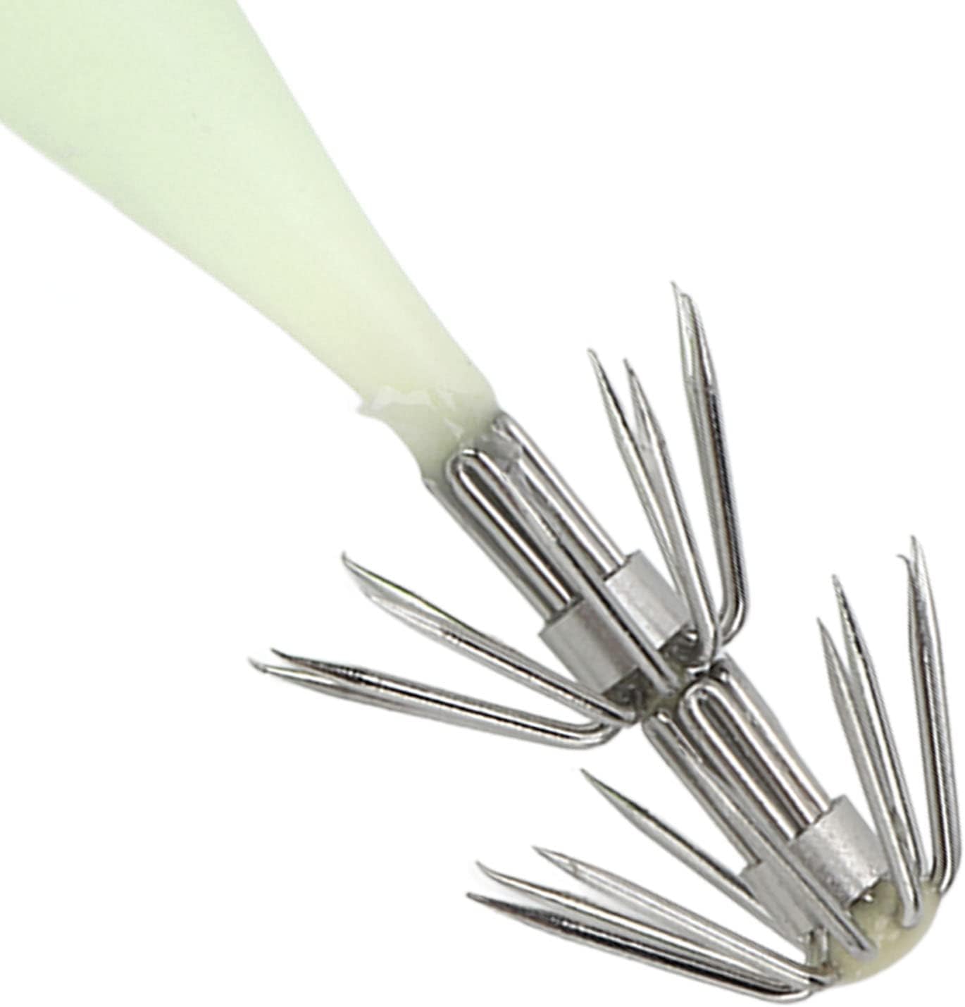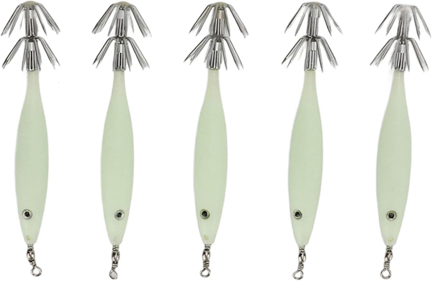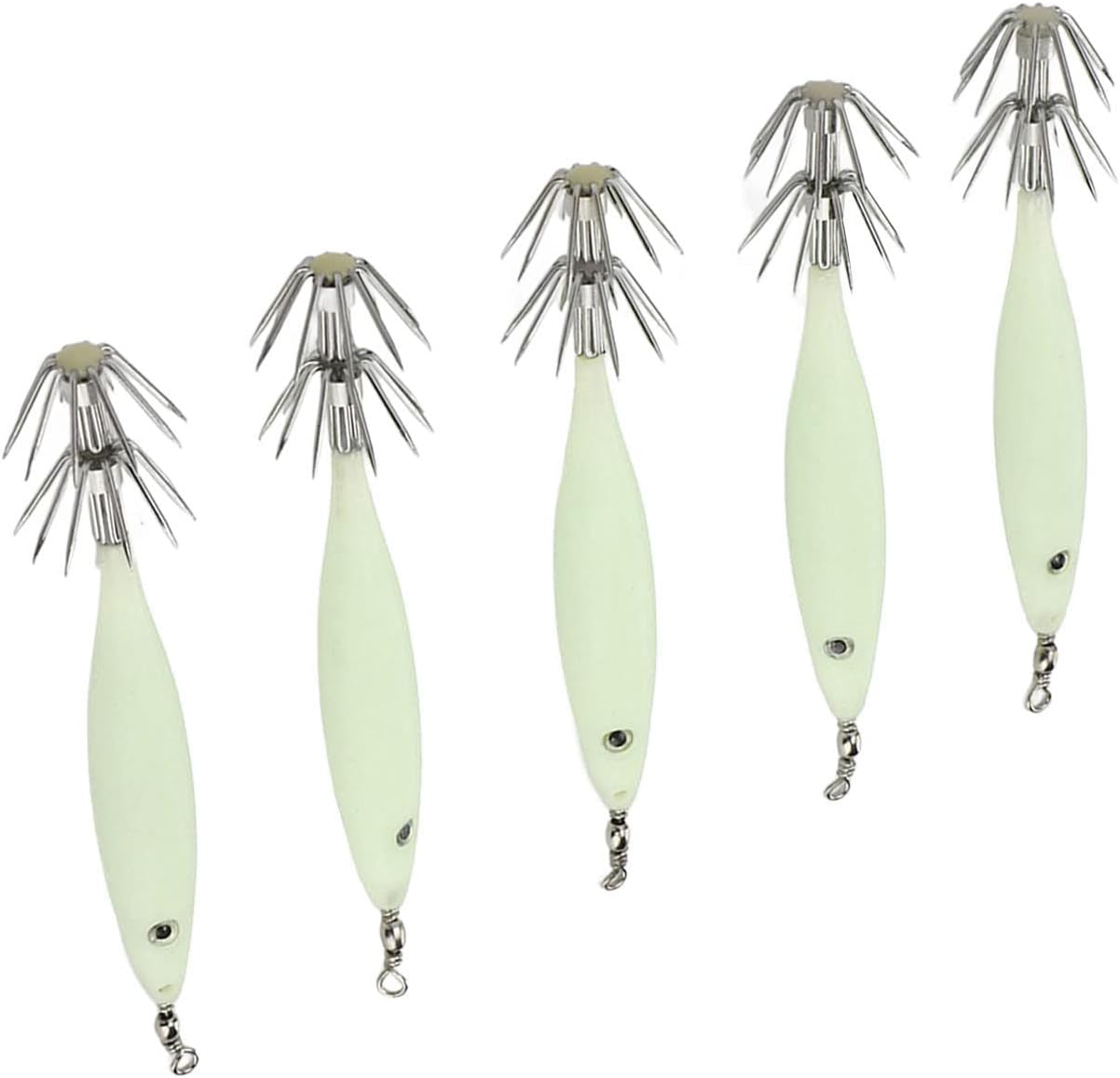 FORMA VIBRANTE: l'aspetto aerodinamico può ridurre efficacemente la resistenza al vento e l'aspetto simulato può attirare i pesci sull'amo. Amo da pesca conciso: mini esca con gancio in acciaio al carbonio, conciso e resistente, non sbiadisce né arrugginisce, migliora efficacemente il tasso di successo della pesca e impedisce la fuga dei pesci. FUNZIONE LUCE: lo speciale corpo dell'esca luminoso utilizzato per la pesca ha una buona visibilità. Dopo aver assorbito la luce, l'amo del calamaro può brillare al buio per attirare i pesci. LEGGERO E PORTATILE: il kit contiene 5 esche artificiali facili da usare e che non richiedono alcuna manipolazione particolare, rendendole facili da trasportare e adatte agli appassionati di pesca. OCCASIONE APPLICABILE: questa esca per calamari è ideale per la pesca in acqua salata e d'acqua dolce, può catturare pesci manica, calamari, calamari e calamari.