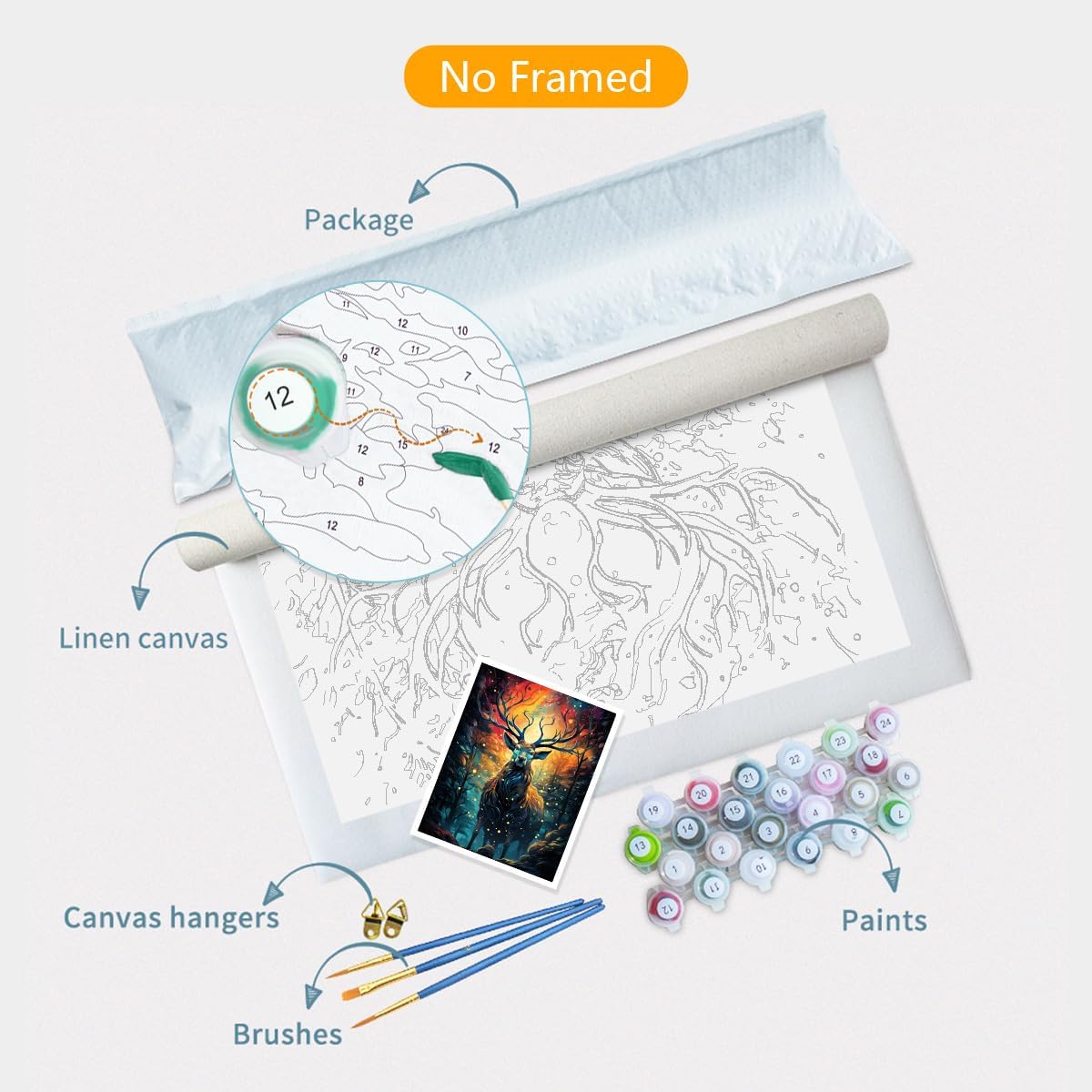 Come dipingere per numero? 1. Puoi decidere il turno di disegno secondo il tuo favore personale o a turno dei numeri. 2. Per la vernice bianca e altre parti di vernice di colore chiaro, le figure lasciate sulla tela possono essere viste, è possibile utilizzare due volte la vernice e cercare di coprire con la vernice spessa. 3. Utilizzare direttamente la vernice e non aggiungere acqua. 4. Basta abbinare il numero di colore e la figura sulla tela per completare il colore. 5. Se non fai attenzione a riempire un colore sbagliato, puoi aspettare che la vernice si asciughi e quindi coprire la parte sbagliata con il colore corretto. 6. Lavare il pennello in modo pulito quando si passa a un altro colore. 7. Per la parte più grande, è possibile utilizzare il pennello più grande per dipingere, e per la parte piccola, è possibile utilizzare il pennello più piccolo per dipingere. 8. Lavare il pennello in modo pulito ogni volta che si finisce di dipingere per il prossimo utilizzo. 9. Se vi capita di applicare la vernice sui vestiti, lavateli immediatamente. 10. Si prega di chiudere bene il coperchio della vernice quando non lo si utilizza, per evitare che il colore si asciughi. 11. Le figure sulla tela potrebbero non essere coperte completamente, spero che non ti dispiaccia. 12. La vernice che offriamo è sufficiente per un uso normale, si prega di non sprecarla in caso di carenza di vernice.