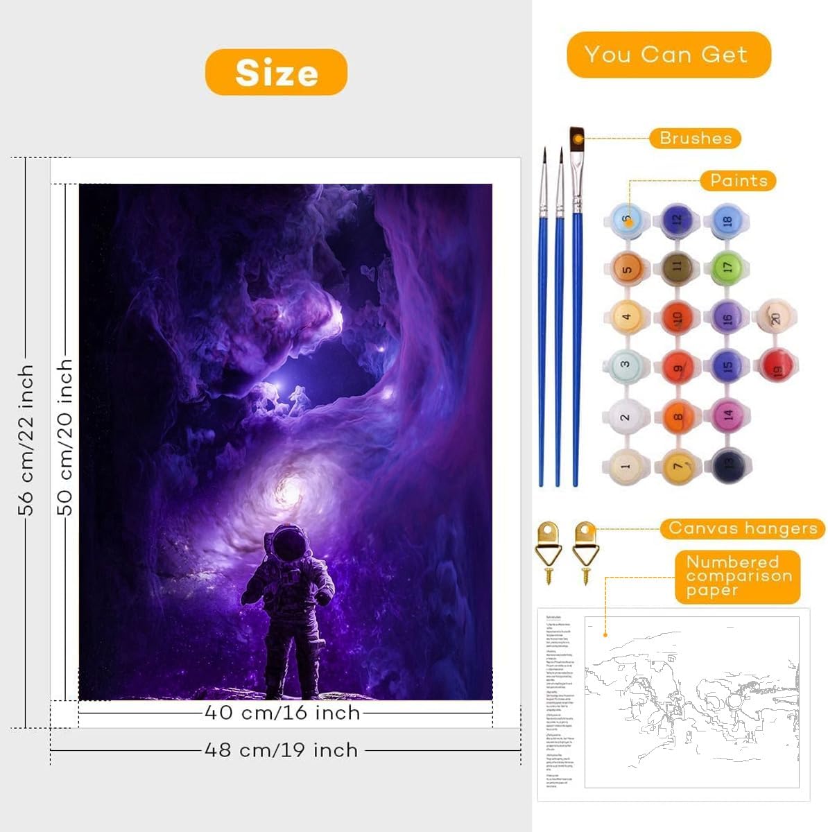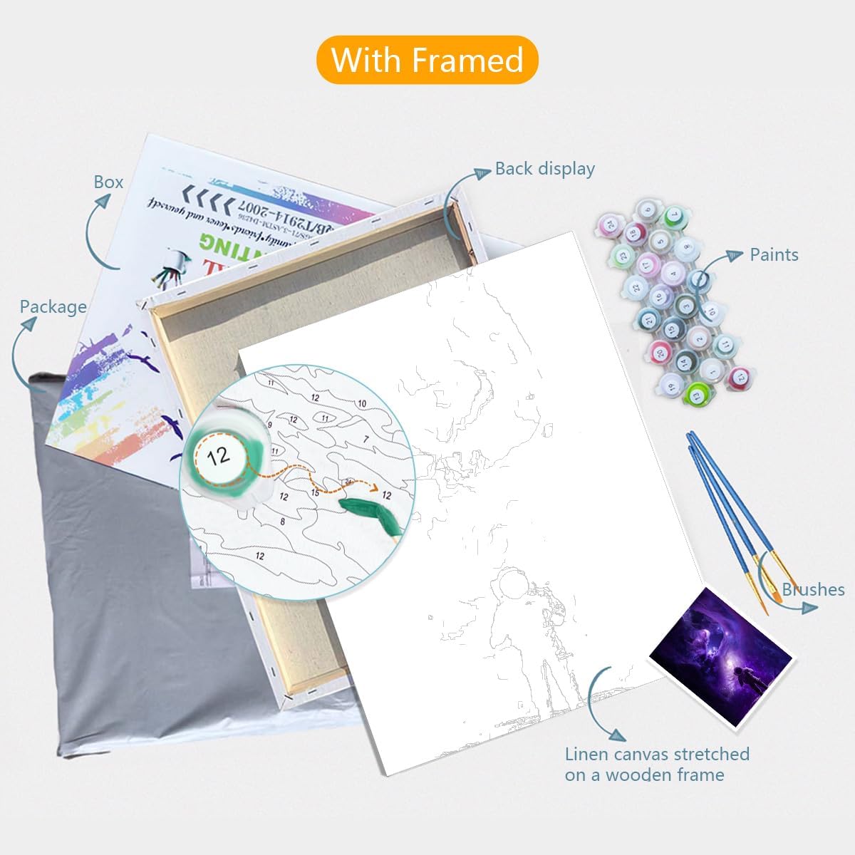 TANGFEIY Dipingere con i numeri Astronauta Lost in Space Pigmento su tela per adulti con 3 pennelli e colori acrilici, per casa, Art Déco, artigianato senza cornice (30 x 40 cm)