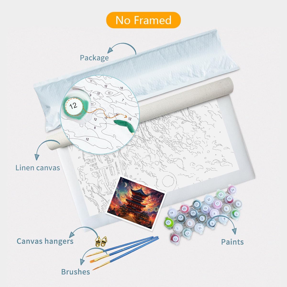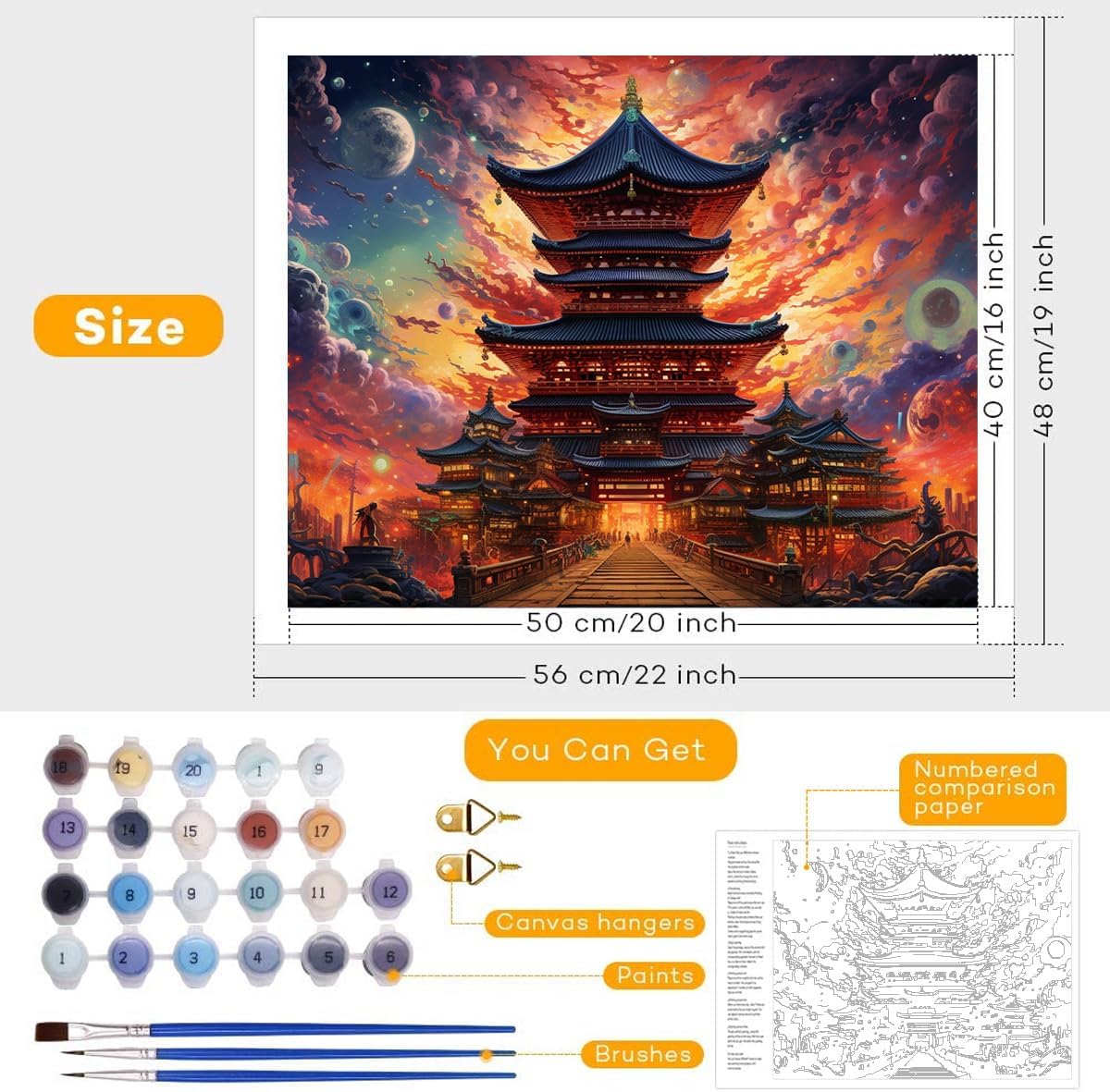 TANGFEIY Dipingere con i numeri, Tempio Sensoji, Giappone, pittura a olio, acquerello fai da te con pennelli e pigmenti acrilici, pittura con numeri, arte da parete, senza cornice (40 x 50 cm)