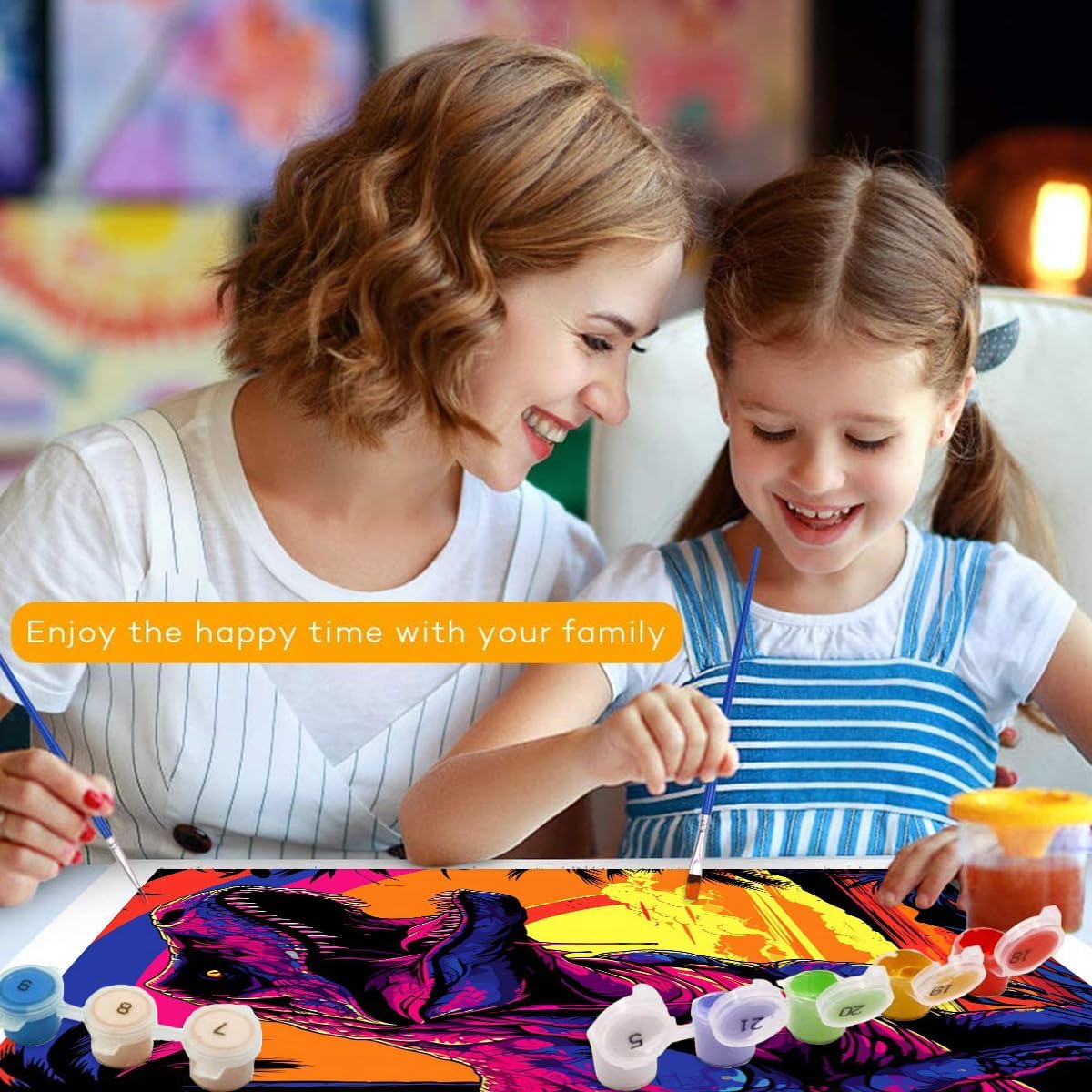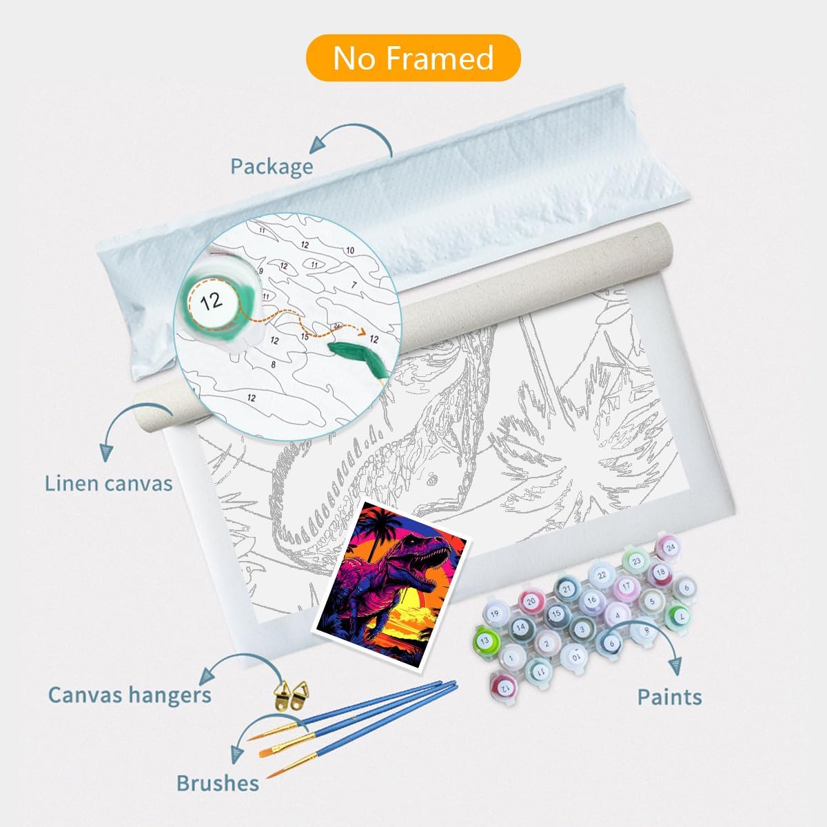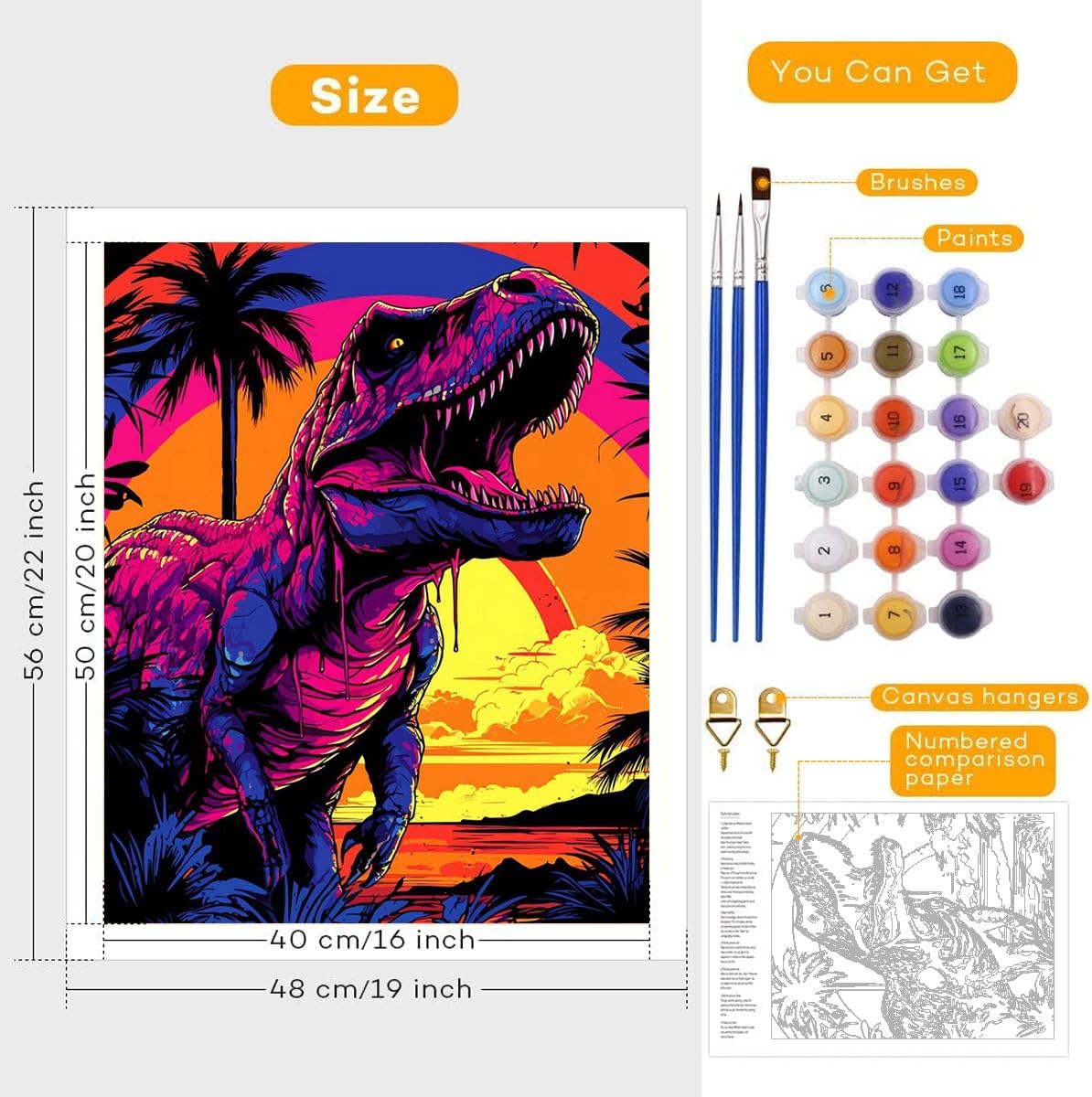 TANGFEIY Dipinto ad olio T Rex tramonto per bambini e adulti, con pennelli e pigmento acrilico su tela, per adulti, stile creativo, arte e artigianato fai da te (30 x 40 cm)