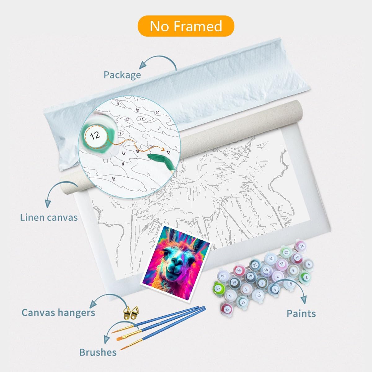 Kit fai da te per dipingere con i numeri, per adulti, cornice non inclusa. I kit di pittura per numero includono vernice acrilica, tela e un set di pennelli. Facile da iniziare, Questo è un grande progetto. certamente solo per adulti. Richiede tempo ma perfetto per rilassarsi e distogliere la mente dalle cose. Puoi usarlo per ammazzare il tempo e rilassarti dallo stress, può essere utilizzato anche per l'interazione dei genitori con i bambini. Si è rivelato davvero bello ed è qualcosa di cui sarai davvero orgoglioso, quindi ottieni molti risultati! Come uscire dalla piega I kit per dipingere con i numeri sono dotati di tela pieghevole, senza cornice, come uscire dalle pieghe prima di dipingere? 1. Stendere la tela sulla scrivania o sul tavolo. 2. Stirare la tela sul retro per appiattirla (si consiglia di coprire un panno morbido sulla tela). 3. Tela arrotolata più volte e iniziare a dipingere. Oppure appoggiala e metti qualcosa di pesante sulla tela dopo un paio di giorni, arrotola la tela più volte, fissala al cavalletto o alla cornice. Colori acrilici vivaci e ad asciugatura rapida. Il nostro fornitore fornisce vernici acriliche sane e vivaci, renderà il colore più lucido, migliorerà l'effetto visivo della pittura per mostrare capolavori finiti. Avviso: a. colori acrilici facili da asciugare, si prega di tenere a mente e coprire la scatola di vernice se non si utilizza. b. I rivestimenti multipli possono portare a vernici non sono sufficienti. Dipingi per numero e stile fai da te. Nessuna abilità professionale richiesta, goditi la pittura così facile grazie ai numeri prestampati sulla tela, riempi i numeri passo dopo passo, otterrai splendidi capolavori! Se scopri che hai usato colori sbagliati, non preoccuparti, pulisci il pennello e scegli il colore giusto per coprire la sezione. Sicuramente, si rivelerà anche molto bello se crei il proprio stile di pittura! MAI LIMITATO LA TUA IMMAGINAZIONE!