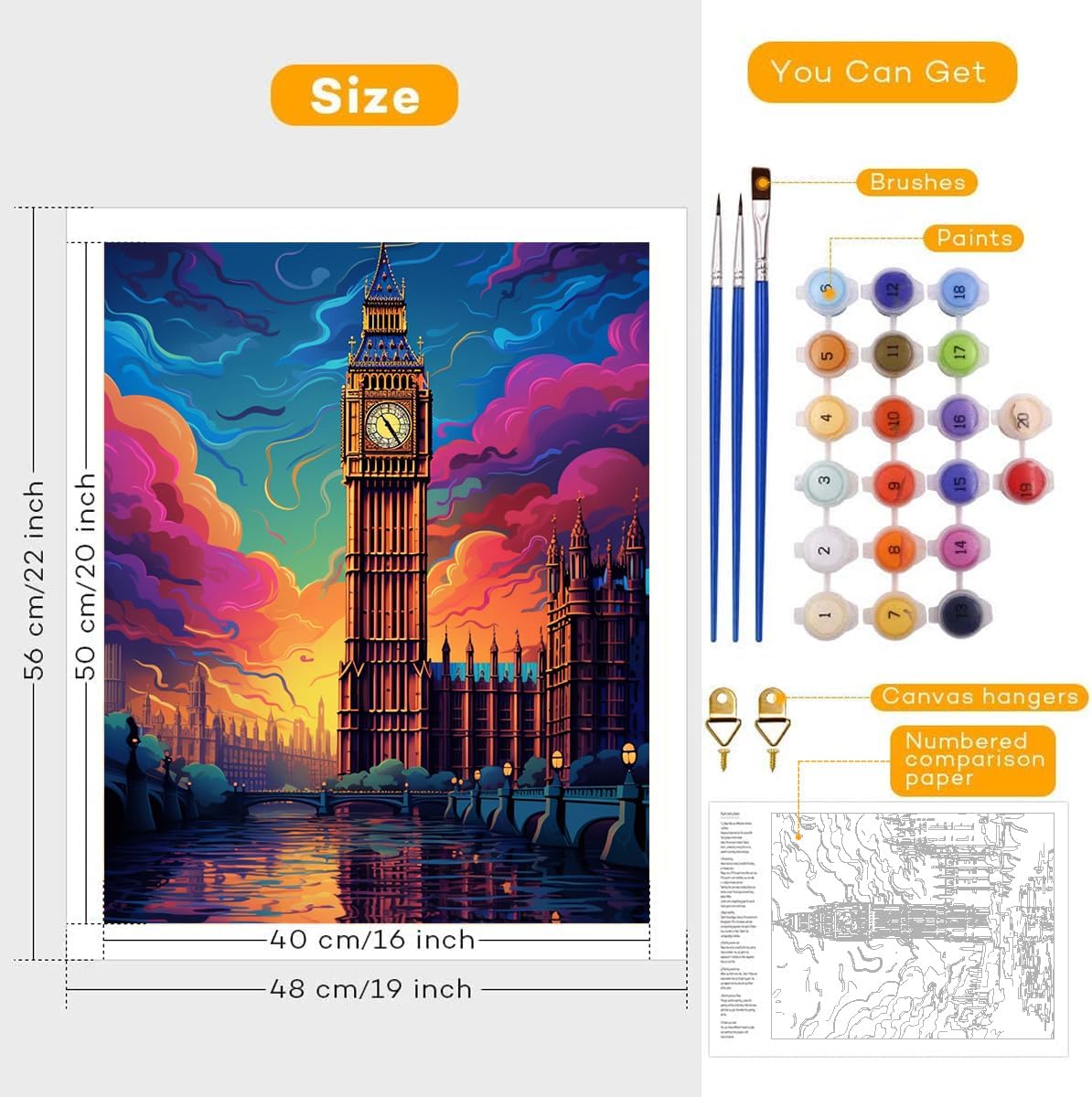 TANGFEIY Kit per pittura a olio con Big Ben britannico, per bambini e adulti, pittura digitale con numeri acrilici, con pennelli, decorazione per la casa, idea regalo, senza cornice (30 x 40 cm)