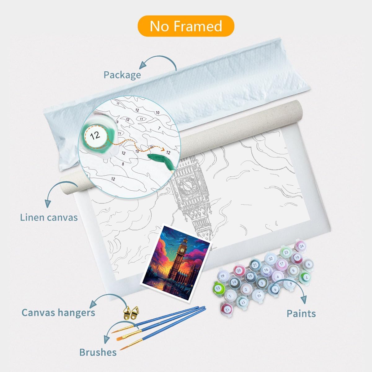 Set di pittura a olio con i numeri: include una tela 16 x 12 (senza cornice), 3 pennelli, 1 set di colori acrilici e un'immagine campione. Abbiamo preparato tutto, aspettando solo che tu dipinga la tela. Materiali sani: i nostri colori a olio con numeri sono colori acrilici, atossici e innocui, sicuri per bambini o adulti. La tela è realizzata in puro cotone, con un buon assorbimento d'acqua e traspirabilità, facile da riporre a lungo. Fondamento zero: la pittura a olio con numeri è adatta a tutti i livelli di abilità, sia che tu sia un adulto, bambino o un principiante. Non hai bisogno di alcuna abilità pittorica per riempire il colore in base al numero. Libera la tua creatività interiore e divertiti. Non c'è bisogno di mescolare pigmenti: questo dipinto a olio con numeri per adulti utilizza pigmenti acrilici sicuri, che possono essere colorati direttamente senza aggiungere acqua per mescolare. Quando si utilizza accidentalmente il colore sbagliato, basta coprirlo con il pigmento di colore corretto. Servizio post-vendita: Se avete problemi con l'opera d'arte della pittura a olio che avete ricevuto, vi preghiamo di contattarci via e-mail in tempo, risolveremo il vostro problema entro 24 ore, quindi vi preghiamo di essere certi di acquistare.