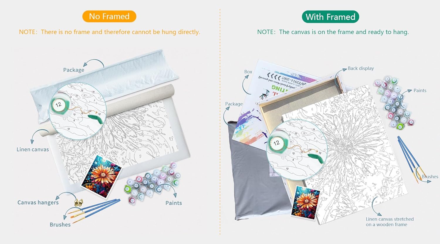 Come dipingere per numero? 1. Puoi decidere il turno di disegno secondo il tuo favore personale o a turno dei numeri. 2. Per la vernice bianca e altre parti di vernice di colore chiaro, le figure lasciate sulla tela possono essere viste, è possibile utilizzare due volte la vernice e cercare di coprire con la vernice spessa. 3. Utilizzare direttamente la vernice e non aggiungere acqua. 4. Basta abbinare il numero di colore e la figura sulla tela per completare il colore. 5. Se non fai attenzione a riempire un colore sbagliato, puoi aspettare che la vernice si asciughi e quindi coprire la parte sbagliata con il colore corretto. 6. Lavare il pennello in modo pulito quando si passa a un altro colore. 7. Per la parte più grande, è possibile utilizzare il pennello più grande per dipingere, e per la parte piccola, è possibile utilizzare il pennello più piccolo per dipingere. 8. Lavare il pennello in modo pulito ogni volta che si finisce di dipingere per il prossimo utilizzo. 9. Se vi capita di applicare la vernice sui vestiti, lavateli immediatamente. 10. Si prega di chiudere bene il coperchio della vernice quando non lo si utilizza, per evitare che il colore si asciughi. 11. Le figure sulla tela potrebbero non essere coperte completamente, spero che non ti dispiaccia. 12. La vernice che offriamo è sufficiente per un uso normale, si prega di non sprecarla in caso di carenza di vernice.