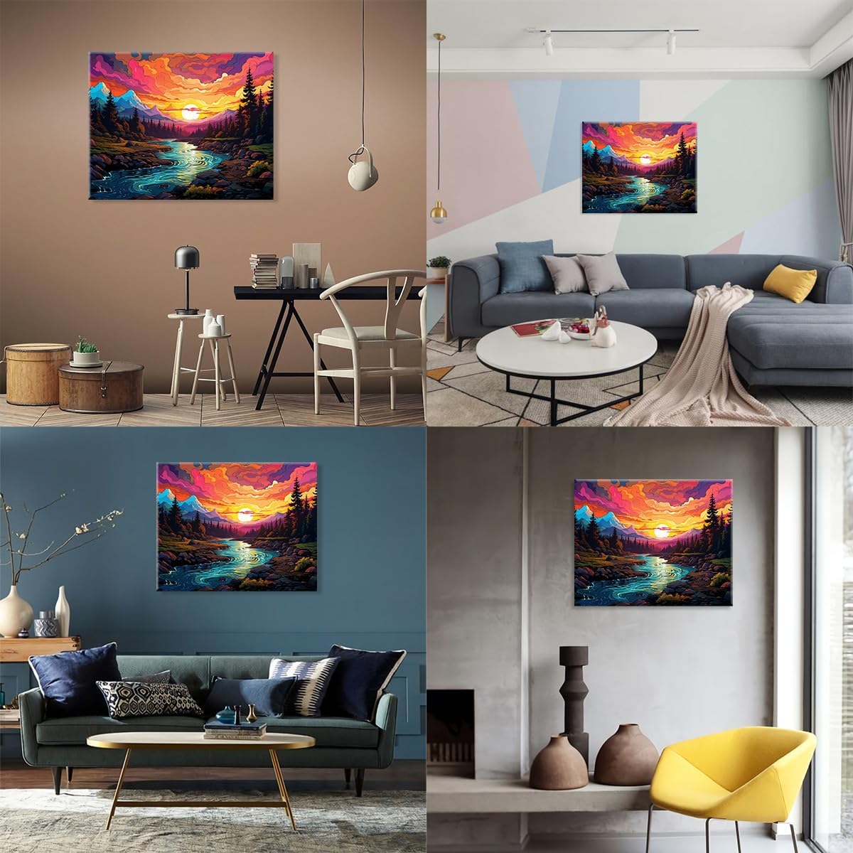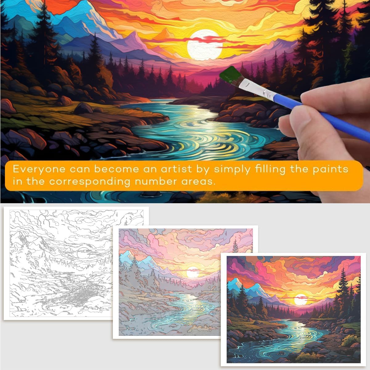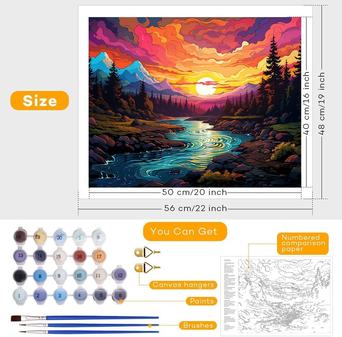 TANGFEIY Kit per pittura ad olio con i numeri, motivo: fiume sotto il tramonto, per bambini e adulti, kit per decorazione da parete per la casa, regalo per adulti e bambini, senza cornice (30 x 40 cm)