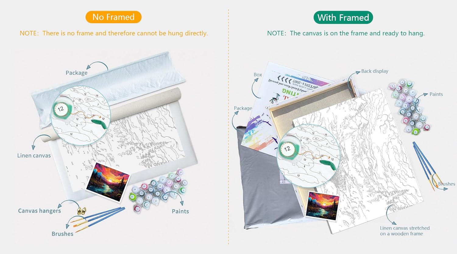 Kit fai da te per dipingere con i numeri, per adulti, cornice non inclusa. I kit di pittura per numero includono vernice acrilica, tela e un set di pennelli. Facile da iniziare, Questo è un grande progetto. certamente solo per adulti. Richiede tempo ma perfetto per rilassarsi e distogliere la mente dalle cose. Puoi usarlo per ammazzare il tempo e rilassarti dallo stress, può essere utilizzato anche per l'interazione dei genitori con i bambini. Si è rivelato davvero bello ed è qualcosa di cui sarai davvero orgoglioso, quindi ottieni molti risultati! Come uscire dalla piega I kit per dipingere con i numeri sono dotati di tela pieghevole, senza cornice, come uscire dalle pieghe prima di dipingere? 1. Stendere la tela sulla scrivania o sul tavolo. 2. Stirare la tela sul retro per appiattirla (si consiglia di coprire un panno morbido sulla tela). 3. Tela arrotolata più volte e iniziare a dipingere. Oppure appoggiala e metti qualcosa di pesante sulla tela dopo un paio di giorni, arrotola la tela più volte, fissala al cavalletto o alla cornice. Colori acrilici vivaci e ad asciugatura rapida. Il nostro fornitore fornisce vernici acriliche sane e vivaci, renderà il colore più lucido, migliorerà l'effetto visivo della pittura per mostrare capolavori finiti. Avviso: a. colori acrilici facili da asciugare, si prega di tenere a mente e coprire la scatola di vernice se non si utilizza. b. I rivestimenti multipli possono portare a vernici non sono sufficienti. Dipingi per numero e stile fai da te. Nessuna abilità professionale richiesta, goditi la pittura così facile grazie ai numeri prestampati sulla tela, riempi i numeri passo dopo passo, otterrai splendidi capolavori! Se scopri che hai usato colori sbagliati, non preoccuparti, pulisci il pennello e scegli il colore giusto per coprire la sezione. Sicuramente, si rivelerà anche molto bello se crei il proprio stile di pittura! MAI LIMITATO LA TUA IMMAGINAZIONE!