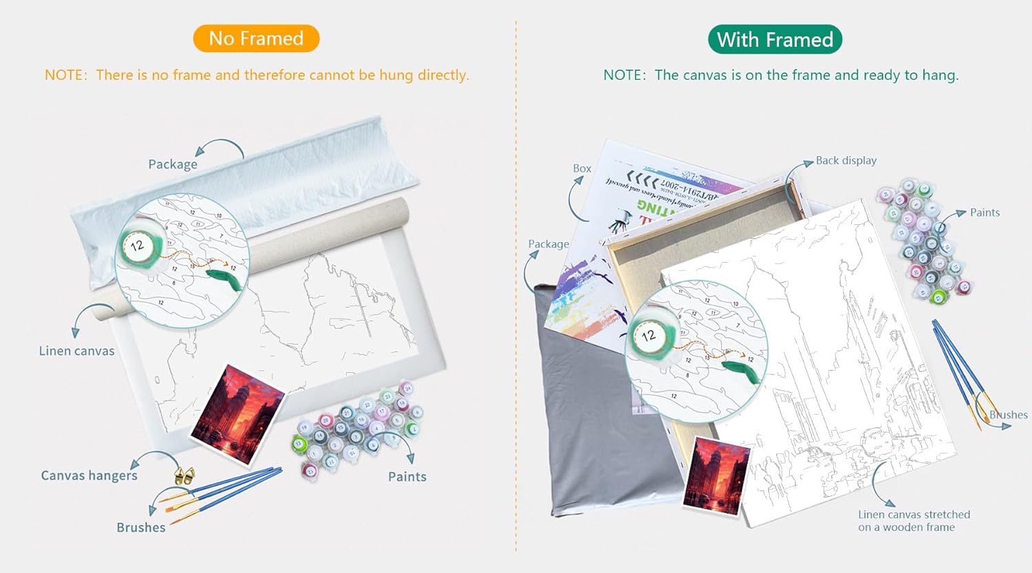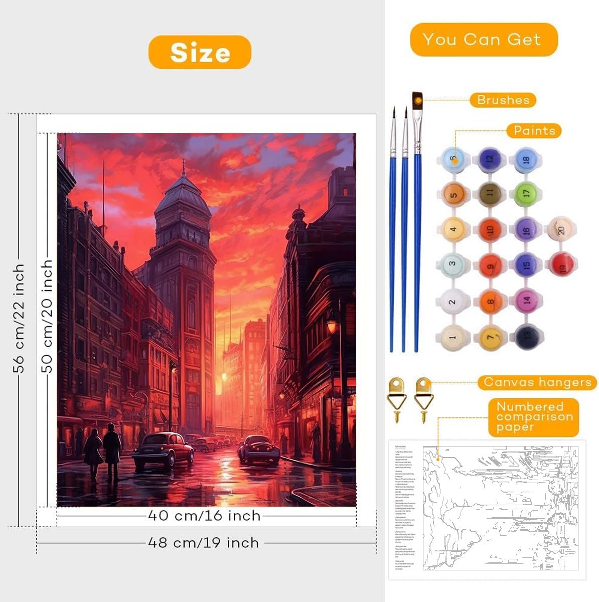 Kit fai da te per dipingere con i numeri, per adulti, cornice non inclusa. I kit di pittura per numero includono vernice acrilica, tela e un set di pennelli. Facile da iniziare, Questo è un grande progetto. certamente solo per adulti. Richiede tempo ma perfetto per rilassarsi e distogliere la mente dalle cose. Puoi usarlo per ammazzare il tempo e rilassarti dallo stress, può essere utilizzato anche per l'interazione dei genitori con i bambini. Si è rivelato davvero bello ed è qualcosa di cui sarai davvero orgoglioso, quindi ottieni molti risultati! Come uscire dalla piega I kit per dipingere con i numeri sono dotati di tela pieghevole, senza cornice, come uscire dalle pieghe prima di dipingere? 1. Stendere la tela sulla scrivania o sul tavolo. 2. Stirare la tela sul retro per appiattirla (si consiglia di coprire un panno morbido sulla tela). 3. Tela arrotolata più volte e iniziare a dipingere. Oppure appoggiala e metti qualcosa di pesante sulla tela dopo un paio di giorni, arrotola la tela più volte, fissala al cavalletto o alla cornice. Colori acrilici vivaci e ad asciugatura rapida. Il nostro fornitore fornisce vernici acriliche sane e vivaci, renderà il colore più lucido, migliorerà l'effetto visivo della pittura per mostrare capolavori finiti. Avviso: a. colori acrilici facili da asciugare, si prega di tenere a mente e coprire la scatola di vernice se non si utilizza. b. I rivestimenti multipli possono portare a vernici non sono sufficienti. Dipingi per numero e stile fai da te. Nessuna abilità professionale richiesta, goditi la pittura così facile grazie ai numeri prestampati sulla tela, riempi i numeri passo dopo passo, otterrai splendidi capolavori! Se scopri che hai usato colori sbagliati, non preoccuparti, pulisci il pennello e scegli il colore giusto per coprire la sezione. Sicuramente, si rivelerà anche molto bello se crei il proprio stile di pittura! MAI LIMITATO LA TUA IMMAGINAZIONE!