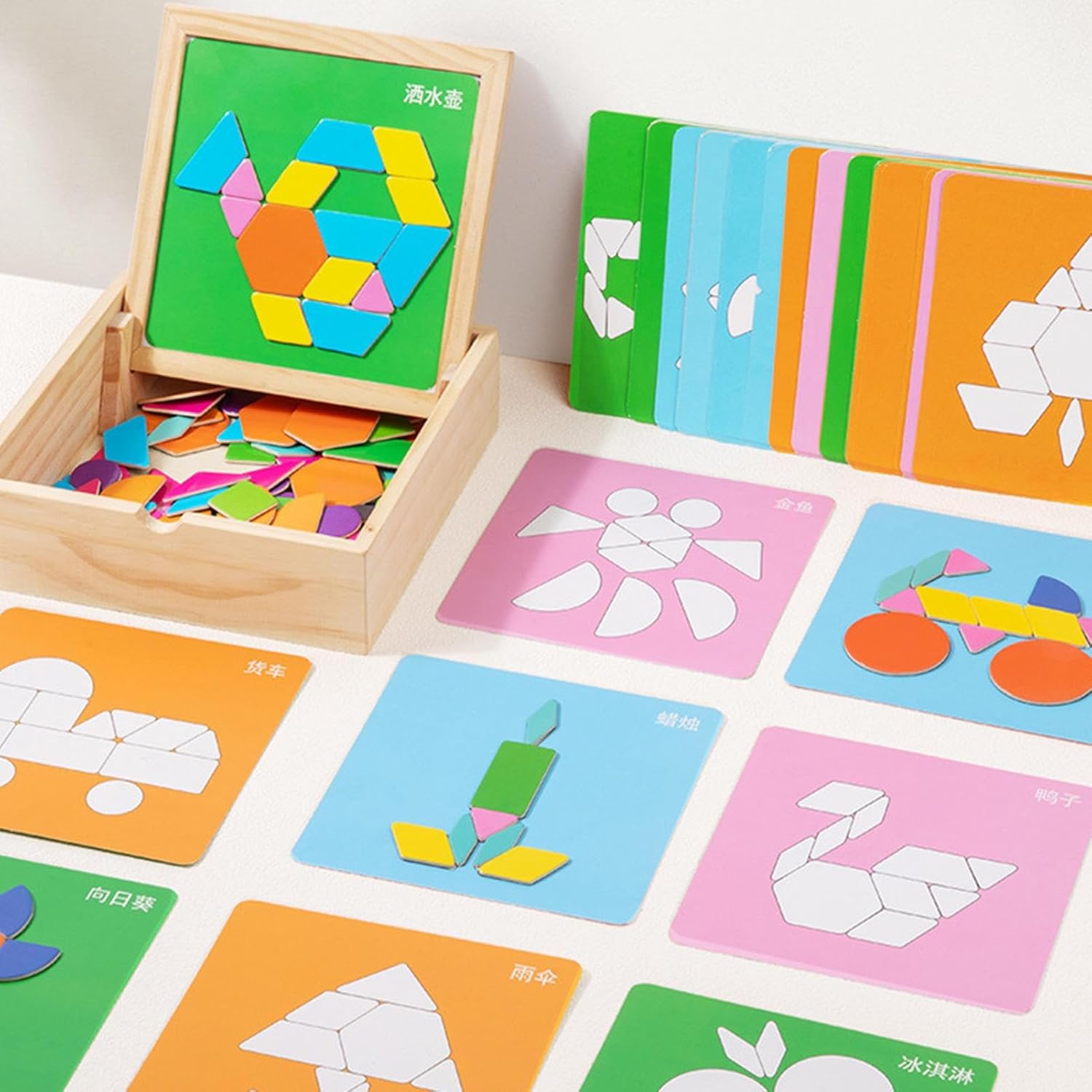 Sicurezza e stabilità: realizzato in legno di alta qualità, il puzzle magnetico Tangram offre un'esperienza di gioco sicura e stabile, ideale per lo sviluppo cognitivo. I materiali eccellenti garantiscono una lunga durata per molte ore di stimolanti lavori con la famiglia. Il regalo perfetto: questo puzzle tangram magnetico è eccellente per compleanni, vacanze e occasioni speciali, offrendo ai bambini un modo divertente per promuovere la creatività e le capacità di risoluzione dei problemi, arricchendo i momenti festivi in modo giocoso. Promuove la comprensione delle forme: i tangrams magnetici migliorano la capacità di riconoscere modelli e relazioni tra le forme, supportano lo sviluppo di processi di pensiero logico e contribuiscono a benefici cognitivi a lungo termine durante il gioco creativo e la scoperta. Abilità coordinative: il Tangram magnetico favorisce una migliore coordinazione occhio-mano e acuisce la concentrazione grazie al suo design versatile. Gli utenti possono esplorare numerose configurazioni aumentando la loro abilità in un ambiente giocoso o orientato all'apprendimento. Potenziale di gioco creativo: il magnete Tangram promuove l'esplorazione continua di nuovi modelli di gioco. Con dozzine di opzioni di costruzione personalizzabili, risveglia l'immaginazione e l'amore per le sfide creative nei giochi di famiglia o nei progetti scolastici.