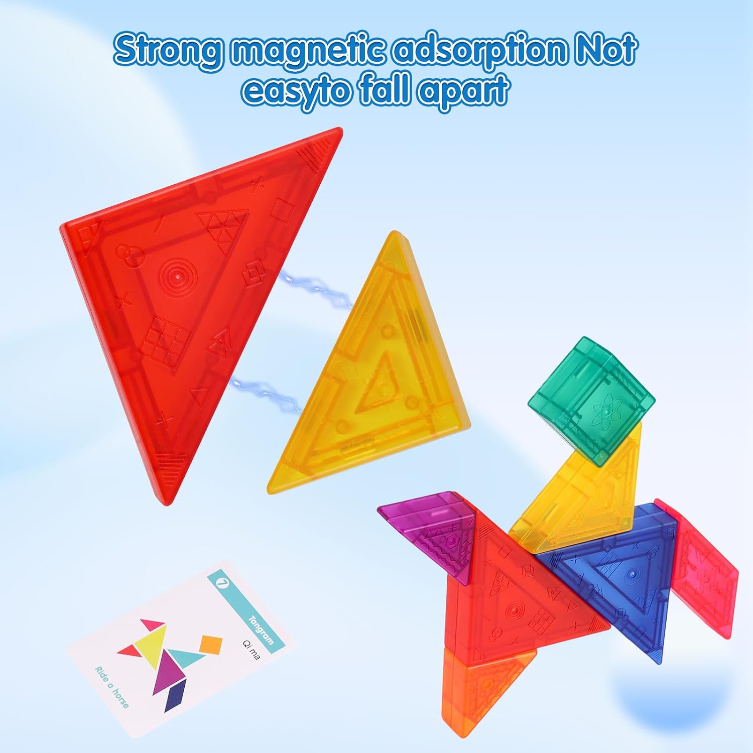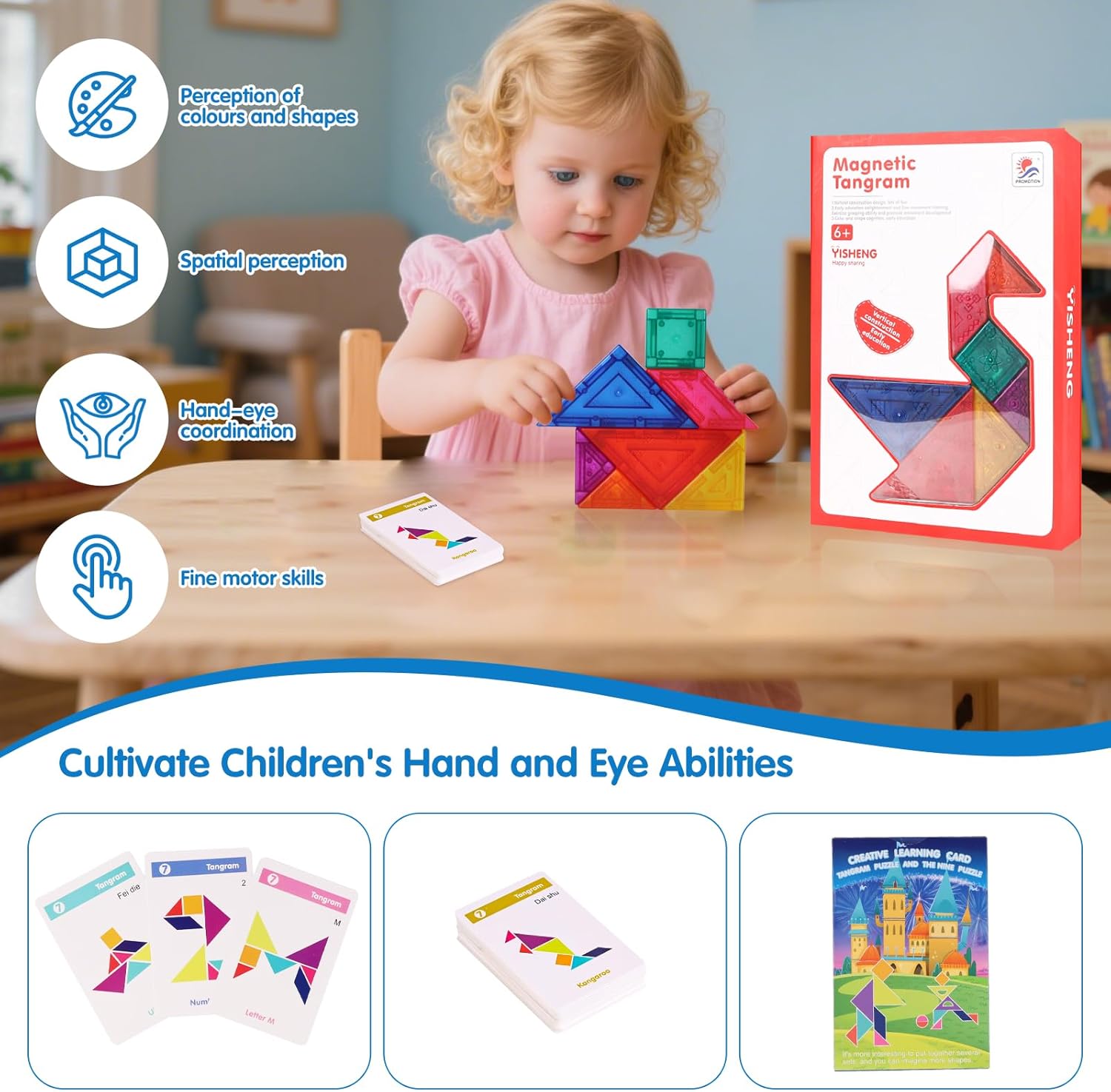 【Tangram Magnetico】: il giocattolo puzzle tangram è dotato di 7 piccole tavolette magnetiche colorate che possono essere utilizzate per assemblare diverse forme e stili di motivi. Possono giocare sia i bambini che gli adulti. Il tangram itinerante può migliorare l'interazione nella relazione genitore-figlio 【Tangram Magnetico】: Questo puzzle tangram magnetico ha un design magnetico e può essere facilmente attaccato a qualsiasi superficie metallica, rendendolo facile da riporre e trasportare. Diversi metodi di gioco puzzle possono migliorare le capacità motorie fini e la coordinazione occhio-mano 【Divertente ed Educativo】: include 55 carte con sfide da costruire. I giochi di Tangram magnetici presentano diversi livelli di difficoltà, con modelli che includono persone, animali, case, figure geometriche, ecc., ognuno dei quali è molto creativo 【Per tutte le Età】: il Tangram aiuta ad aumentare l'intelligenza e la creatività dei bambini, ad alleviare lo stress negli adulti e ad allenare la memoria negli anziani 【Tempo in Famiglia】: trascorri del tempo di qualità con la tua famiglia ovunque ti trovi con il gioco magnetico Tangram. Che sia un viaggio lungo o breve, non importa, non sarà noioso. Scopri un mondo di creatività con questi giochi magnetici da viaggio compatti, accuratamente progettati per intrattenere i bambini