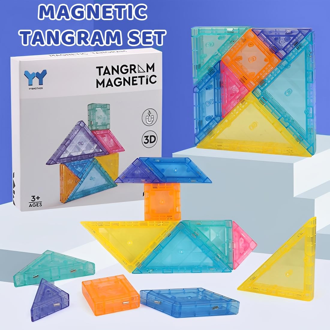 Strumento educativo illuminante: come classico giocattolo educativo, i tangram magnetici sviluppano efficacemente la manualità e il pensiero logico dei bambini. Attraverso l'assemblaggio di forme diverse, i bambini sperimentano continuamente combinazioni e smontaggi, stimolando i processi cognitivi e migliorando al contempo l'immaginazione spaziale e la creatività. Questo li rende compagni preziosi durante l'educazione della prima infanzia. Potente adesione magnetica: dotati di campi magnetici miniaturizzati integrati, questi tangram magnetici vantano una forte attrazione magnetica che tiene saldamente insieme i pezzi. I bambini possono assemblare strutture tridimensionali senza temere che i pezzi cadano, garantendo un processo di costruzione più fluido. Ciò consente loro anche di costruire strutture più complesse e stabili, migliorando l'esperienza di gioco. Design con materiali di alta qualità: i bordi di questi giocattoli educativi sono accuratamente arrotondati e levigati per evitare graffi. Ogni pezzo è di dimensioni moderate e leggero per una facile presa, consentendo ai bambini di prendere, posizionare e collegare i componenti senza sforzo. Ciò garantisce un'esperienza di gioco sicura e confortevole. Aspetto visivo accattivante: le combinazioni di colori casuali offrono ai bambini un'emozione nuova. Mescolare blocchi di colori diversi li aiuta a riconoscere e distinguere i colori e le forme attraverso il gioco. Attività di legame genitoriale: ideale per il tempo di gioco condiviso tra genitori e figli, rafforzando i legami familiari. I genitori possono anche sfidare i bambini in gare di velocità o creatività, aggiungendo divertimento e sfida al gioco. È un regalo premuroso per i bambini.