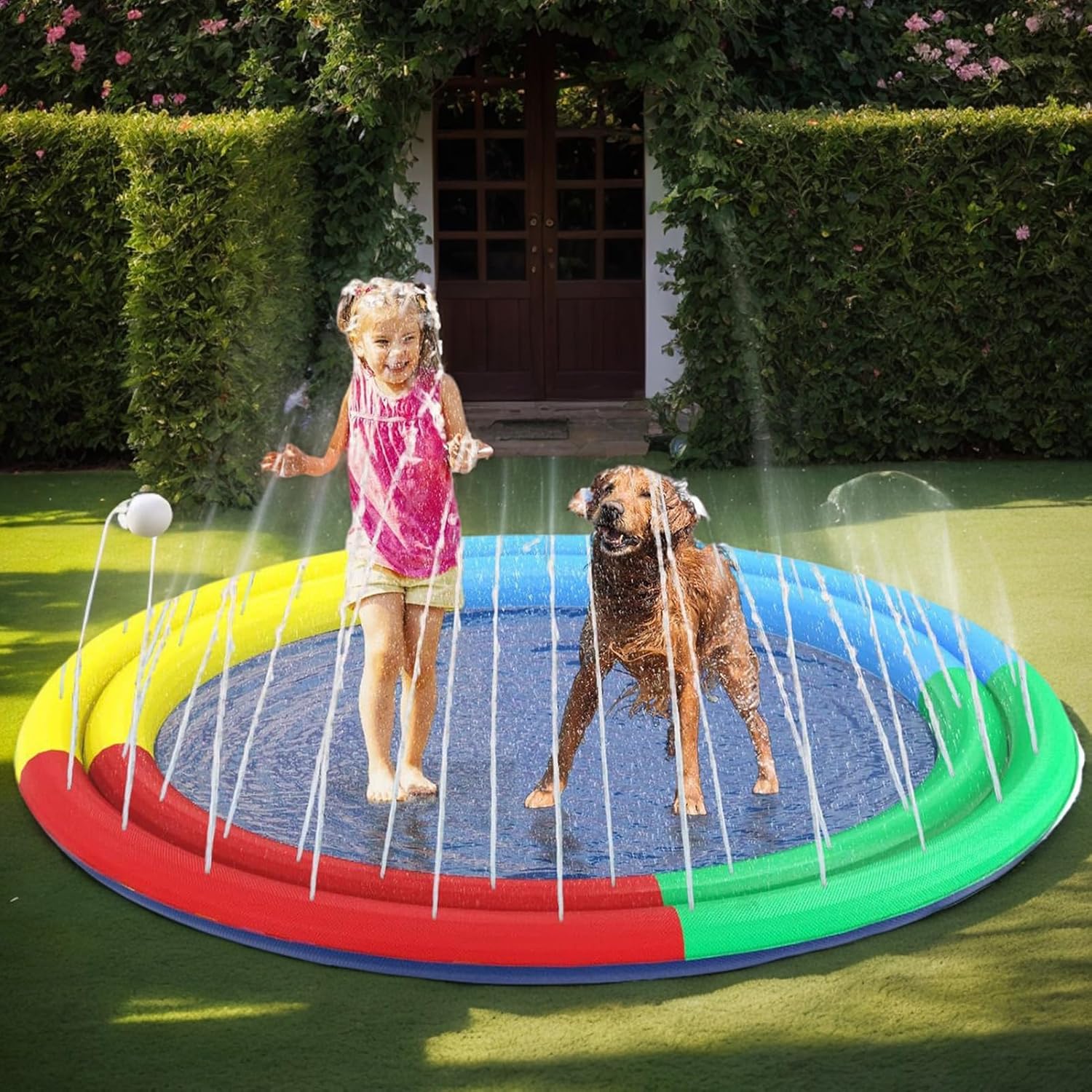 Divertimento Sicuro e Durevole: Base spessa e materiale PVC resistente agli strappi assicurano stabilità e tranquillità, concentrandosi sulla sicurezza durante l'uso prolungato per tutti gli utenti. Design Inclusivo Famiglie: Zona acquatica generosa permette a più utenti di giocare insieme senza sforzo, creando atmosfere piacevoli per riunioni familiari e vivaci celebrazioni in spazi aperti con idrodivertimento condiviso Prestazione Doppio Spray: Compatibilità multi-tubo consente collegamento facile a varie fonti idriche, assicurando utilizzo semplice e convenienza migliorata per utenti di ogni età Tecnologia Antiscivolo: Base rinforzata con antiscivolo integrato per garantire trazione perfetta e superficie stabile durante tutto il di gioco Svuotamento Liquidi Veloce:Design innovativo dei fori di scarico permette uscita istantanea 'acqua, semplificando installazione e riposo. Telaio pieghevole leggero abilita trasporto facile e organizzazione compatta.