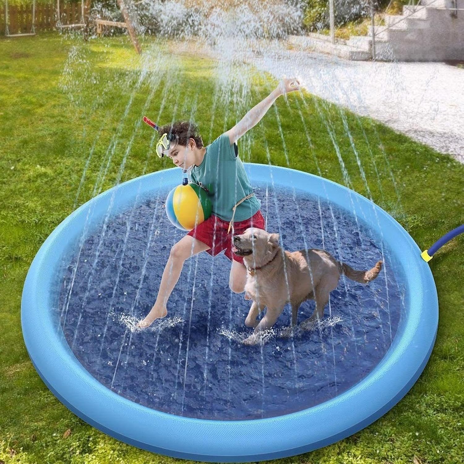 Piacere d'acqua interattivo: trasforma qualsiasi giardino in un vivace parco giochi dove i bambini sperimentano un divertimento illimitato con diversi irrigatori da giardino per più attività e piacere. Lavorazione stabile La solida costruzione del cuscinetto in PVC garantisce durata e affidabilità per un uso frequente durante le attività estive all'aperto con qualità resistente. Sicurezza per i bambini: aderenza stabile al suolo e vestibilità sicura anche durante il gioco vivace per garantire la sicurezza dei bambini. Questo Splash Pad è sicuro per l'uso esterno. Facile manutenzione: il materiale impermeabile e resistente allo sporco rende la pulizia particolarmente semplice: basta spruzzare brevemente, lasciare asciugare e il Splash Pad rimane sempre in condizioni ottimali con il minimo dispendio. Rafforzare la connessione familiare: Splash Pad trasforma il tempo in famiglia in divertimento interattivo in acqua per tutte le generazioni, promuove legami cordiali attraverso il gioco insieme e crea momenti indimenticabili pieni di risate e senso di stare insieme