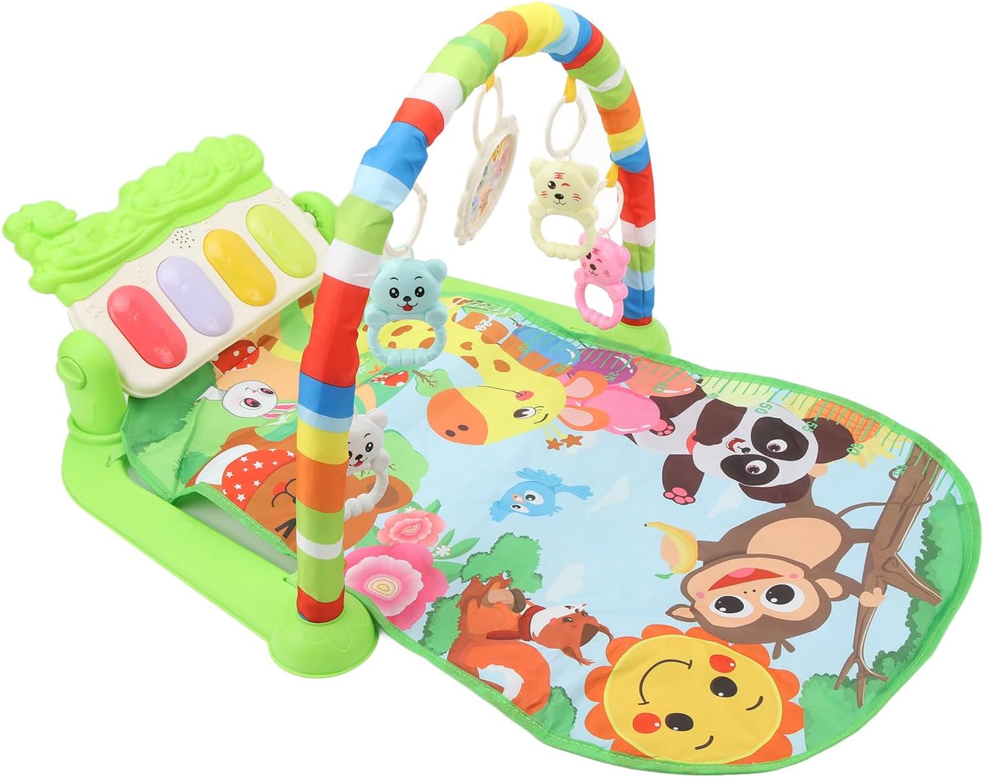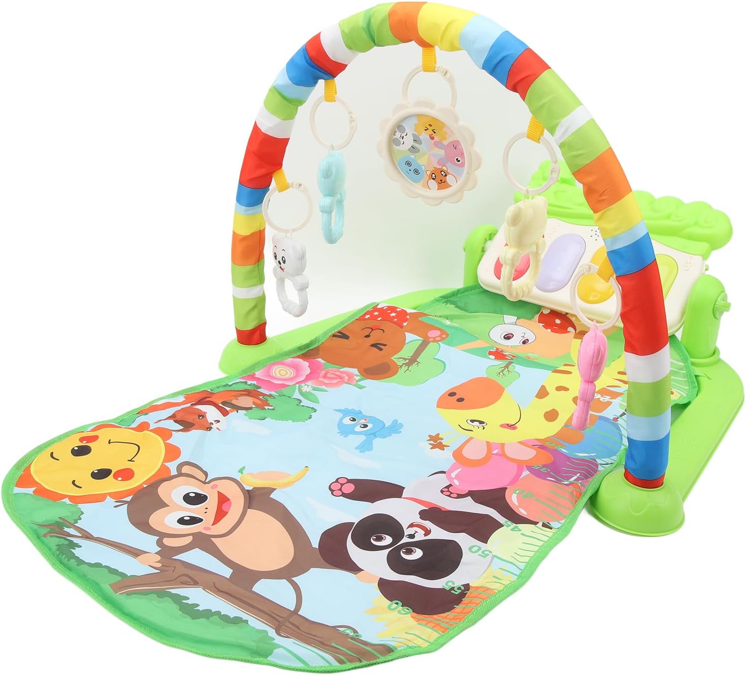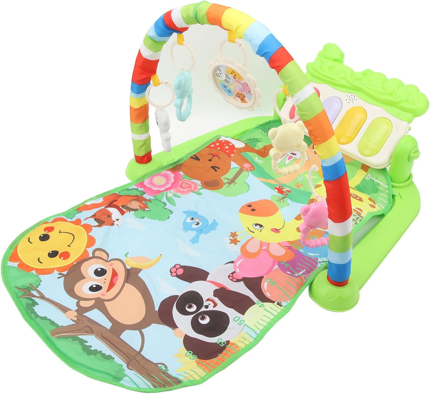 [TAPPETO DA GIOCO COLORATO PER BAMBINI] Tappetino da ginnastica verde per bambini con un pianoforte e giocattoli colorati pendenti. Fornisce stimolazione visiva e supporta lo sviluppo sensoriale. [DESIGN PEDALE REGOLABILE] Il pedale del pianoforte può essere regolato su qualsiasi angolazione per adattarsi alla posizione di gioco del tuo bambino. Supporta lo sviluppo muscolare e la coordinazione nelle varie fasi. [GIOCATTOLI DA APPENDERE INTERESSANTI] 5 giocattoli staccabili progettati per intrattenere ed educare i bambini. Aiuta a sviluppare le capacità cognitive e sostiene la creatività. [PROMUOVE L'ATTIVITÀ FISICA] Supporta lo sviluppo muscolare in varie parti del corpo. Migliora la coordinazione occhio-mano e le capacità motorie nei bambini. [MORBIDO E FACILE DA PULIRE] Realizzato con tessuti della massima qualità che sono delicati sulla pelle del bambino. Il tappetino è lavabile in lavatrice per comodità e igiene.