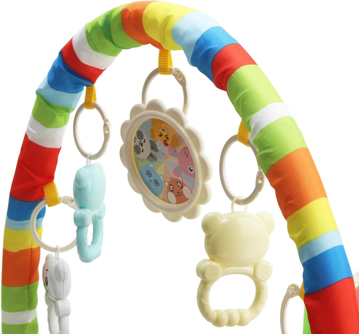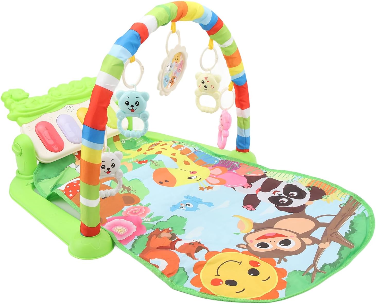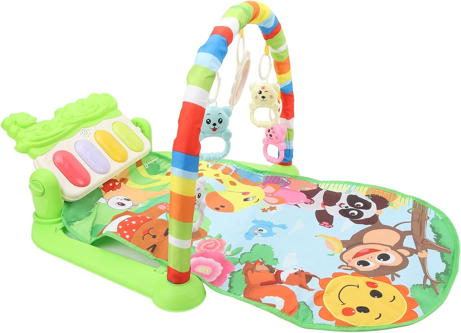 [TAPPETO DA GIOCO COLORATO PER BAMBINI] Tappetino da ginnastica verde per bambini con un pianoforte e giocattoli colorati pendenti. Fornisce stimolazione visiva e supporta lo sviluppo sensoriale. [DESIGN PEDALE REGOLABILE] Il pedale del pianoforte può essere regolato su qualsiasi angolazione per adattarsi alla posizione di gioco del tuo bambino. Supporta lo sviluppo muscolare e la coordinazione nelle varie fasi. [GIOCATTOLI DA APPENDERE INTERESSANTI] 5 giocattoli staccabili progettati per intrattenere ed educare i bambini. Aiuta a sviluppare le capacità cognitive e sostiene la creatività. [PROMUOVE L'ATTIVITÀ FISICA] Supporta lo sviluppo muscolare in varie parti del corpo. Migliora la coordinazione occhio-mano e le capacità motorie nei bambini. [MORBIDO E FACILE DA PULIRE] Realizzato con tessuti della massima qualità che sono delicati sulla pelle del bambino. Il tappetino è lavabile in lavatrice per comodità e igiene.